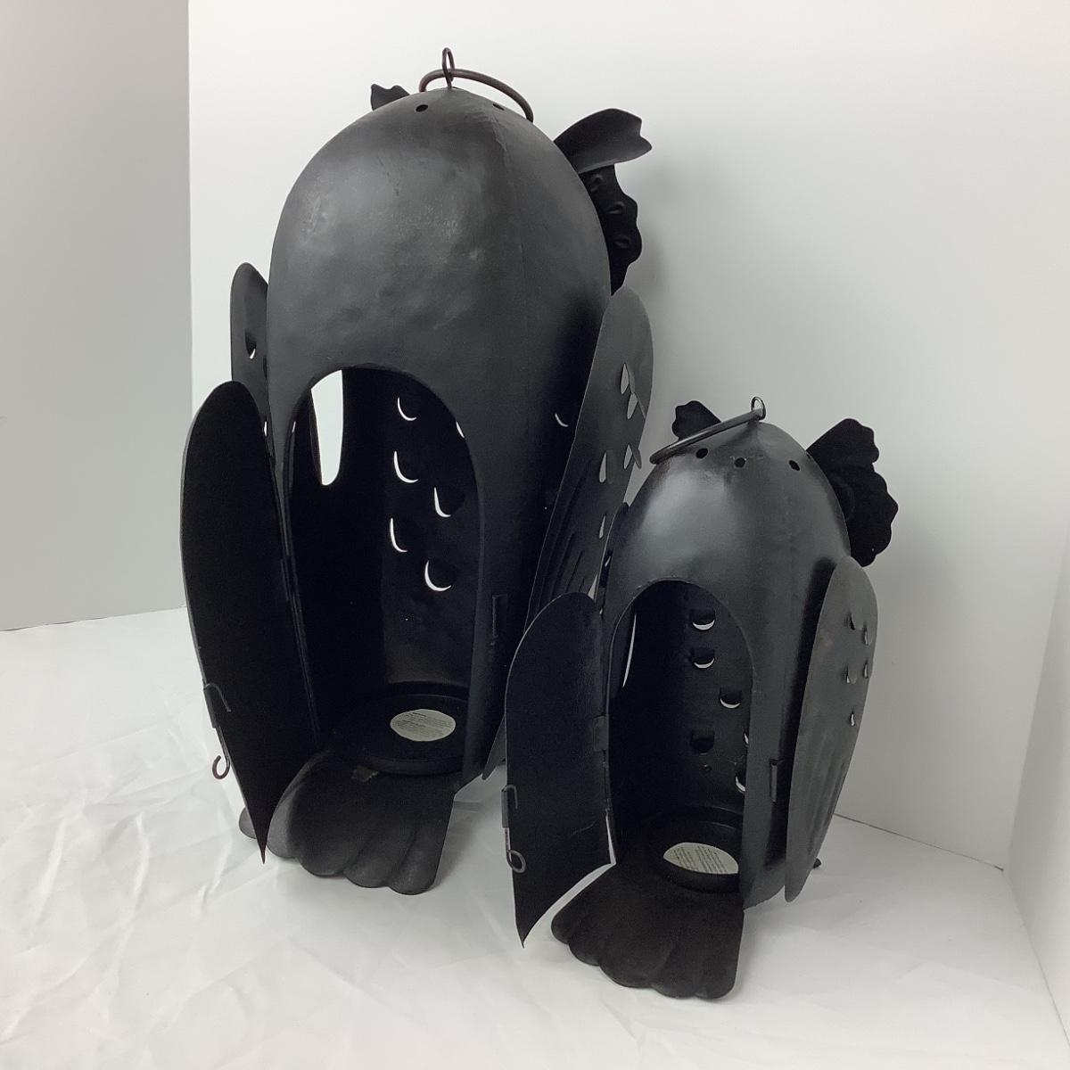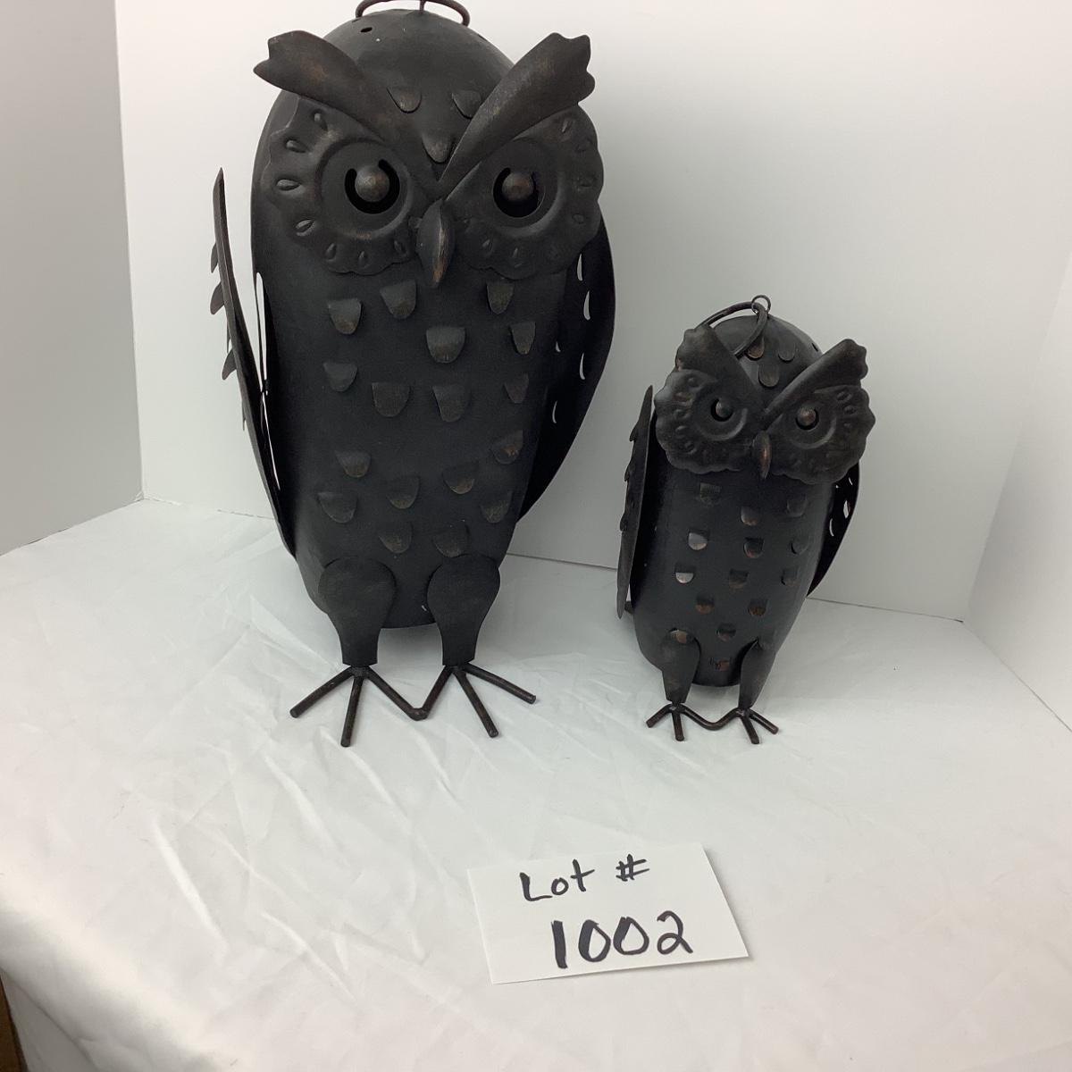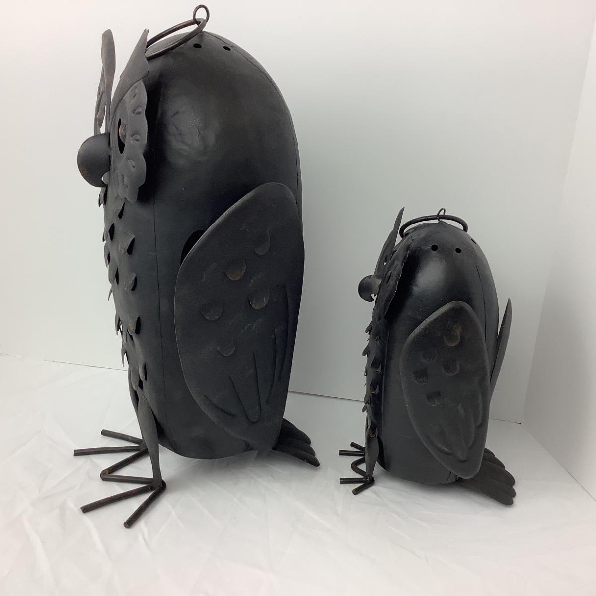 Lot # 1002. Pair of Pottery Barn Punched Metal Owl Candle Holders, Fall Decor