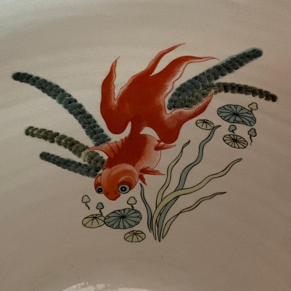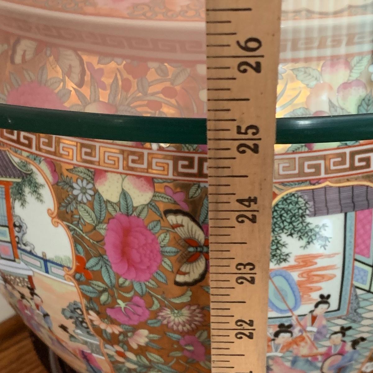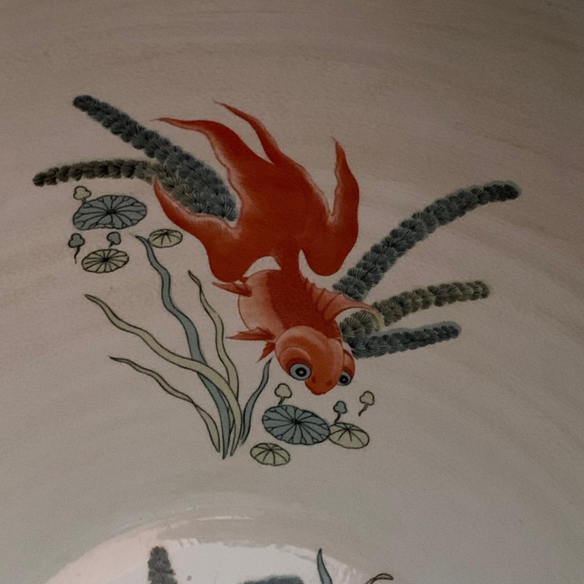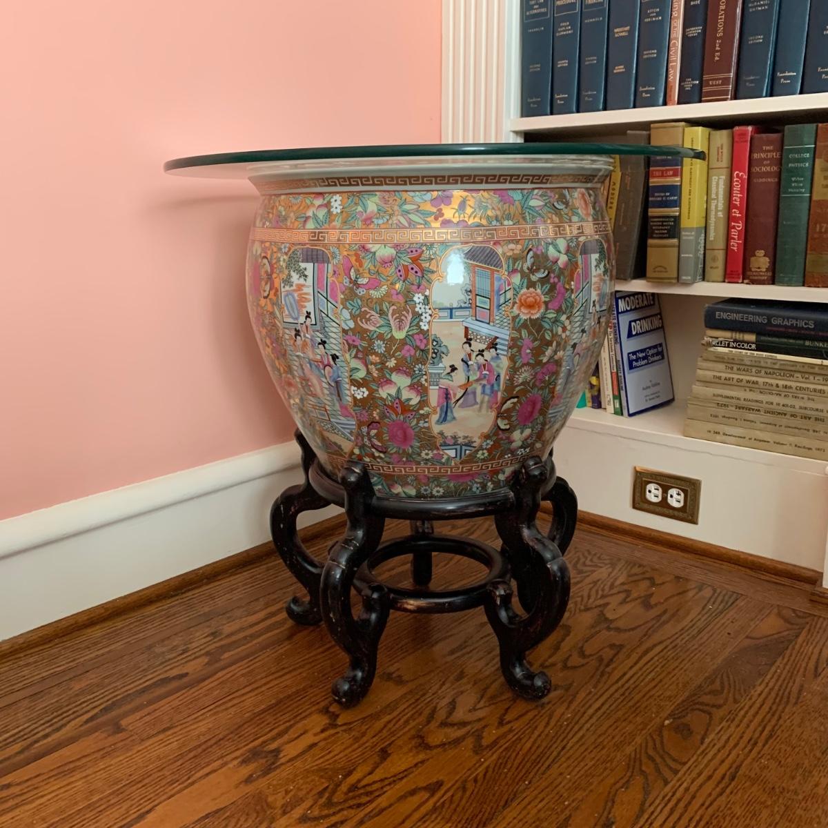 LOT 2: Large Asian Inspired Ceramic Koi Pond Planter with a Glass Top to Use as a Side Table