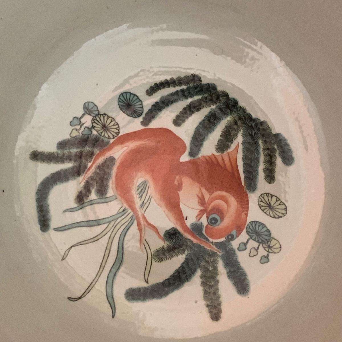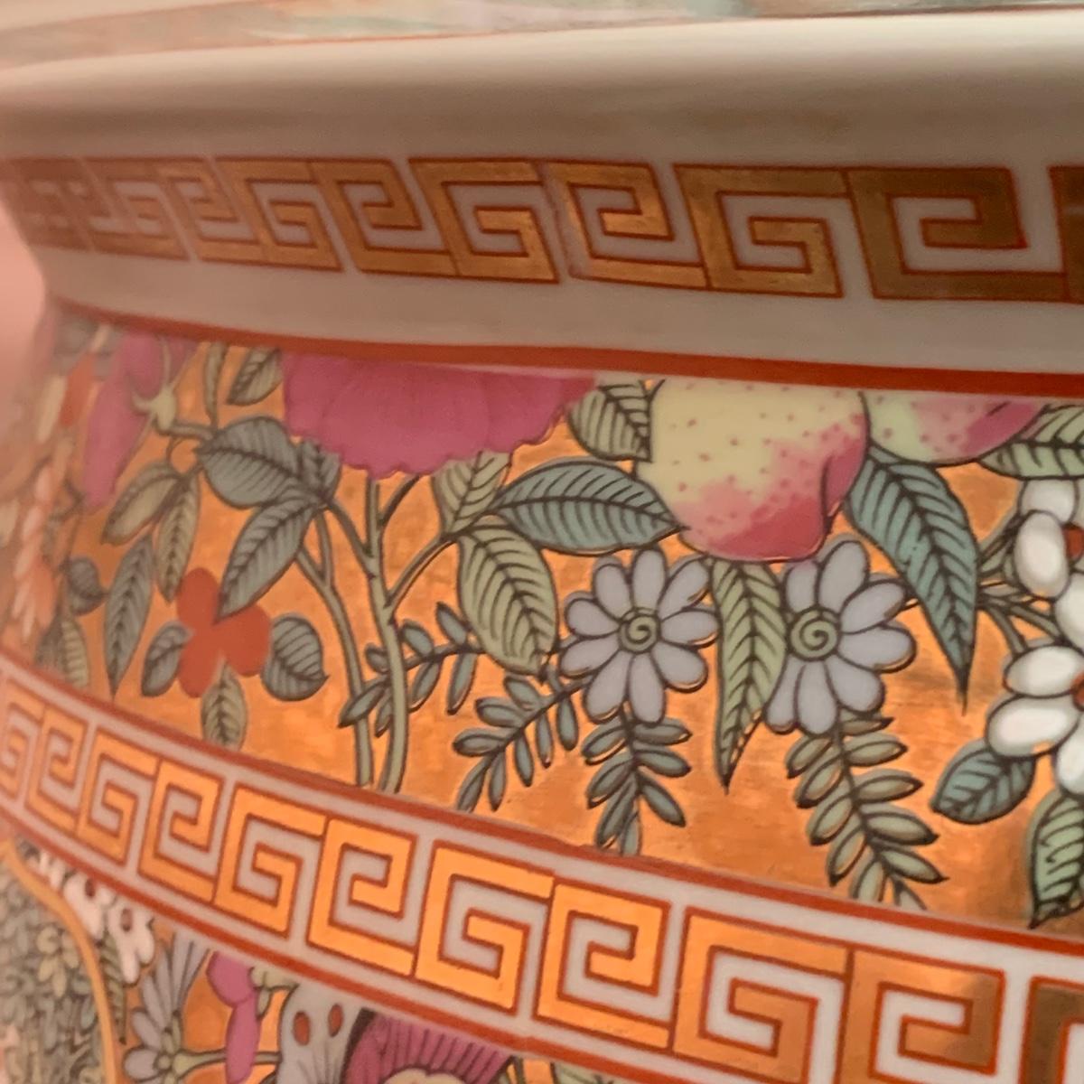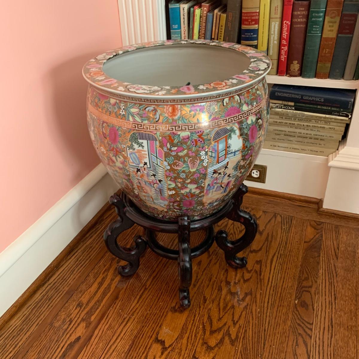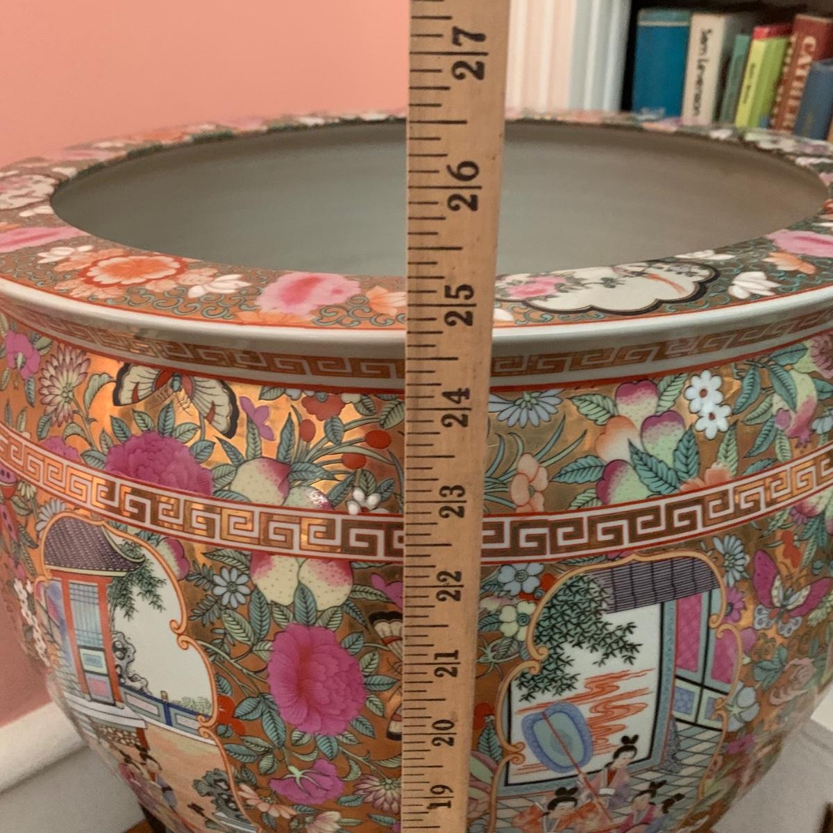 LOT 2: Large Asian Inspired Ceramic Koi Pond Planter with a Glass Top to Use as a Side Table