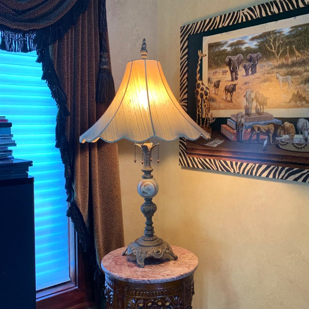 LOT 6: Marble & Bronze Distressed Accent Lamp