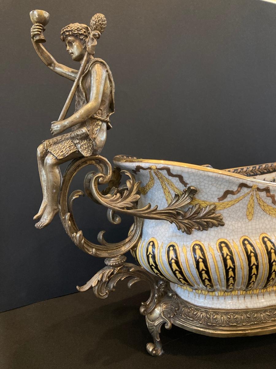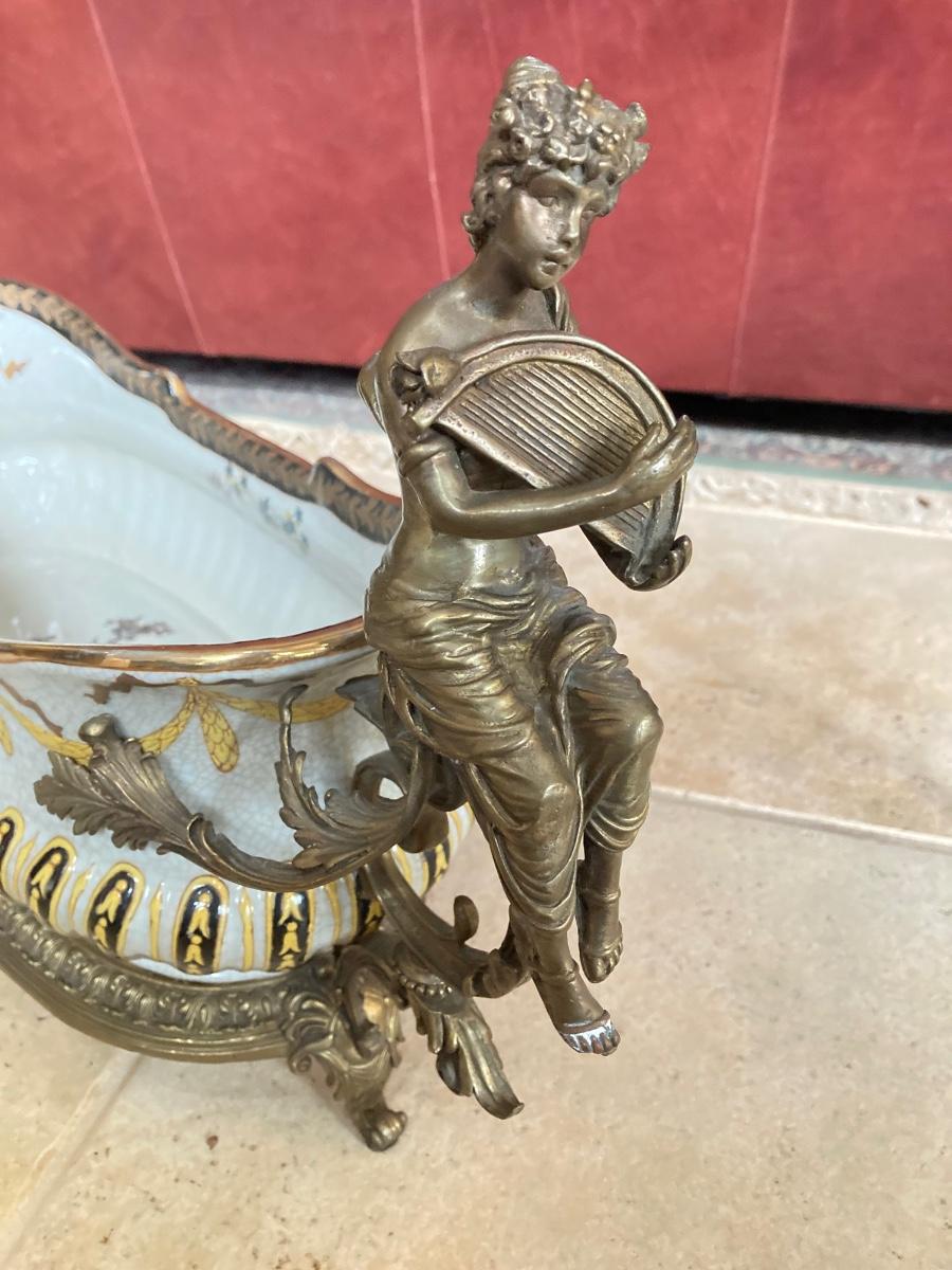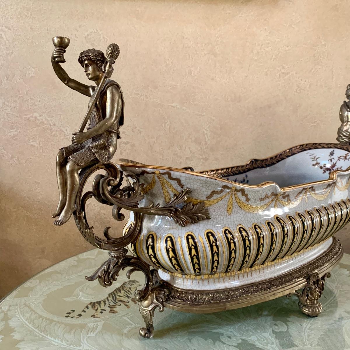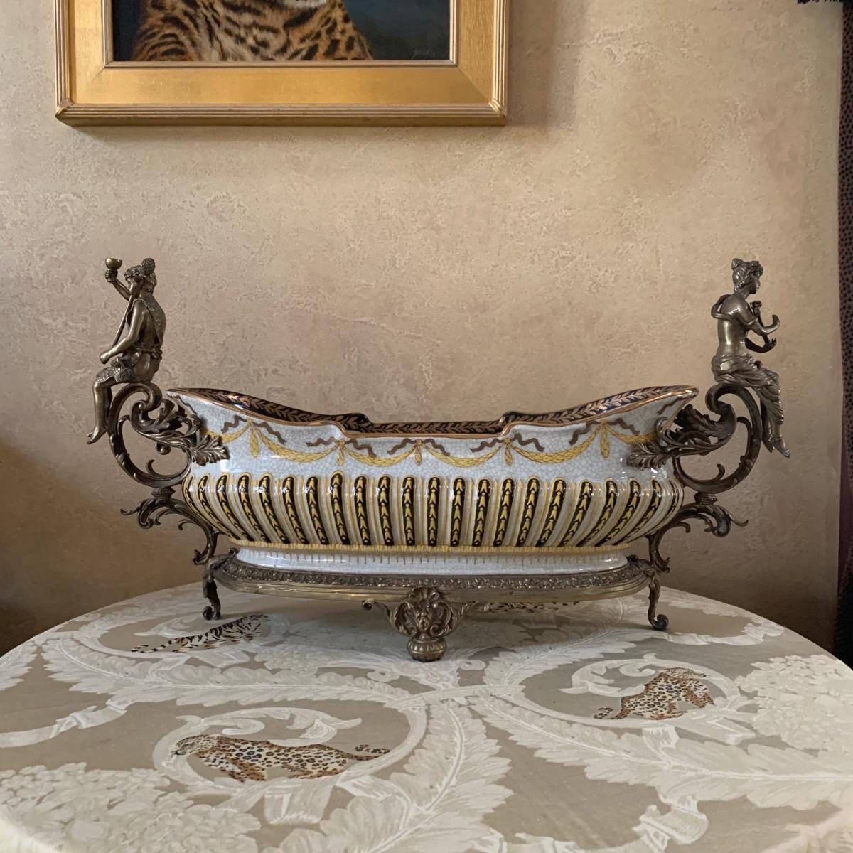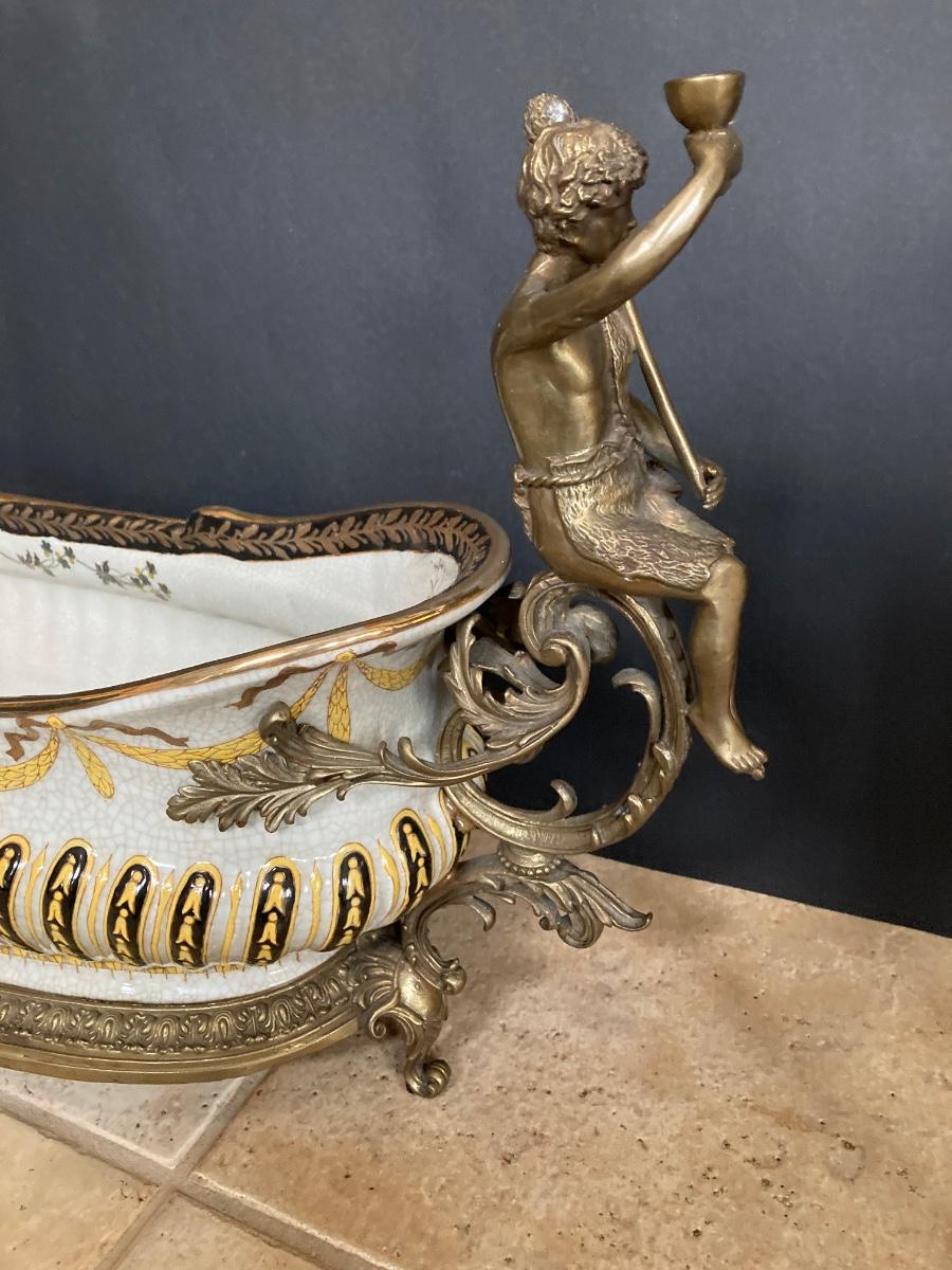 LOT 14: Large Oval Porcelain Bowl w/Bronze Angels & Base