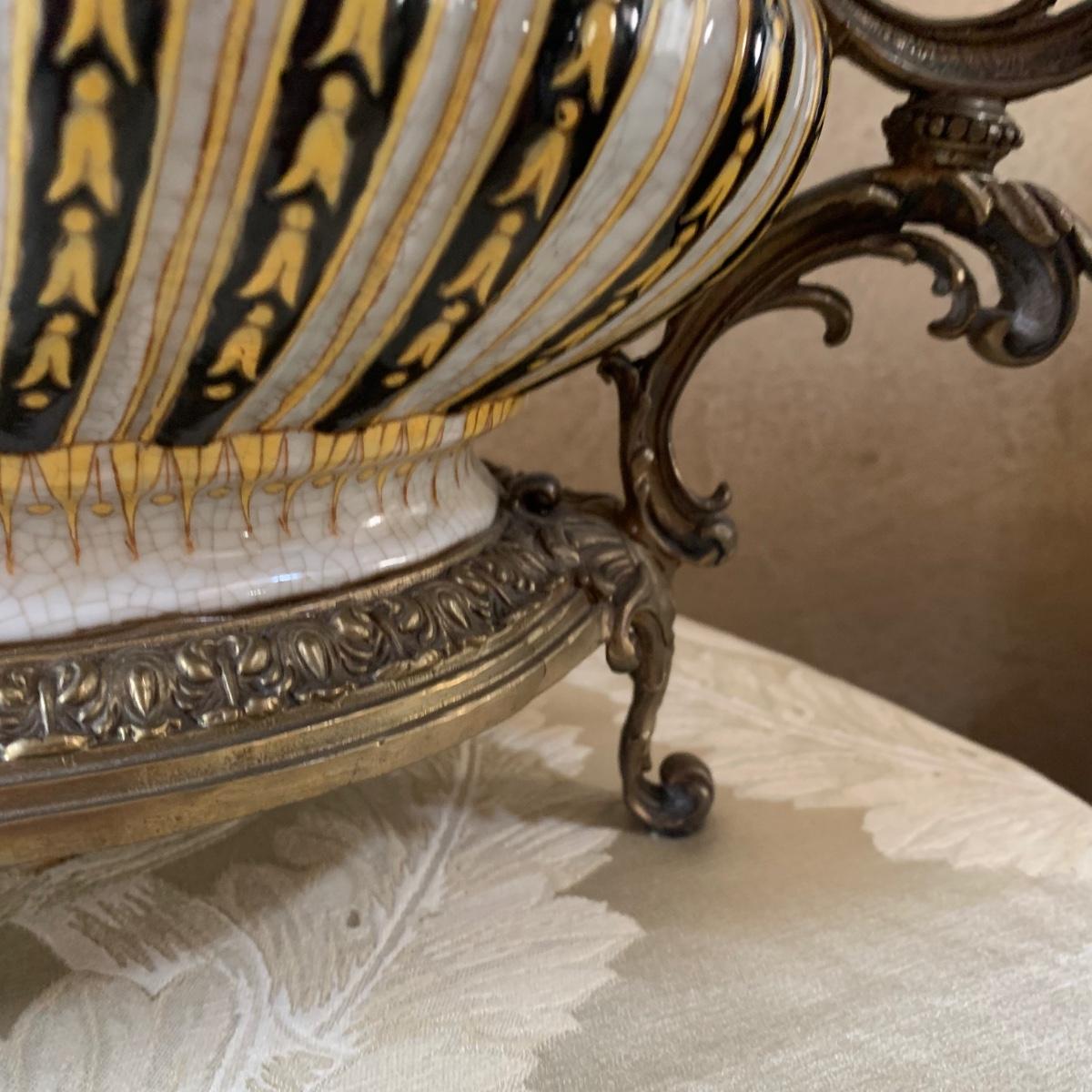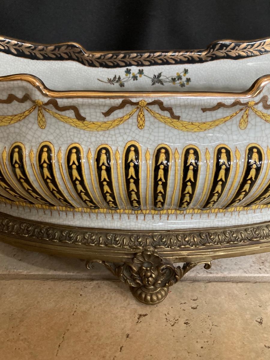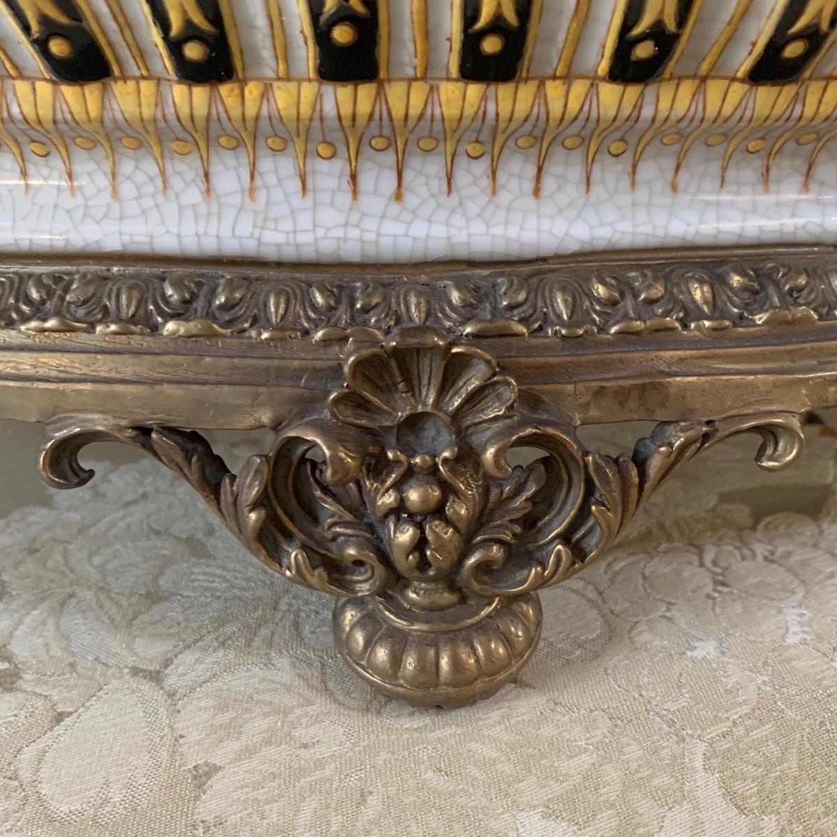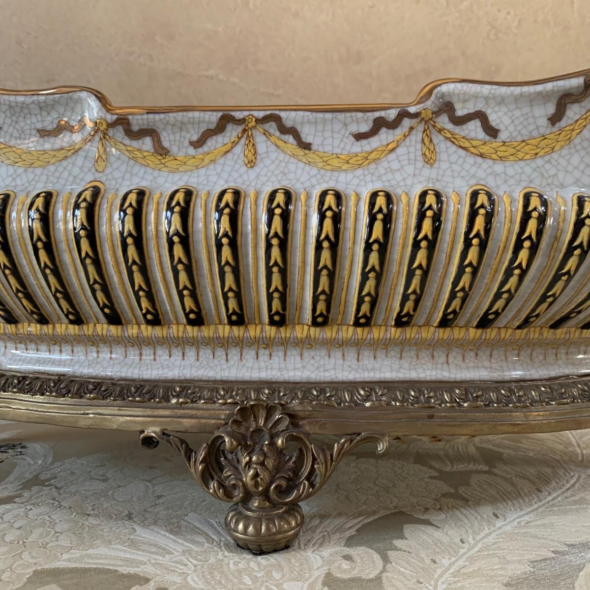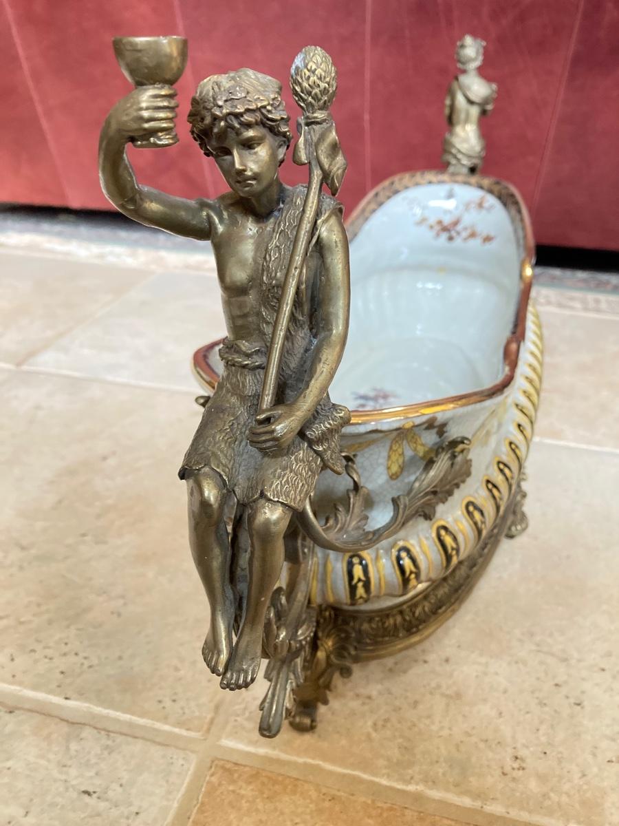 LOT 14: Large Oval Porcelain Bowl w/Bronze Angels & Base