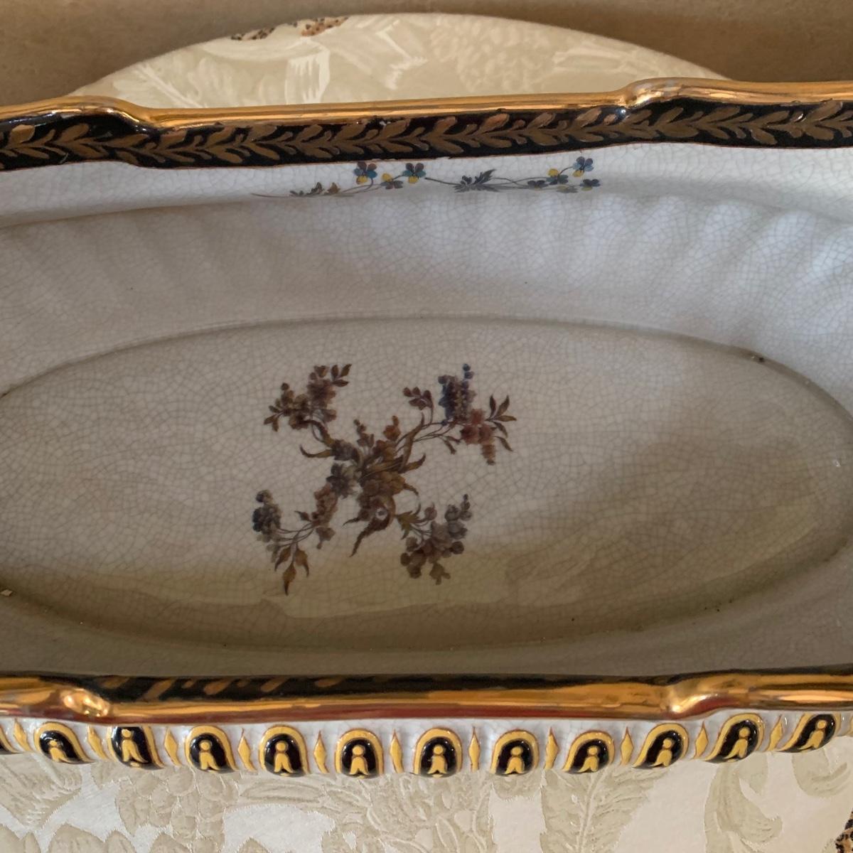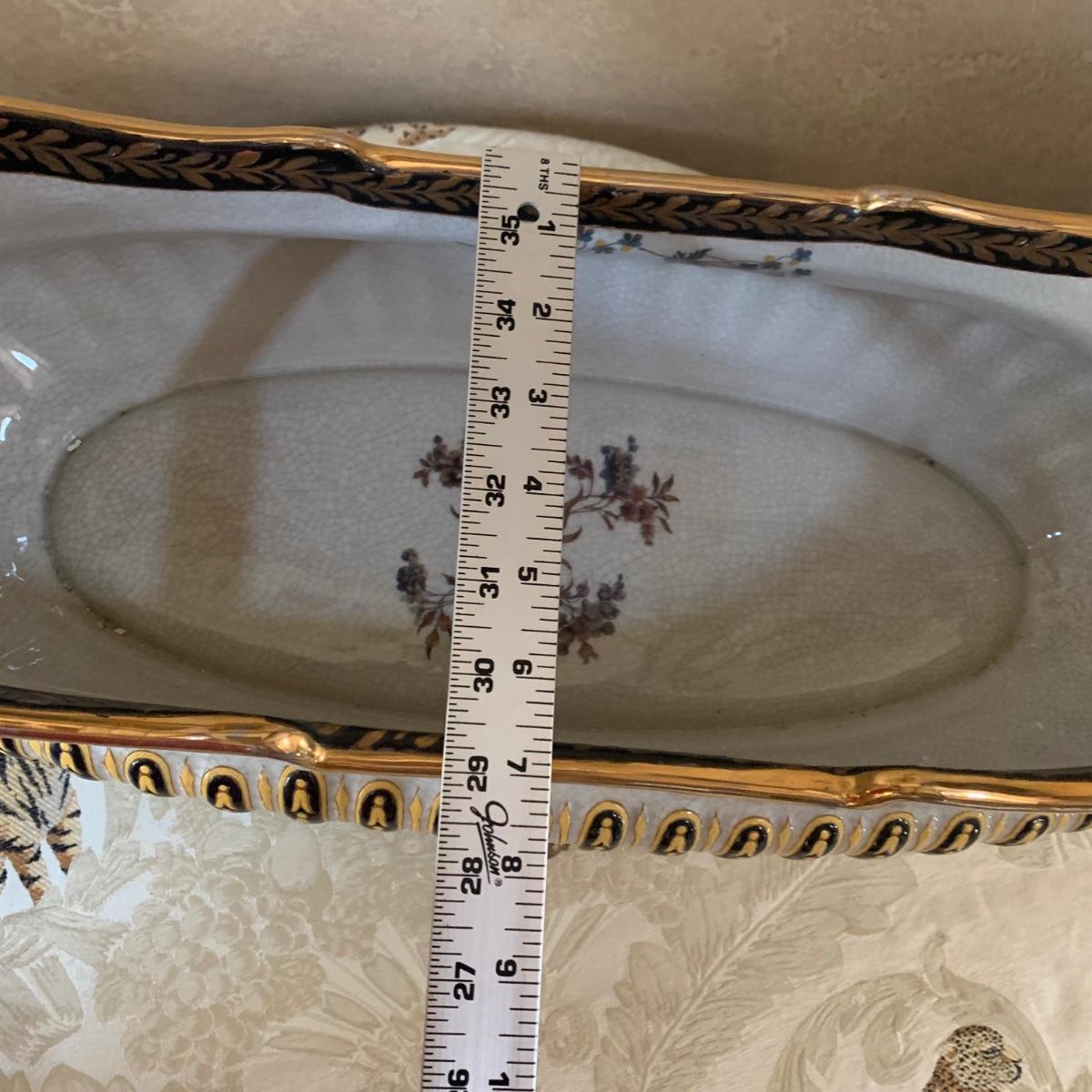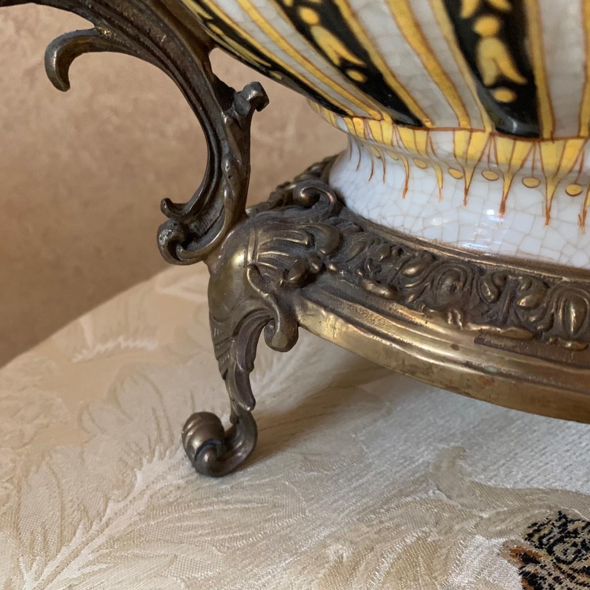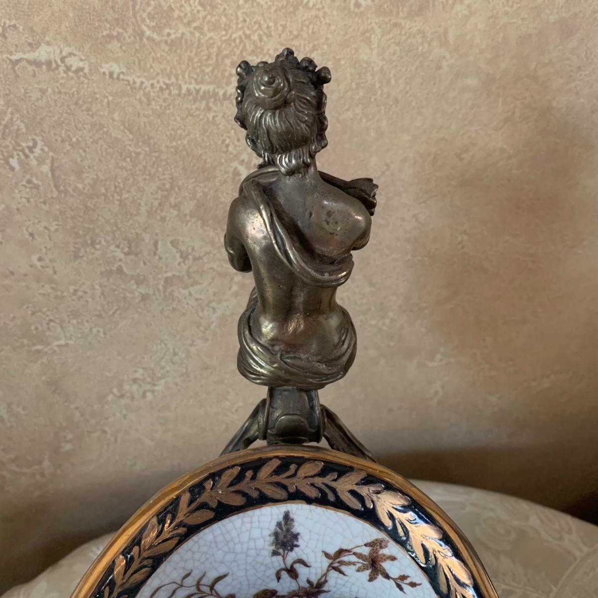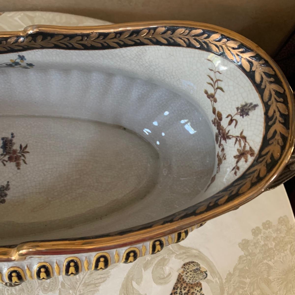 LOT 14: Large Oval Porcelain Bowl w/Bronze Angels & Base