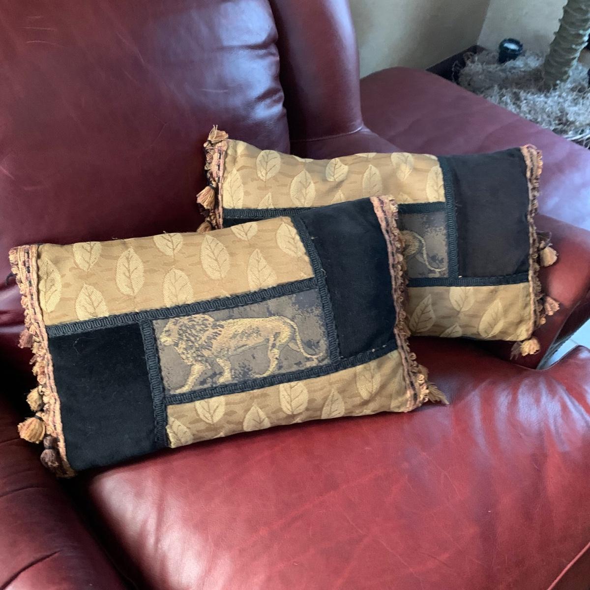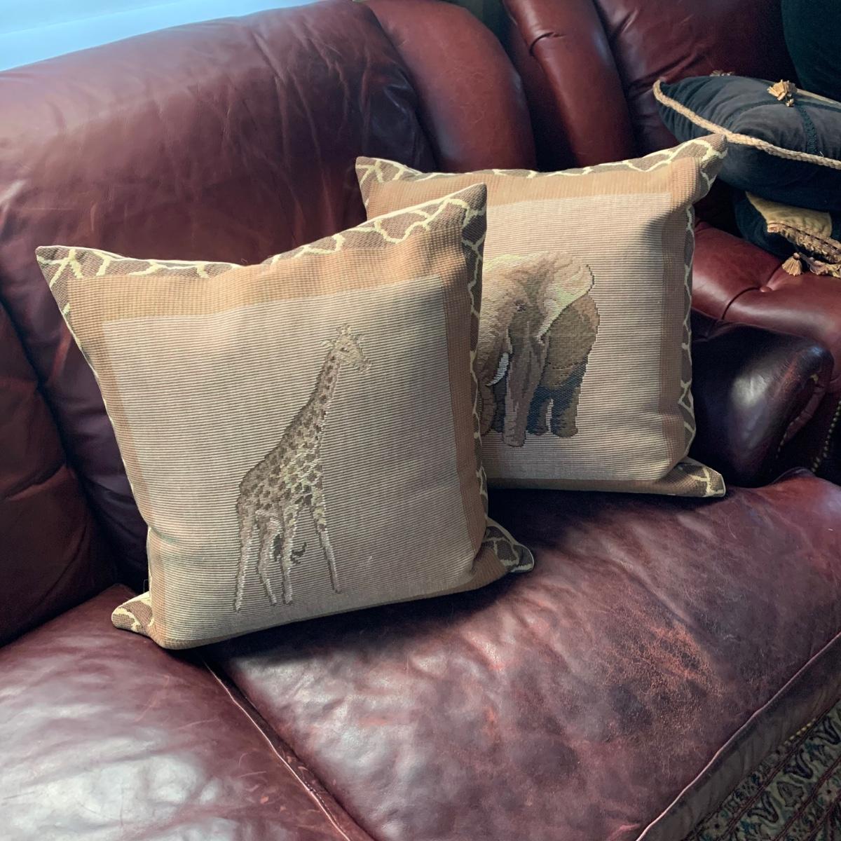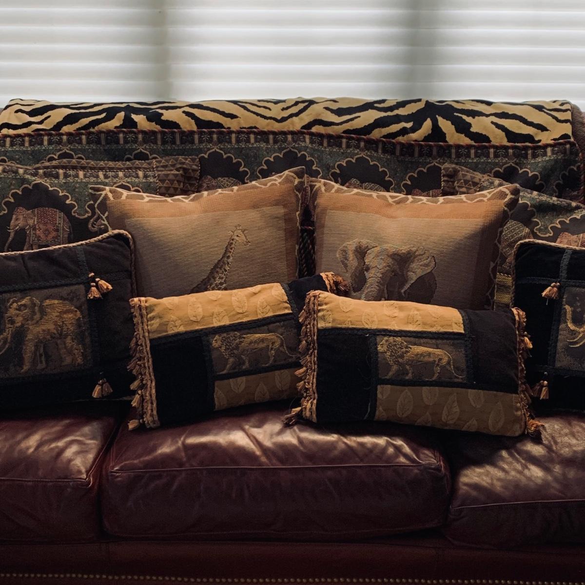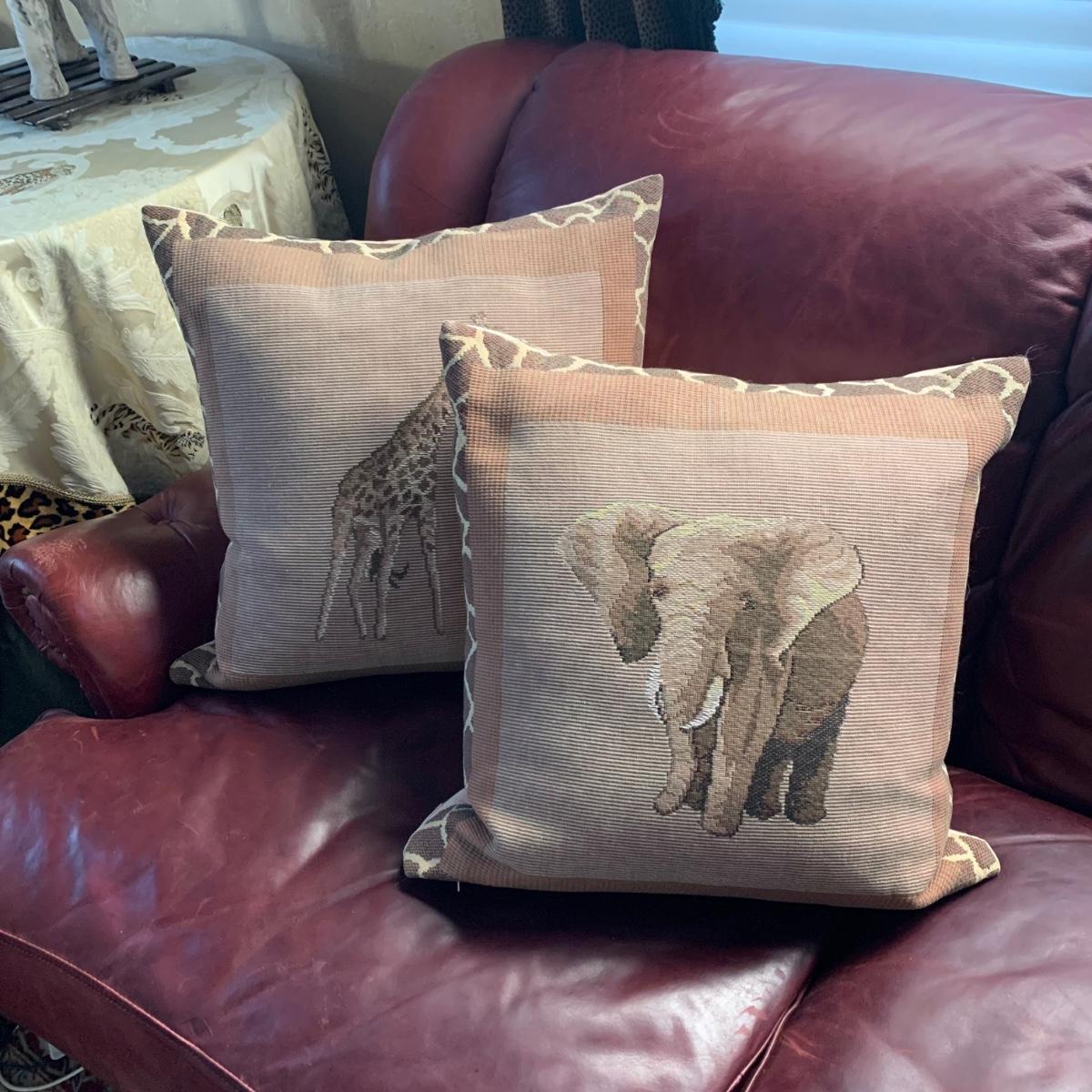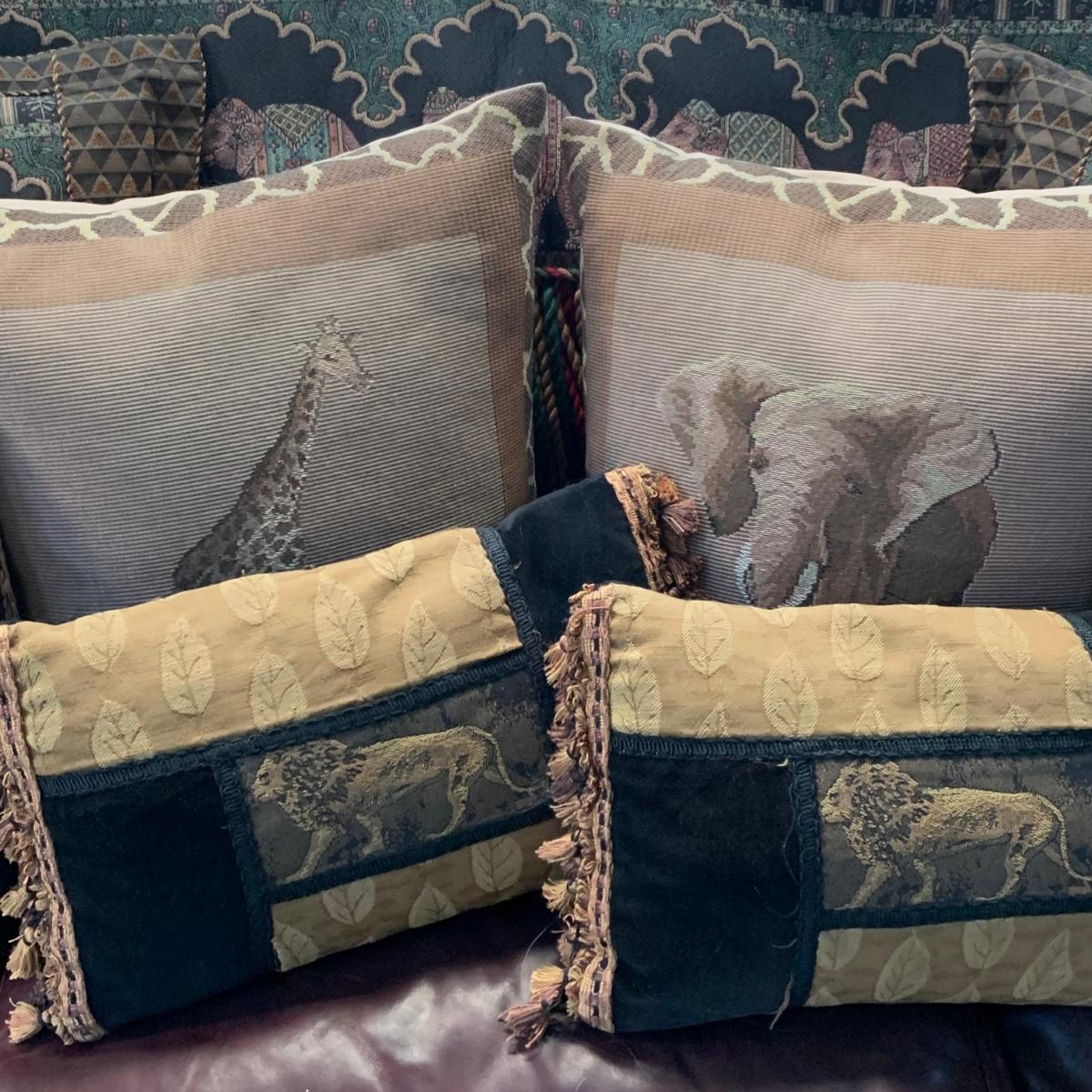 LOT 18: Safari Themed Throw Pillows & Fringed Throw Blanket