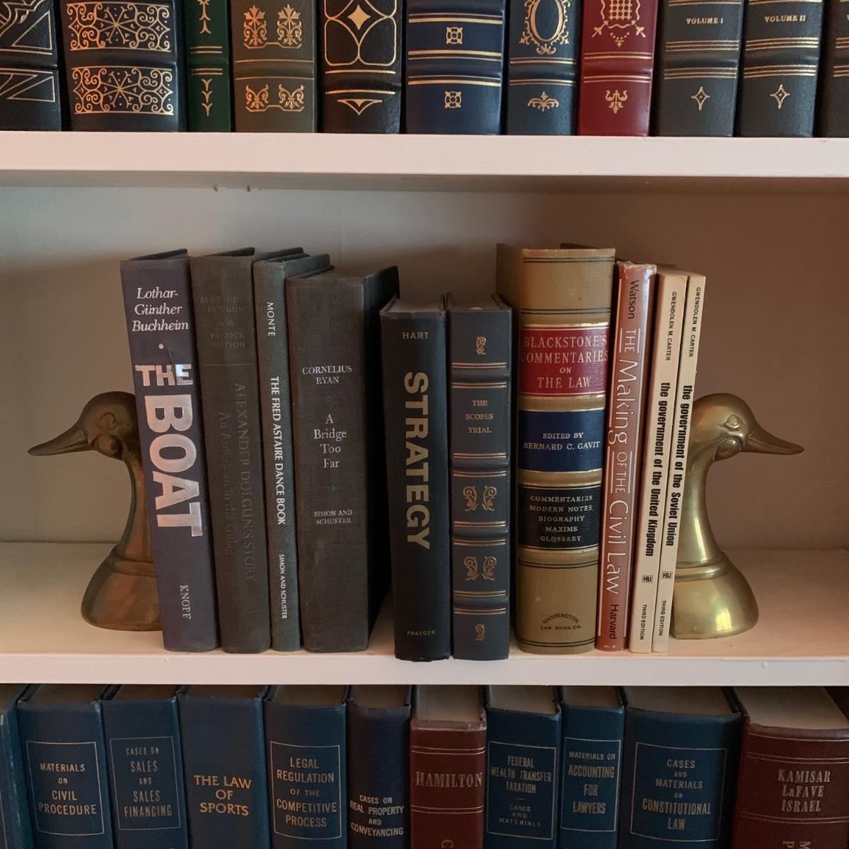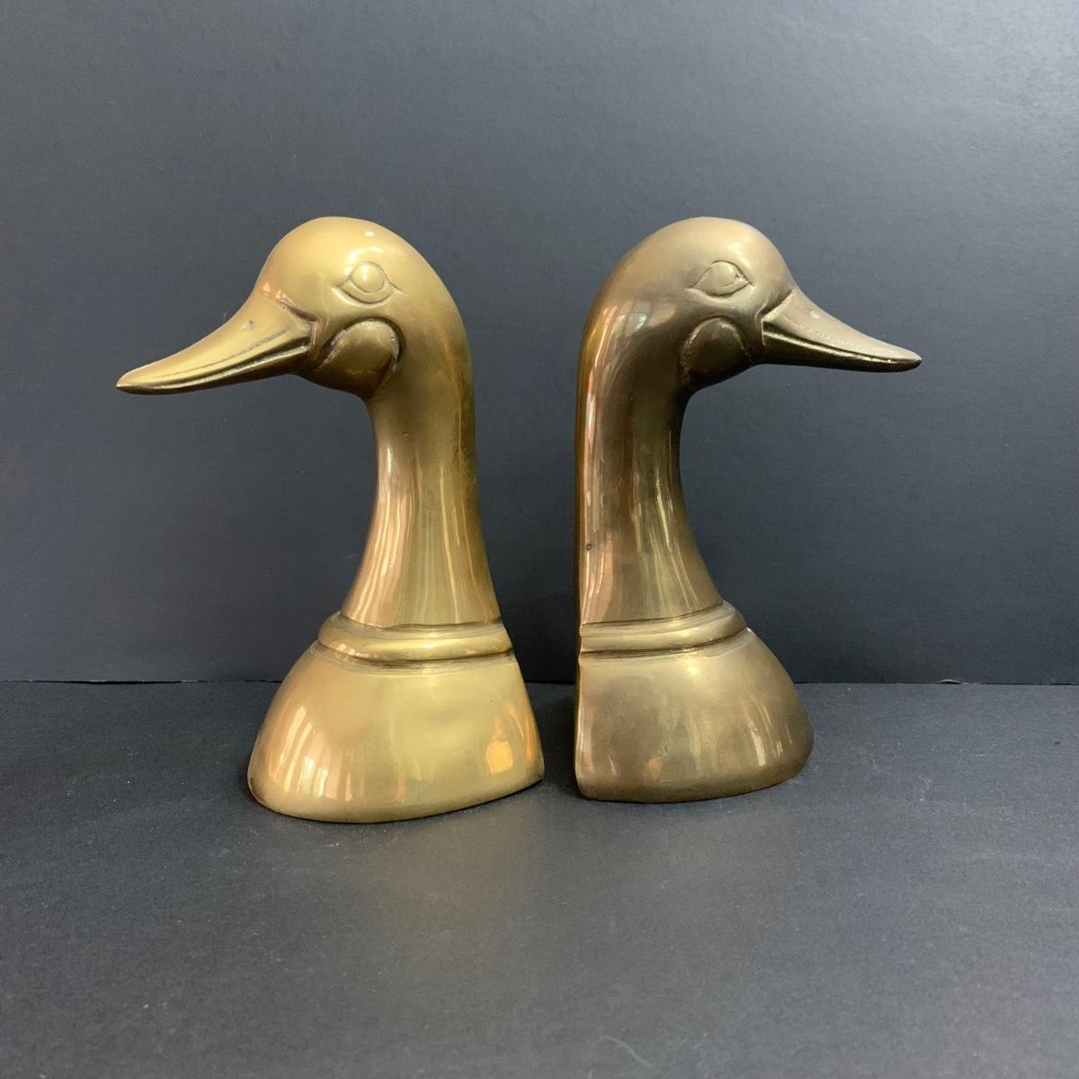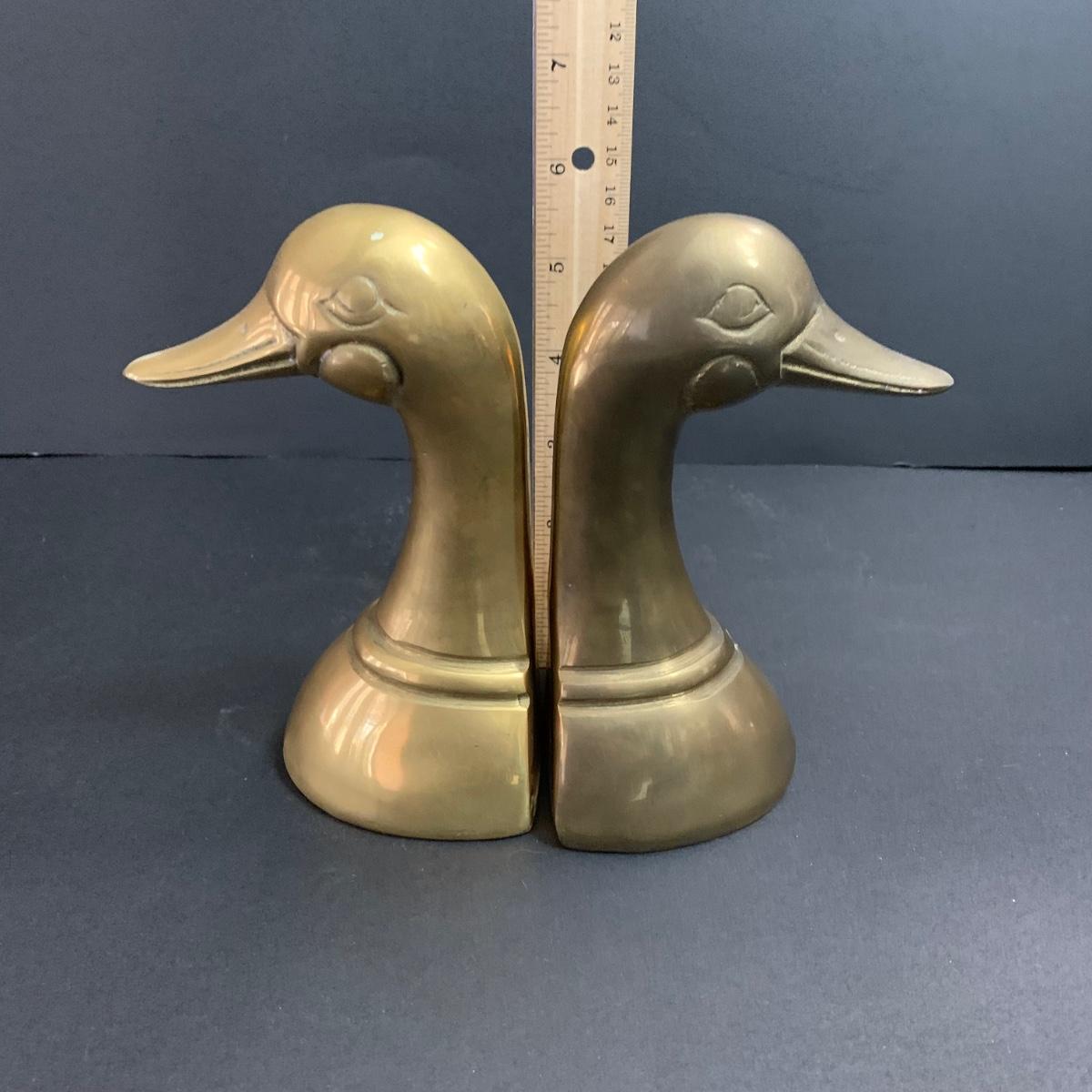 LOT 23: Brass Duck Book Ends & Books