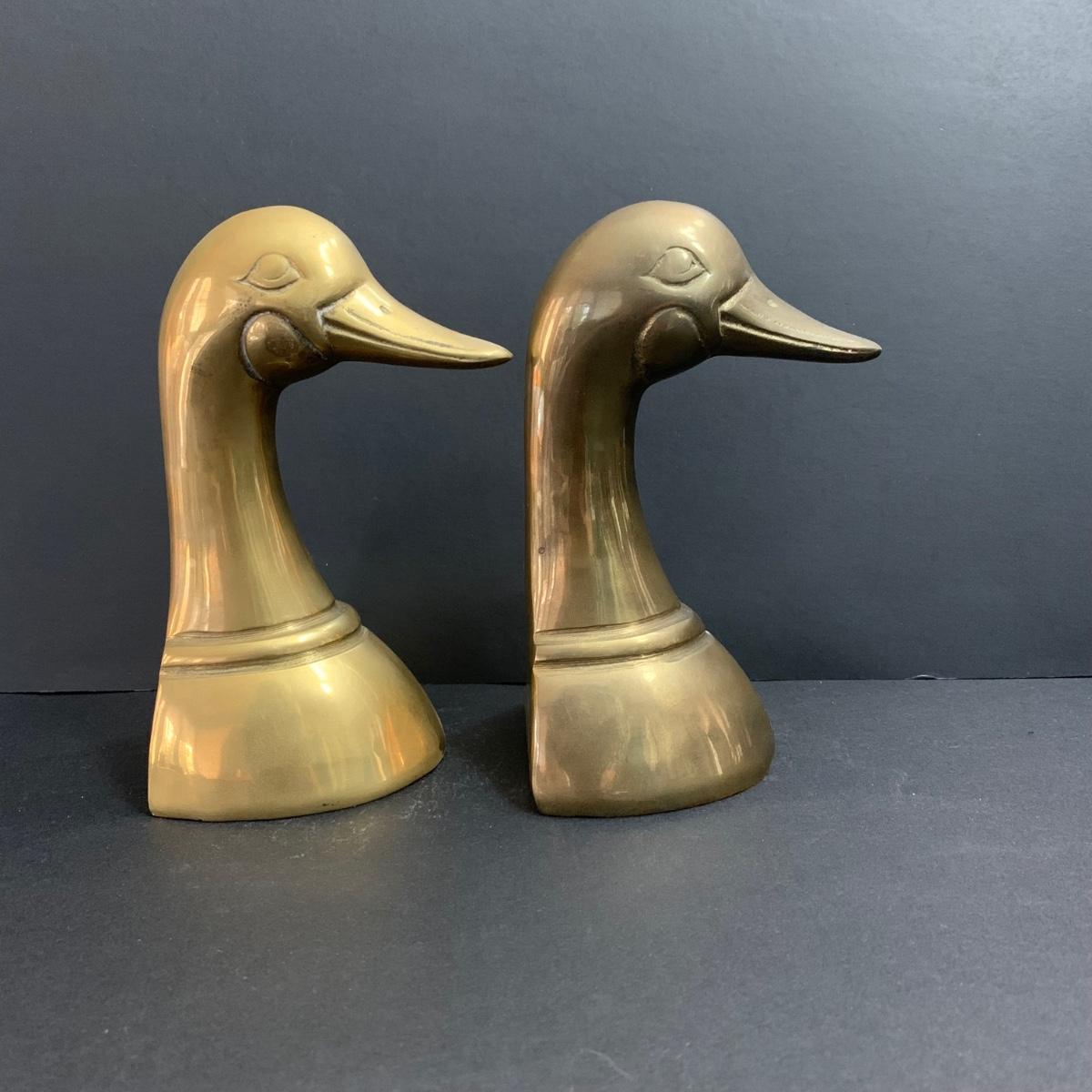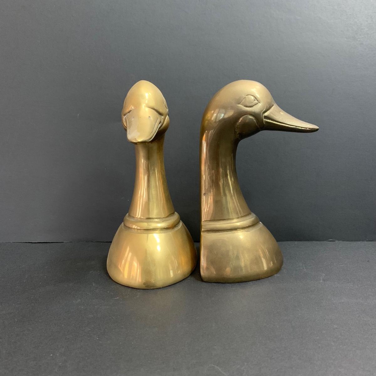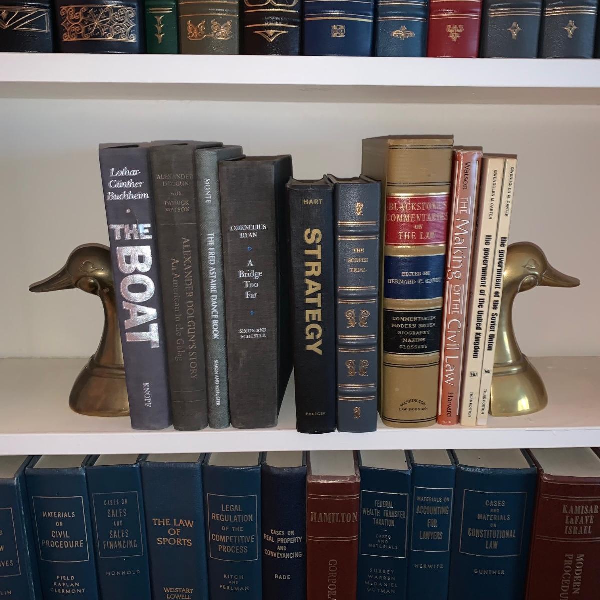 LOT 23: Brass Duck Book Ends & Books