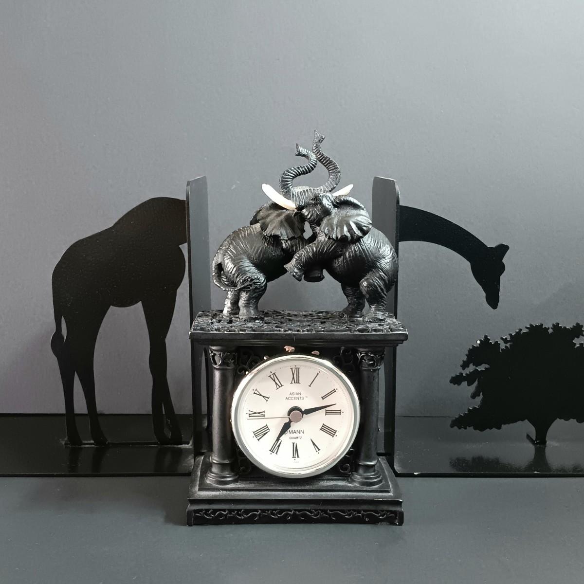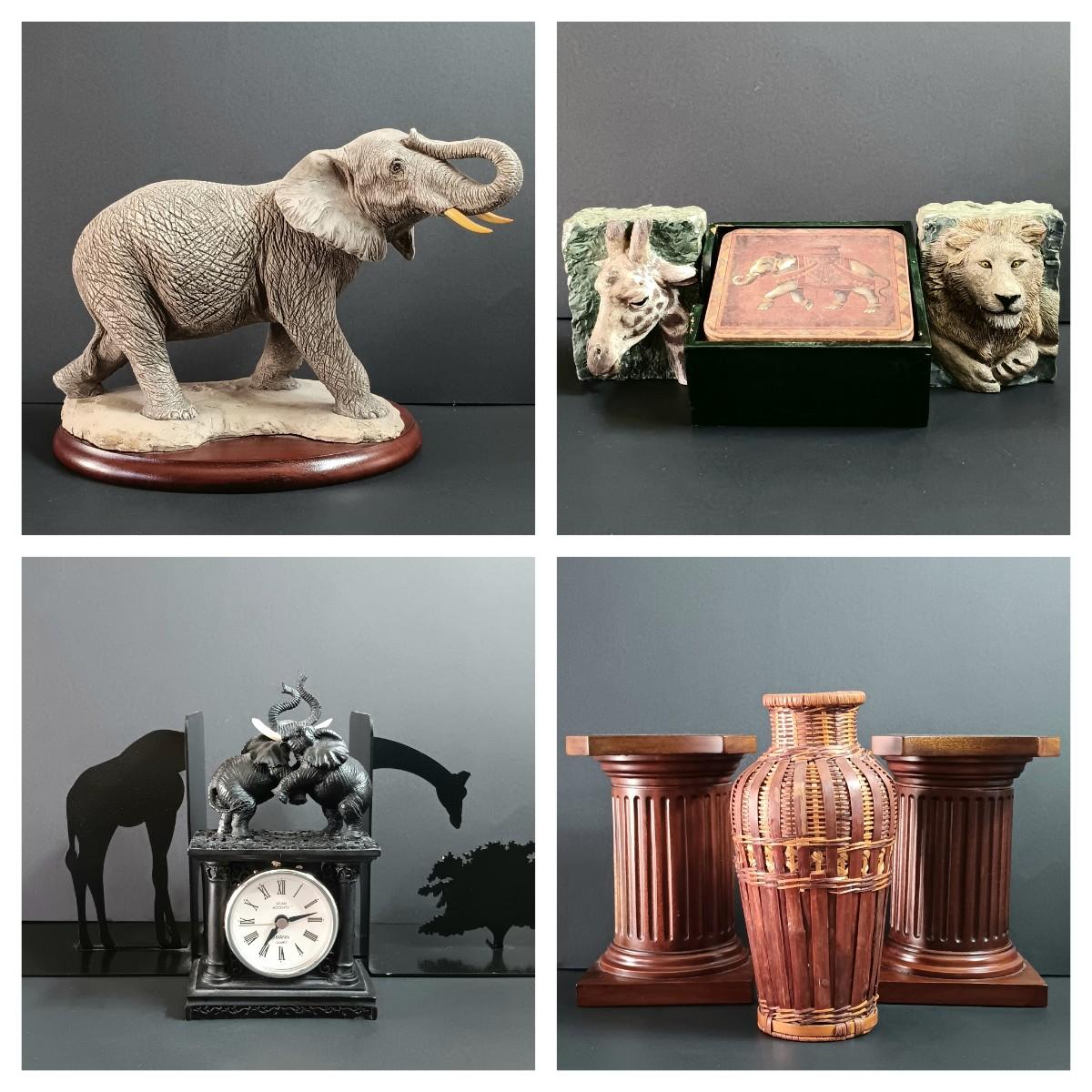 LOT 32: Brue Sandicast Elephant, Selamat Designs Bookends, Seymour Mann Clock & More
