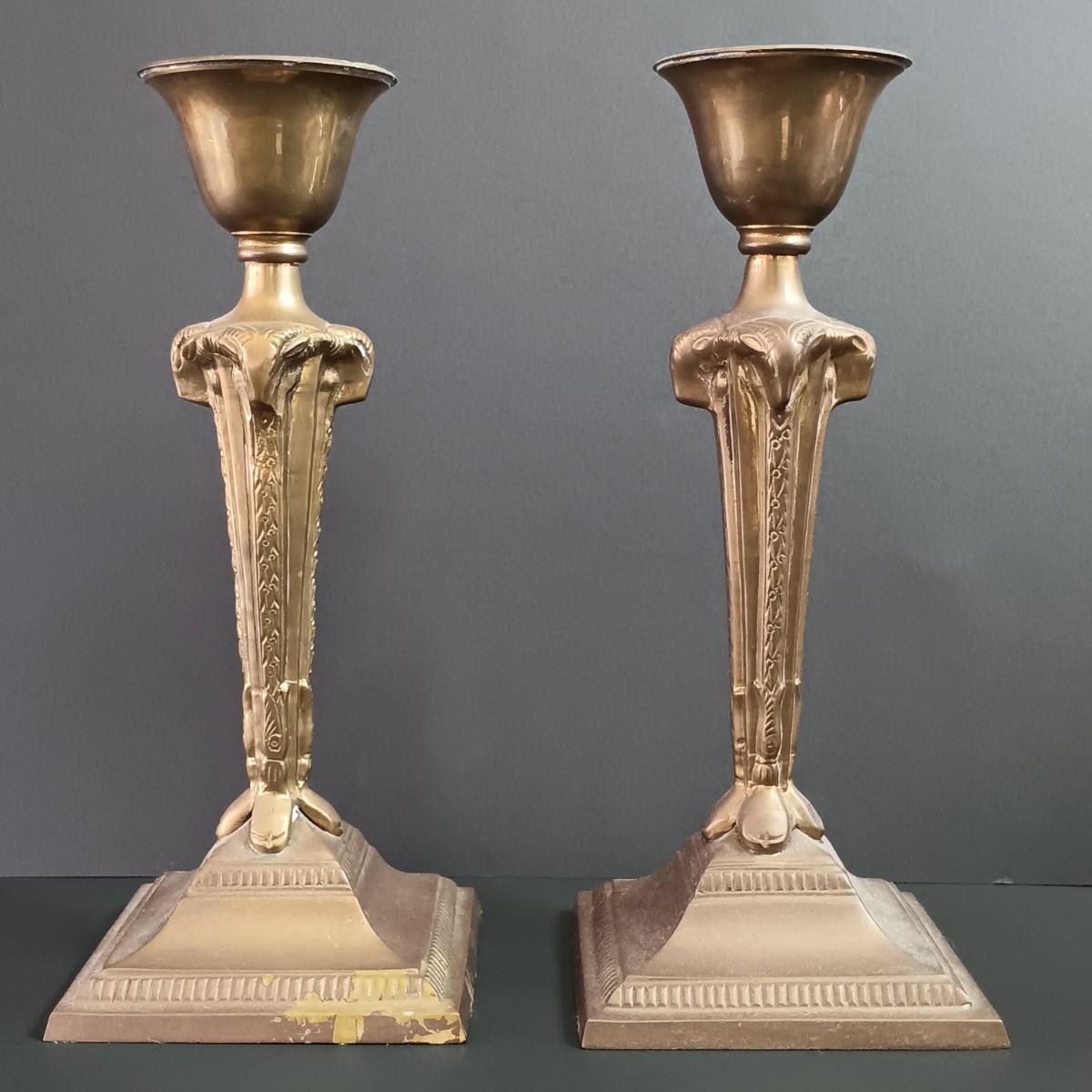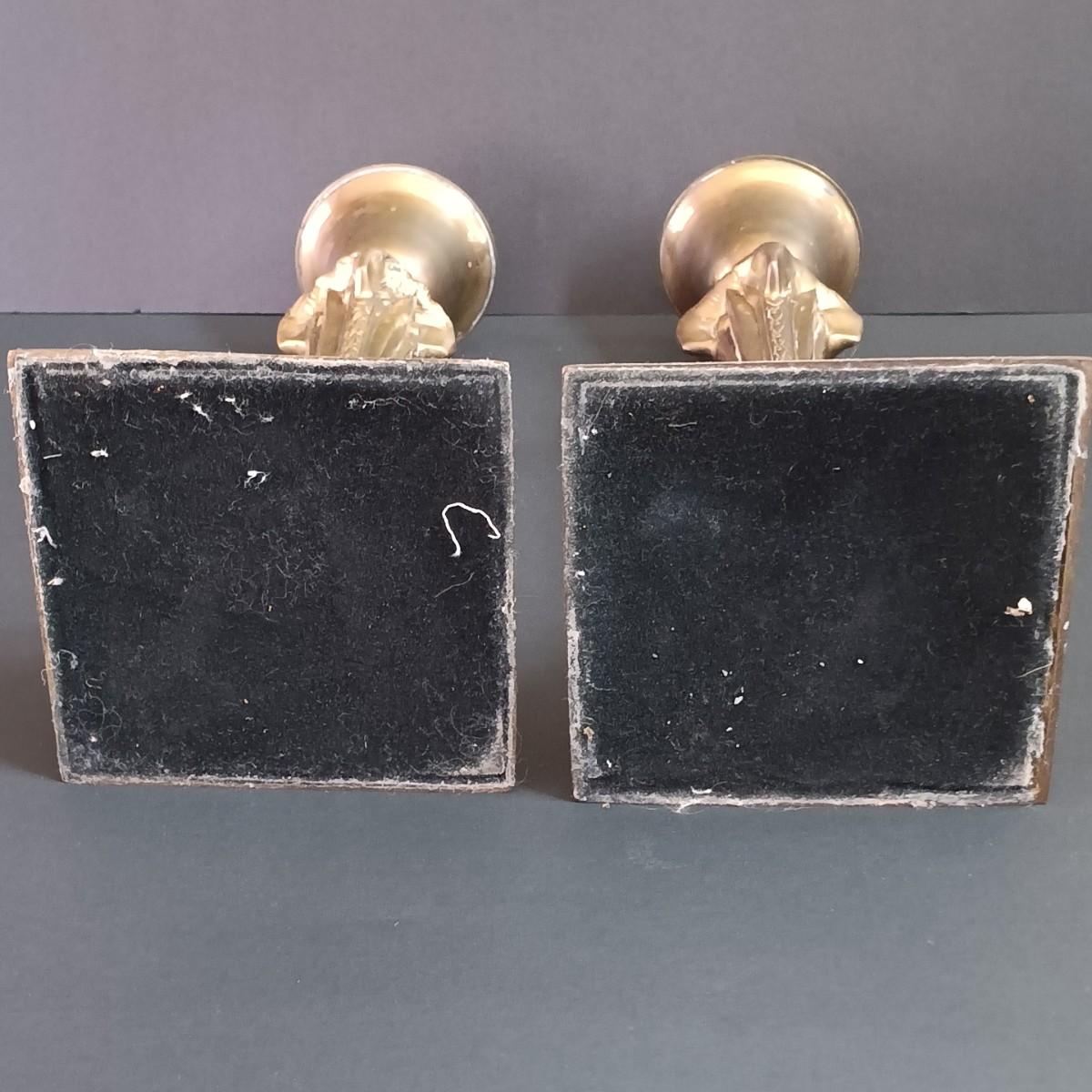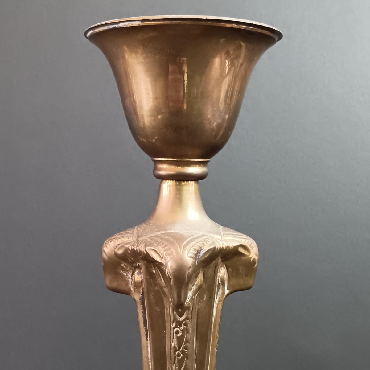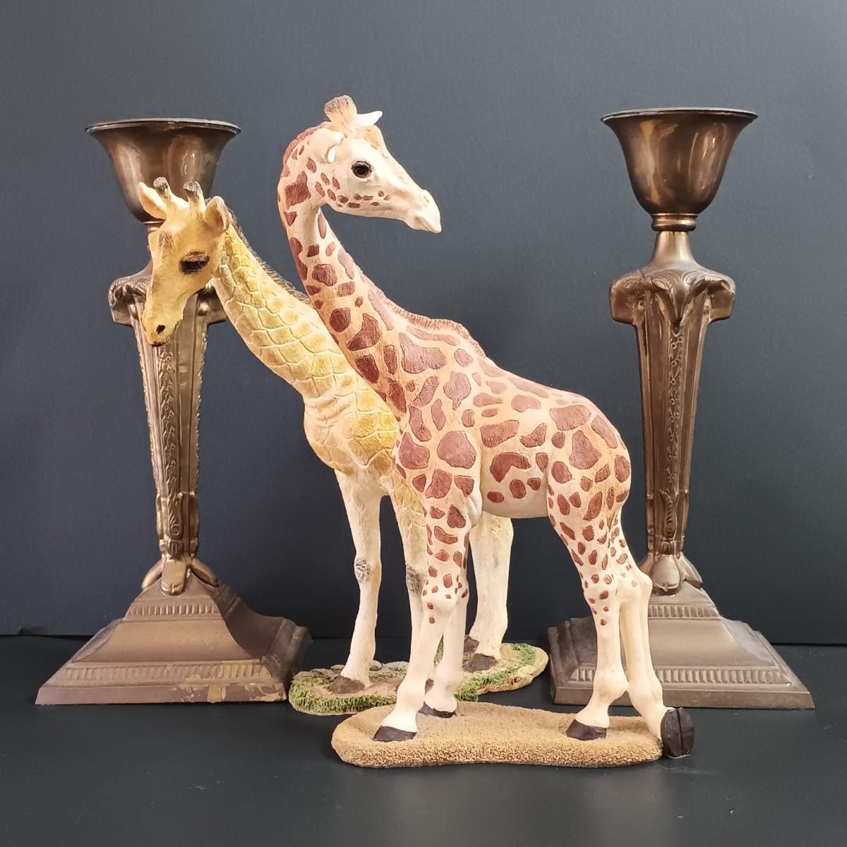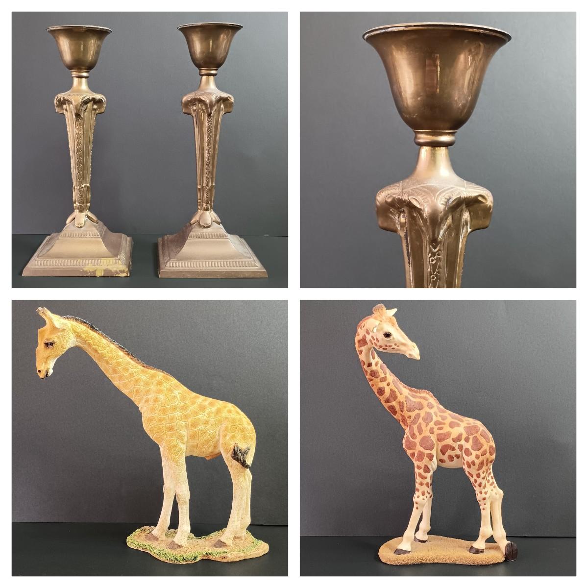 LOT 36: Vintage Brass Ram Head Candlestick Holders with Giraffes