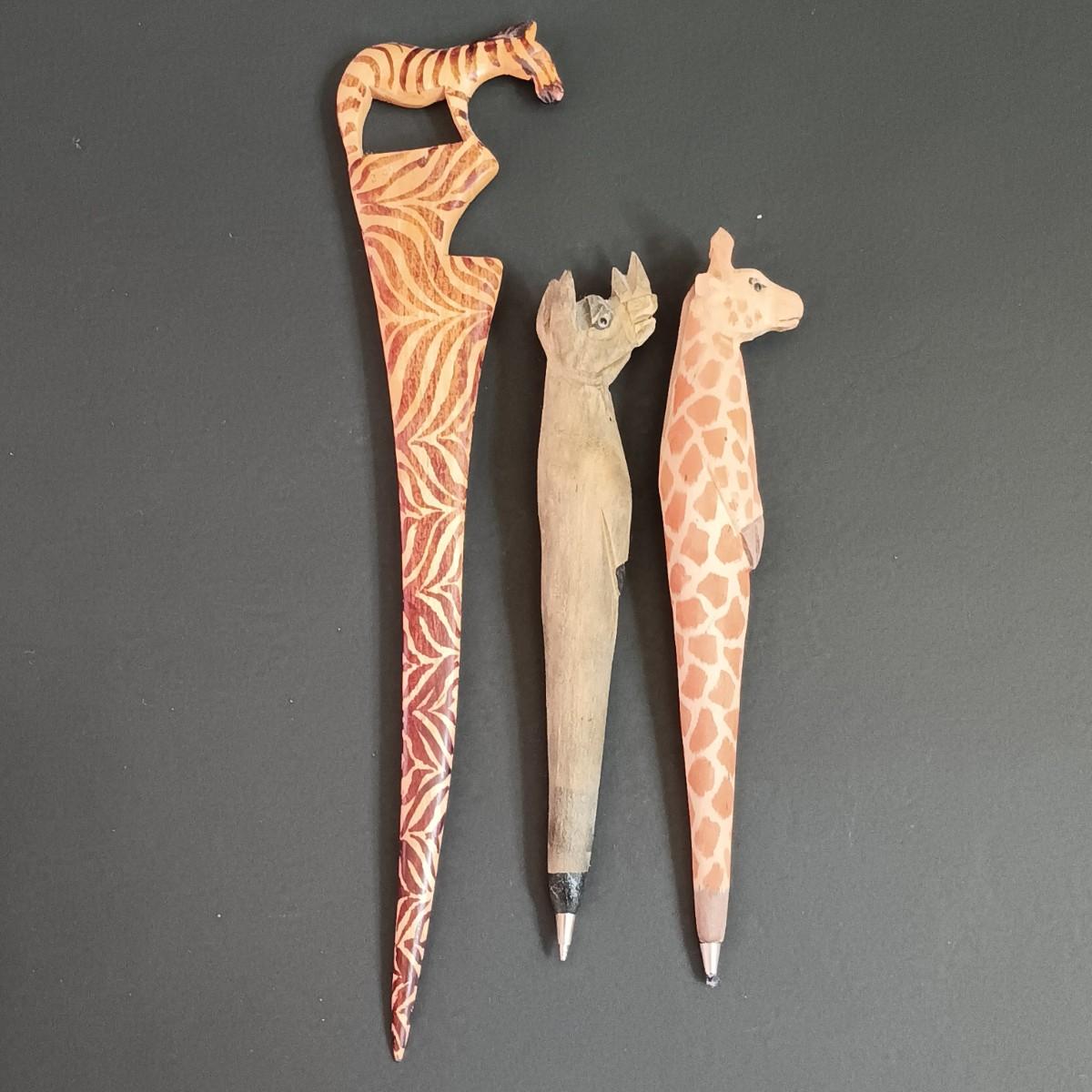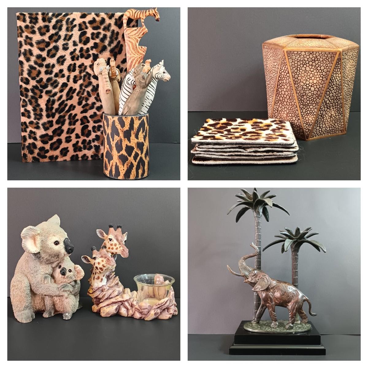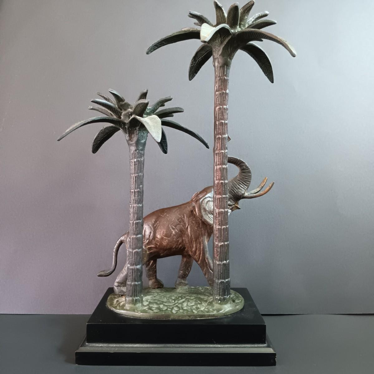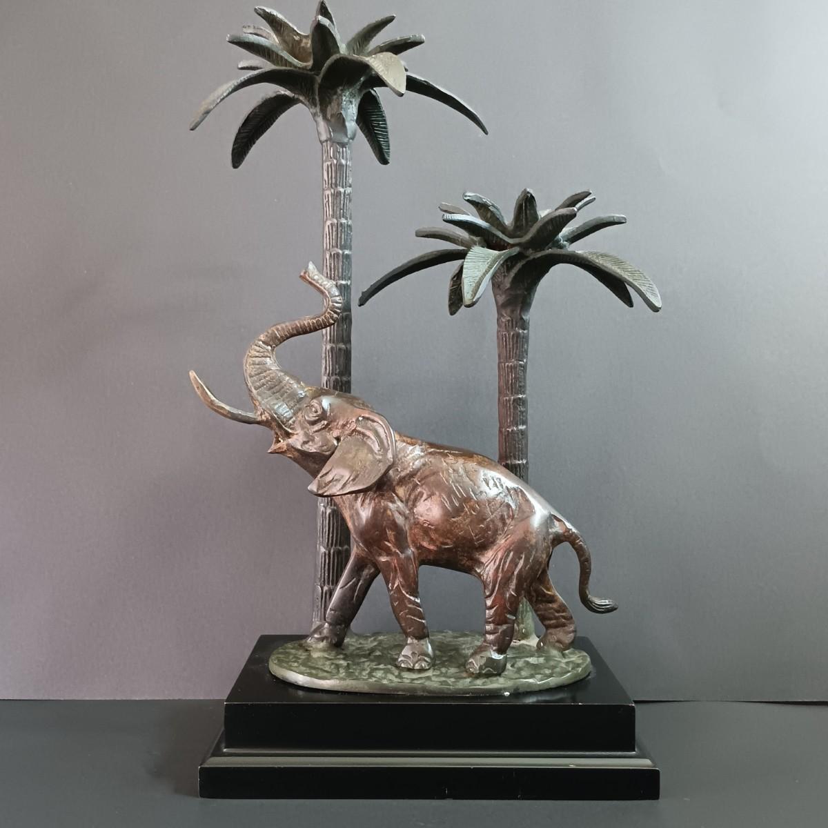 LOT 38: Vintage Decorative Crafts Inc. Metal Elephant Candelabra with Handcarved Wood Pens and More