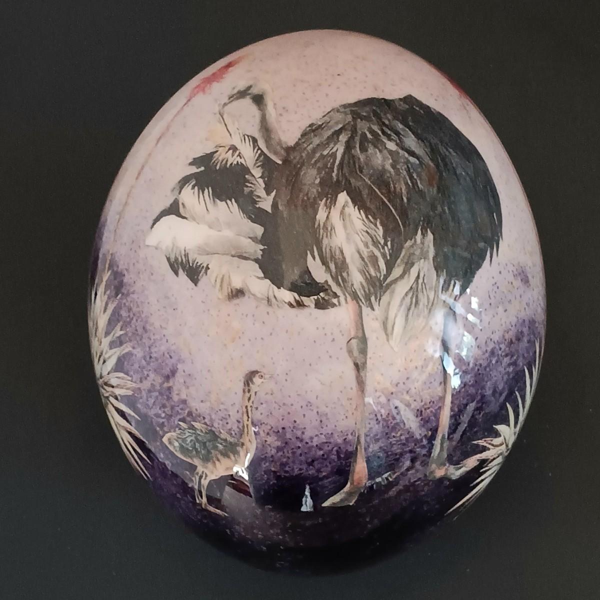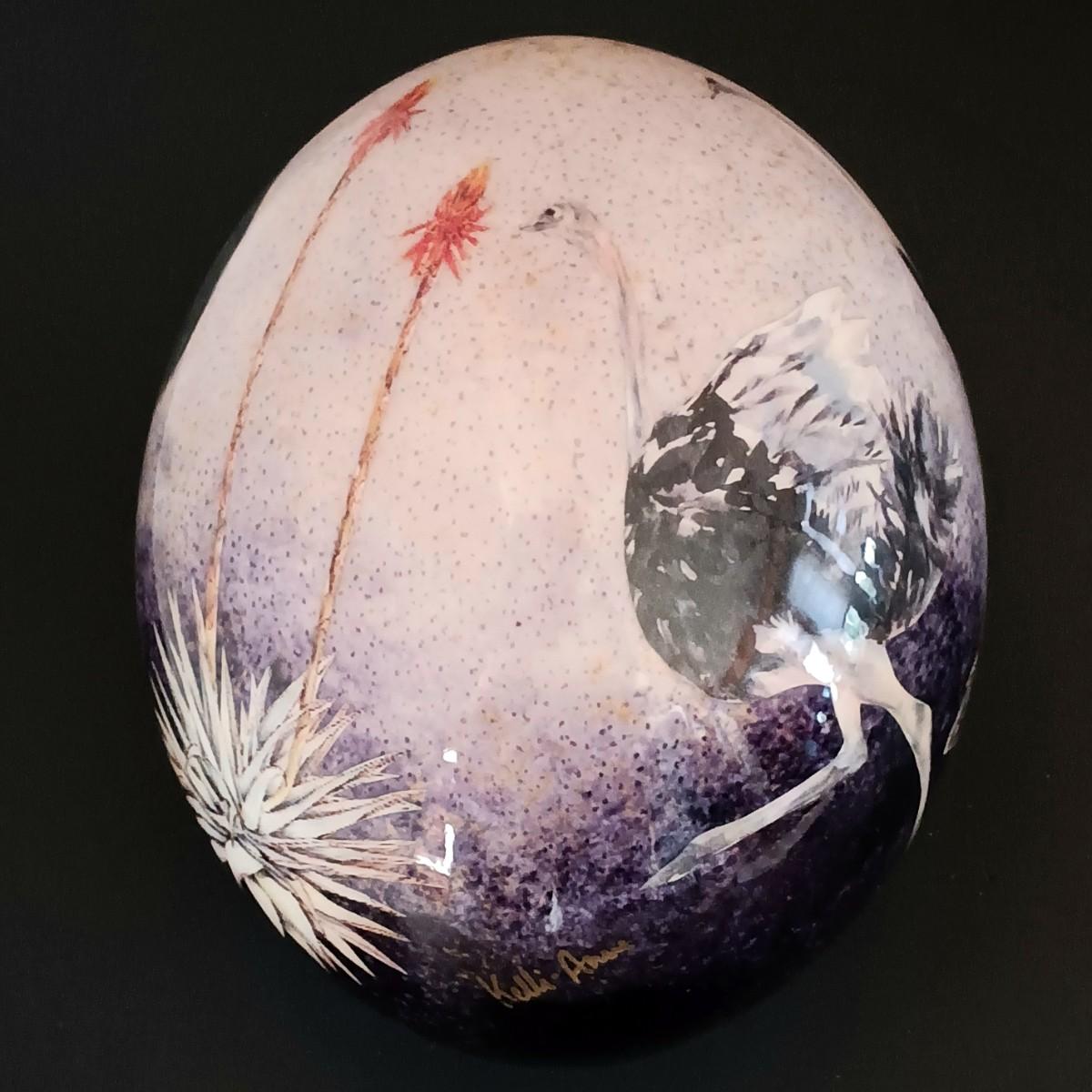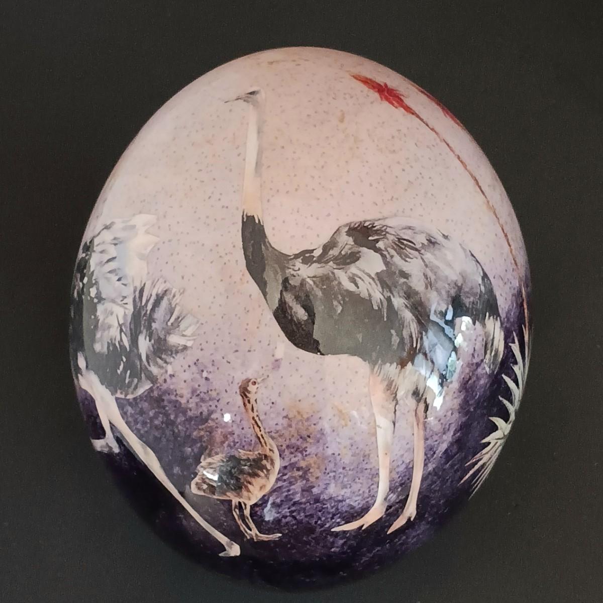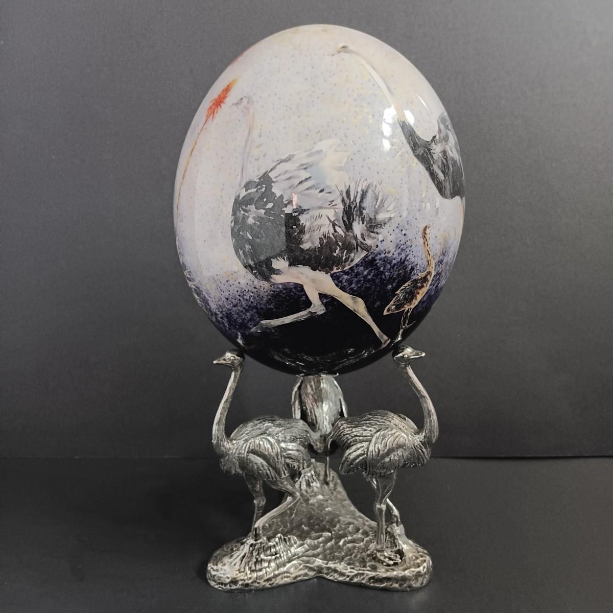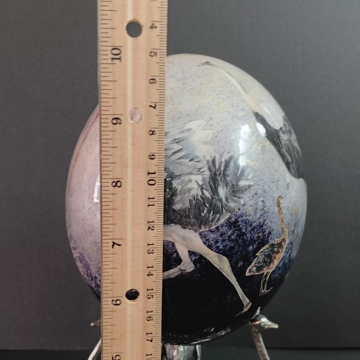 LOT 39: Haus Design Metal Ostrich Stand with Painted & Signed Ostrich Egg