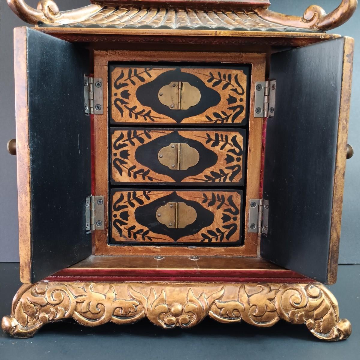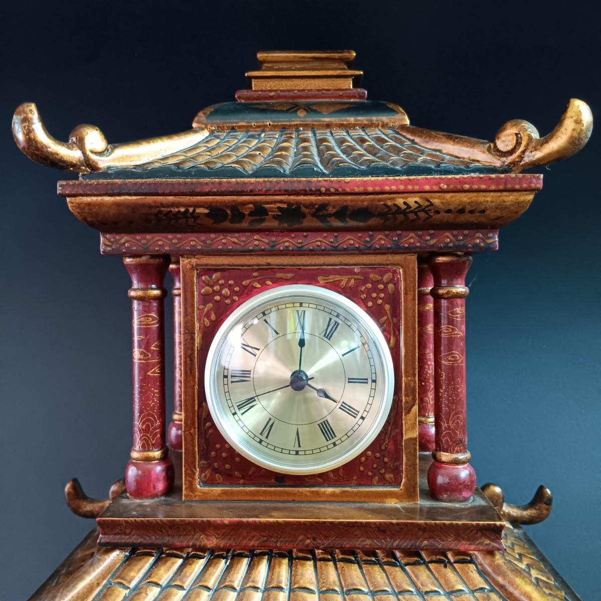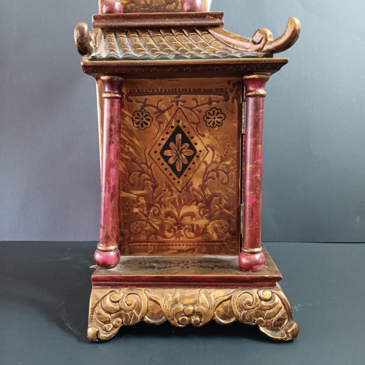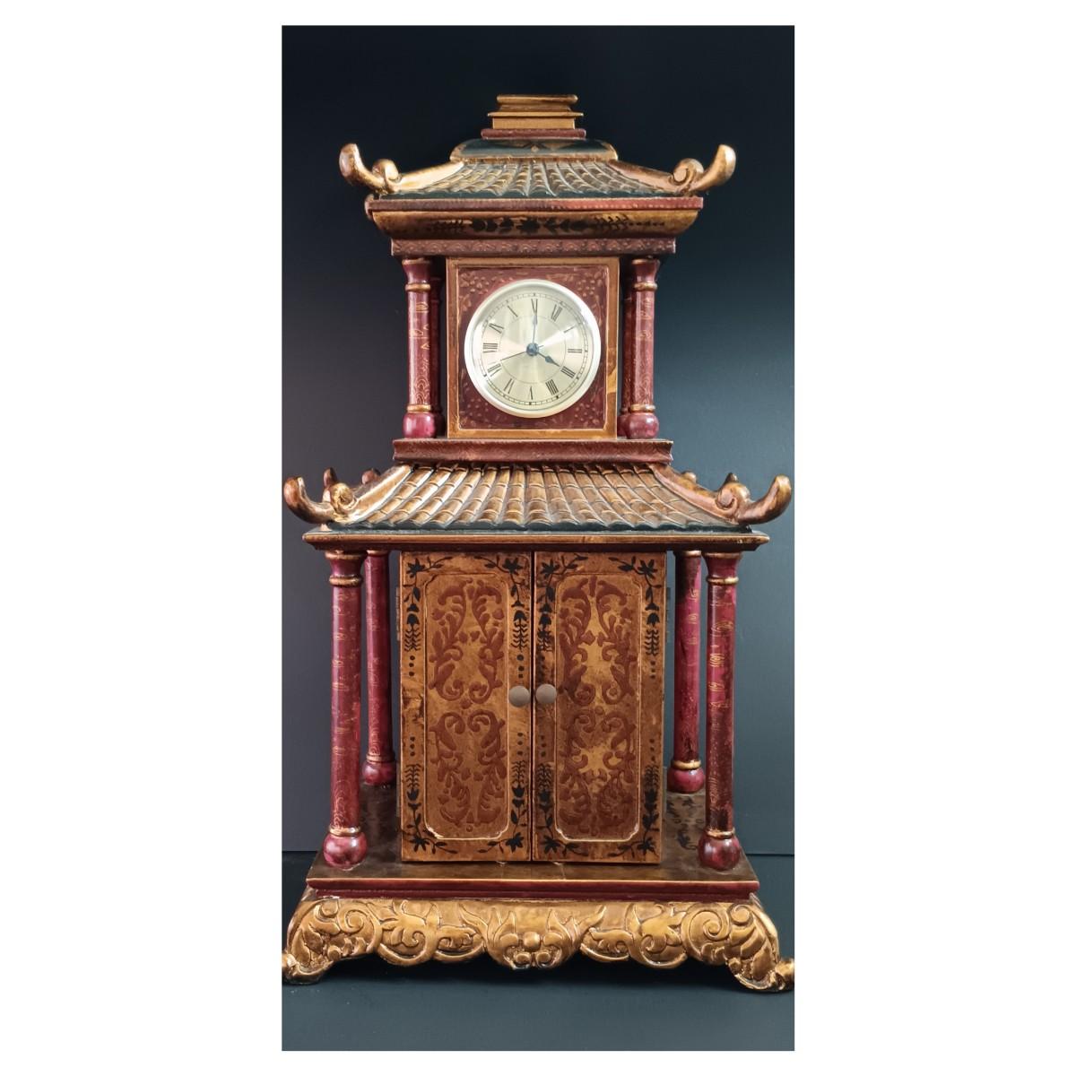 LOT 41: Vintage Oriental Accent Pagoda Clock with Jewelry Drawers