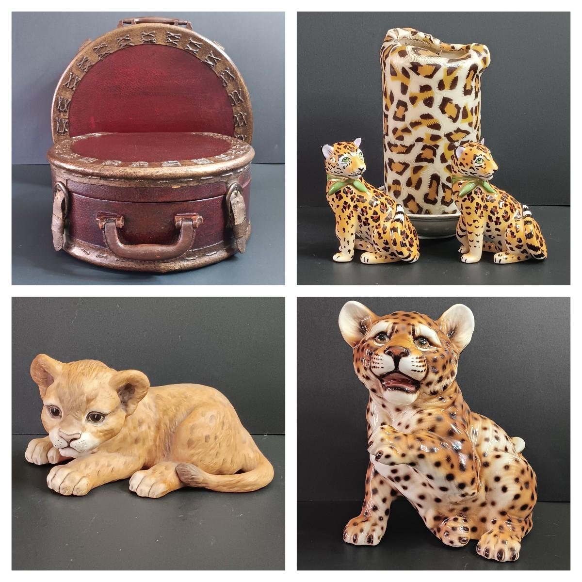 LOT 42: Lynn Chase Leopard Salt and Pepper Shakers, Boehm Lion Cub, Italian Pottery Leopard Cub & More