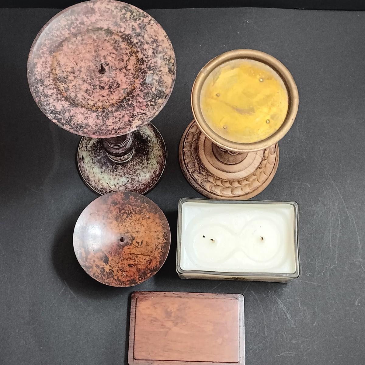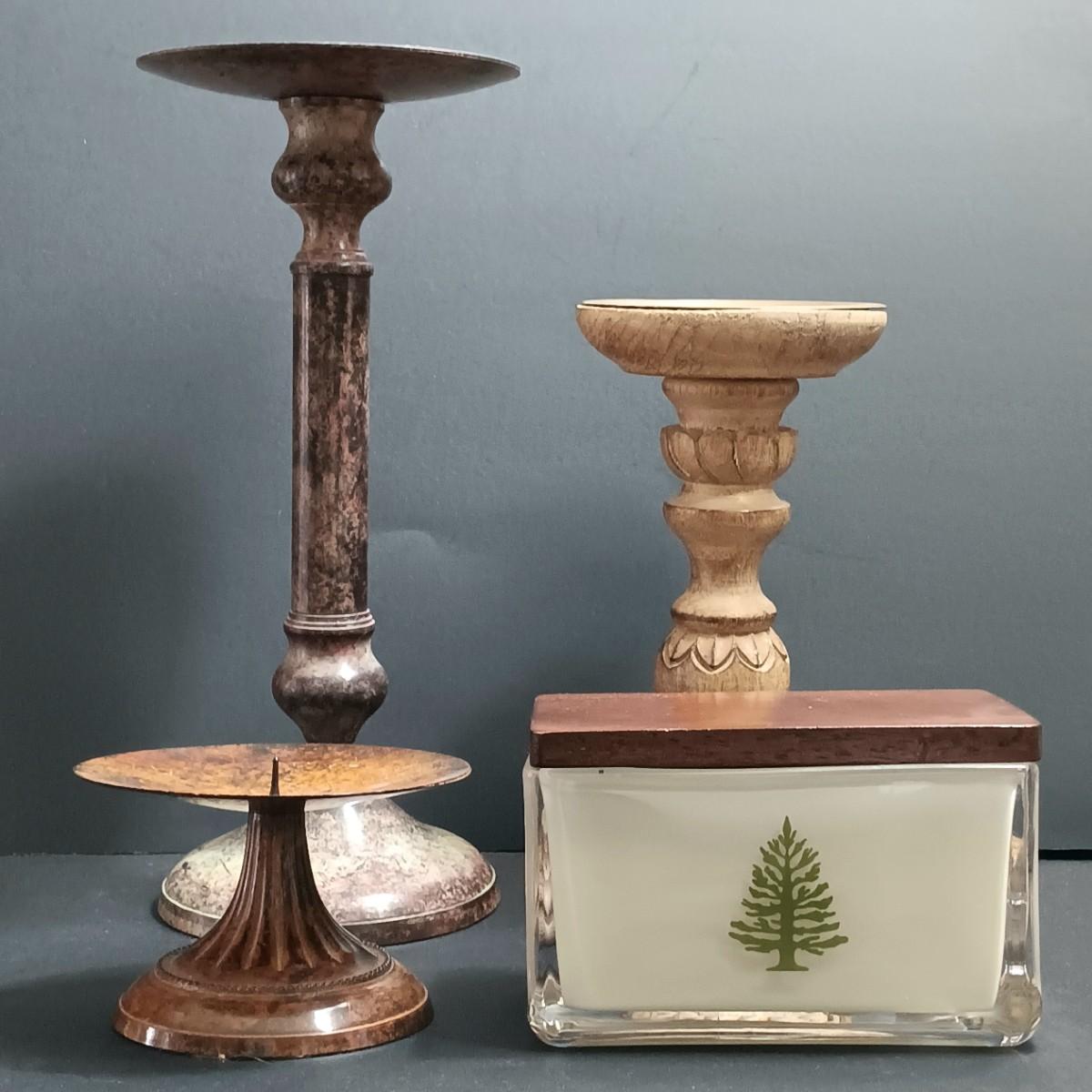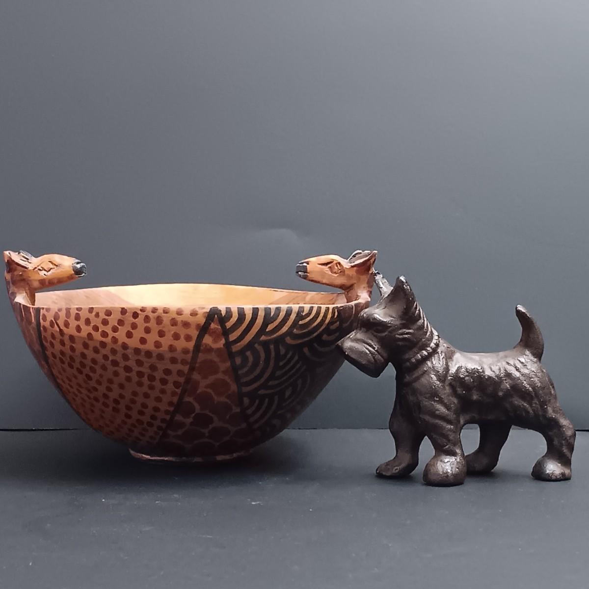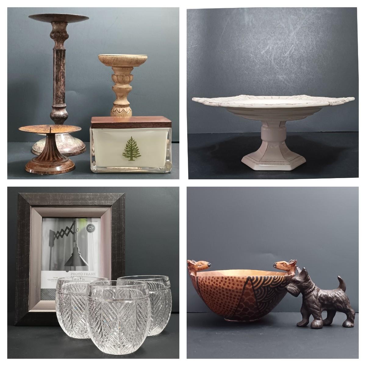 LOT 45: Ralph Lauren Crystal Herringbone Candle Holders, Vintage Cast Iron Scottie Dog, Handcarved African Bowl & More