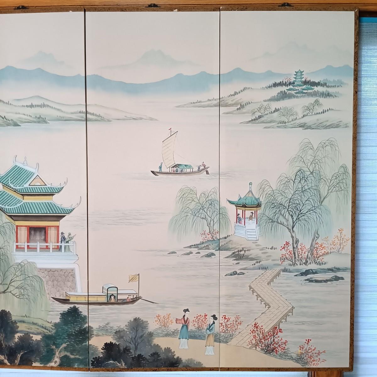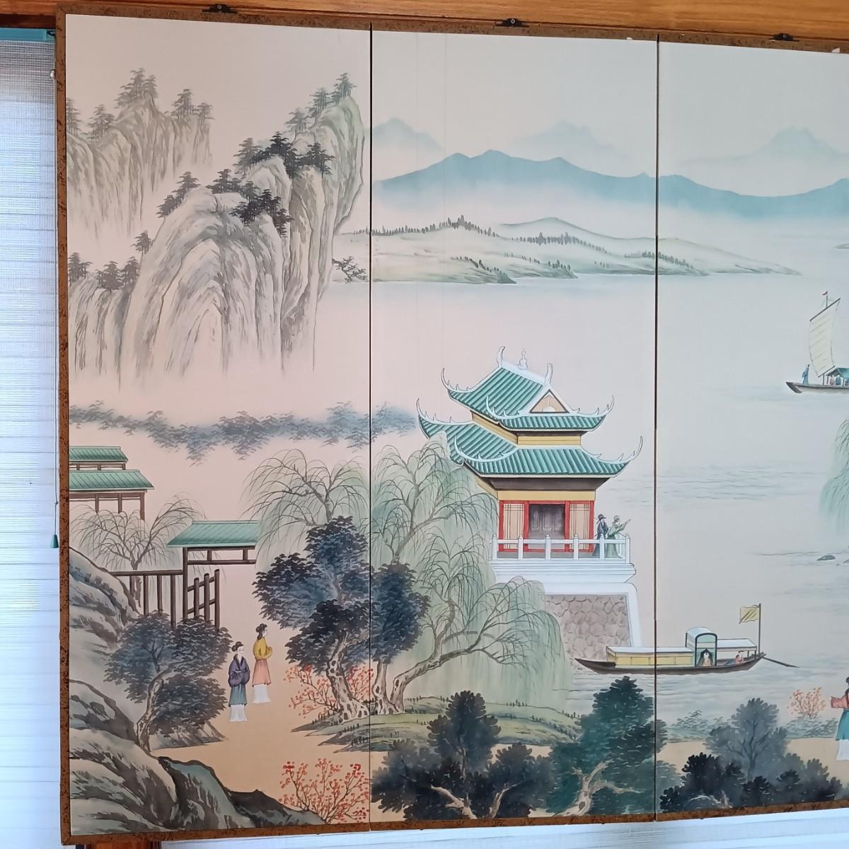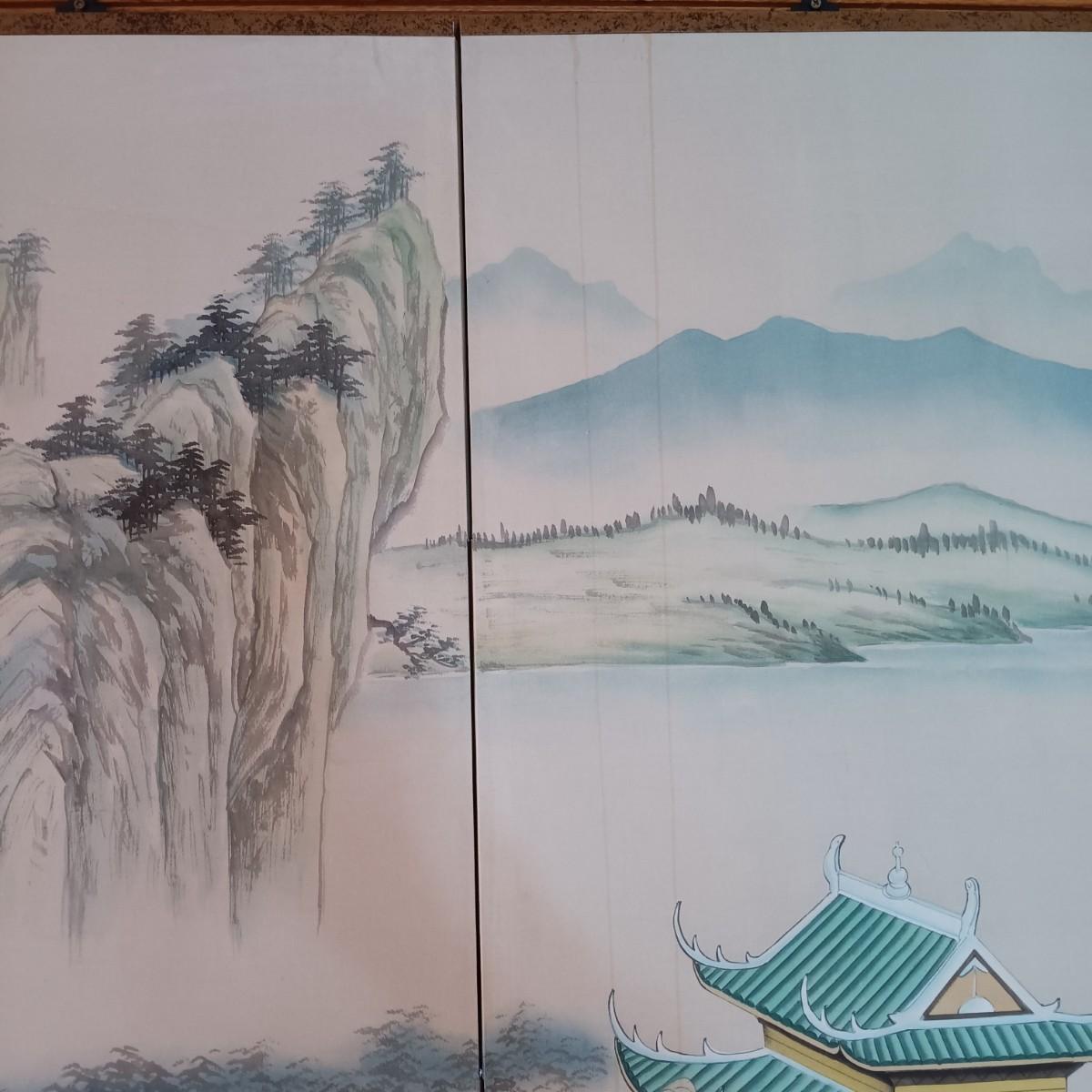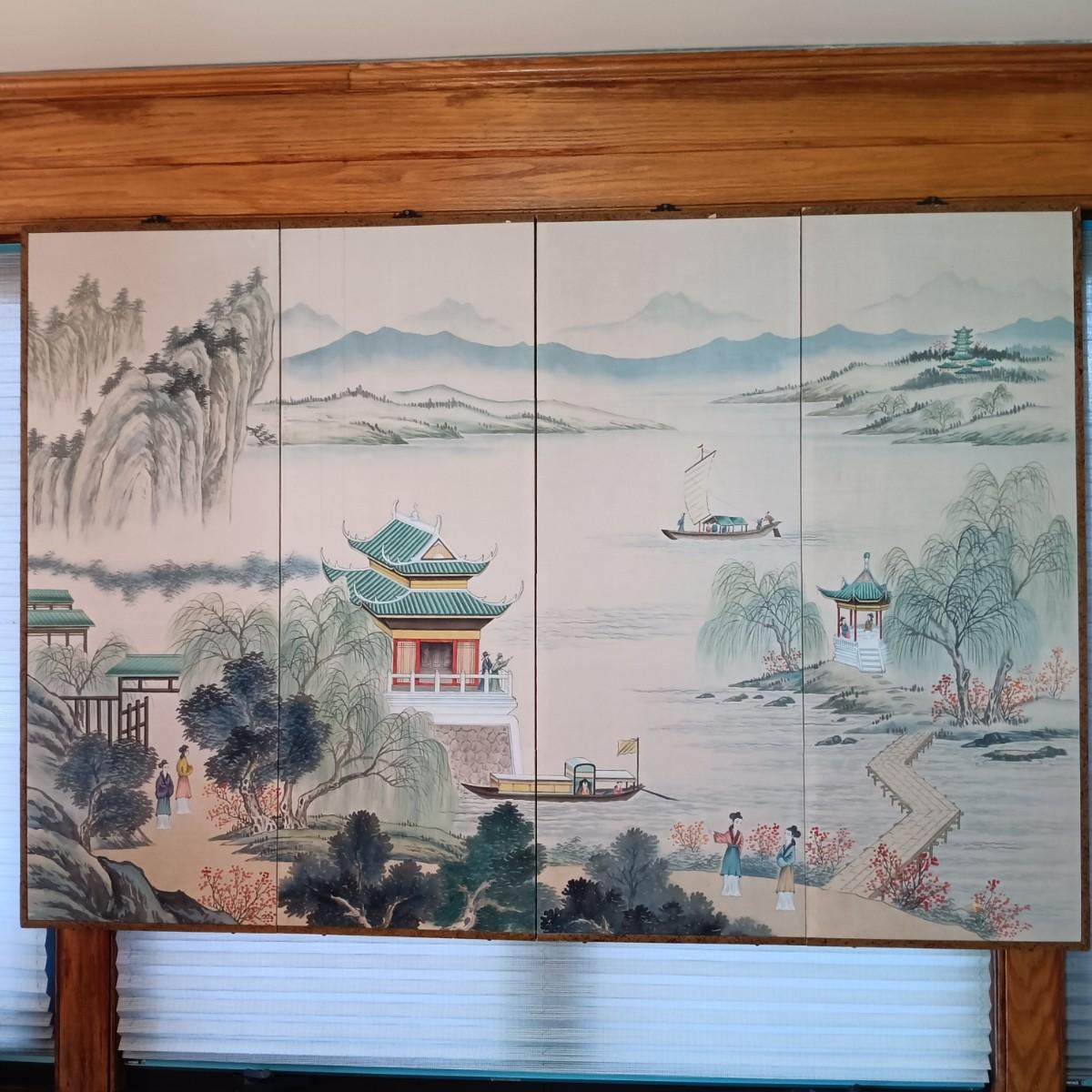LOT 53: Large Asian-Inspired Folding Screen / Four Panel Wall Art