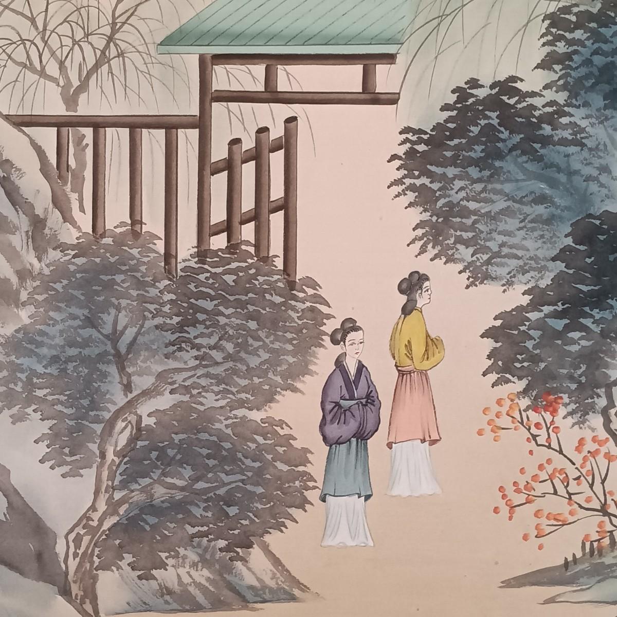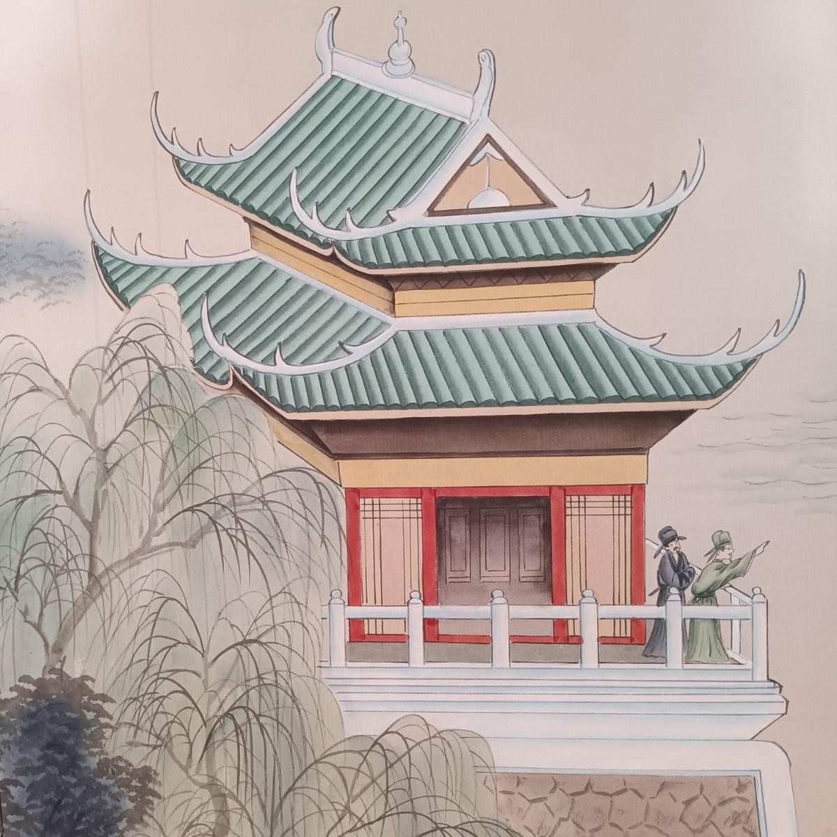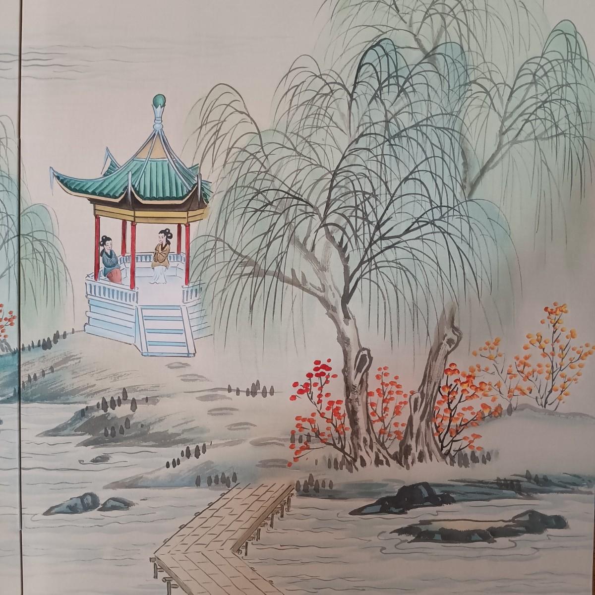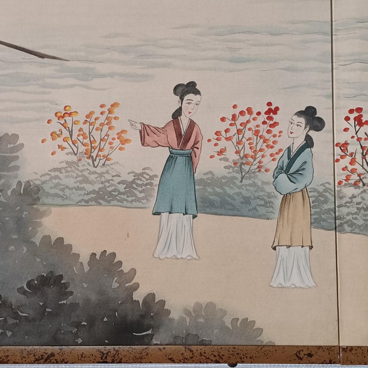 LOT 53: Large Asian-Inspired Folding Screen / Four Panel Wall Art