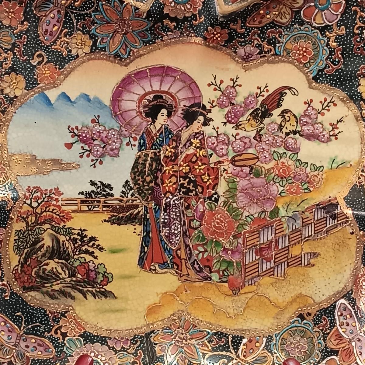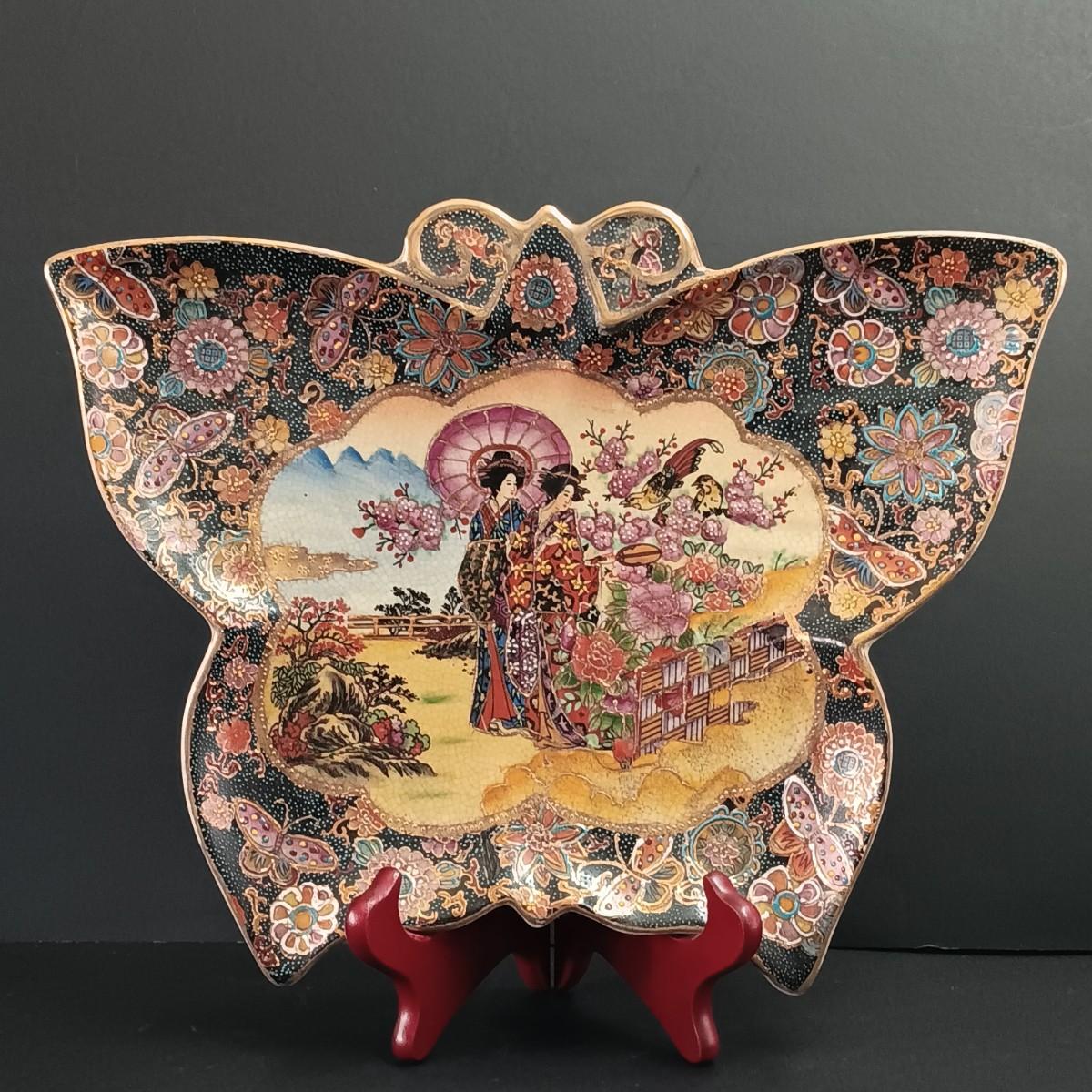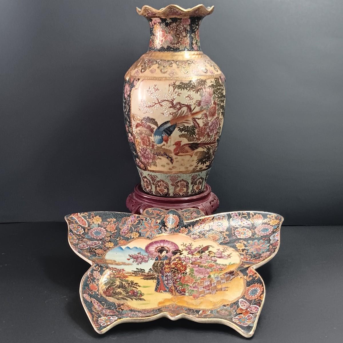 LOT 54: Vintage Satsuma Butterfly Plate and Vase