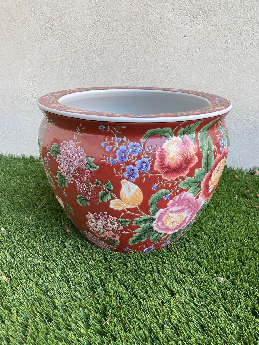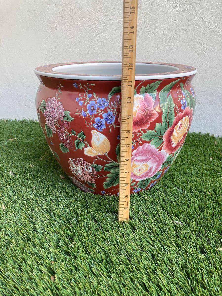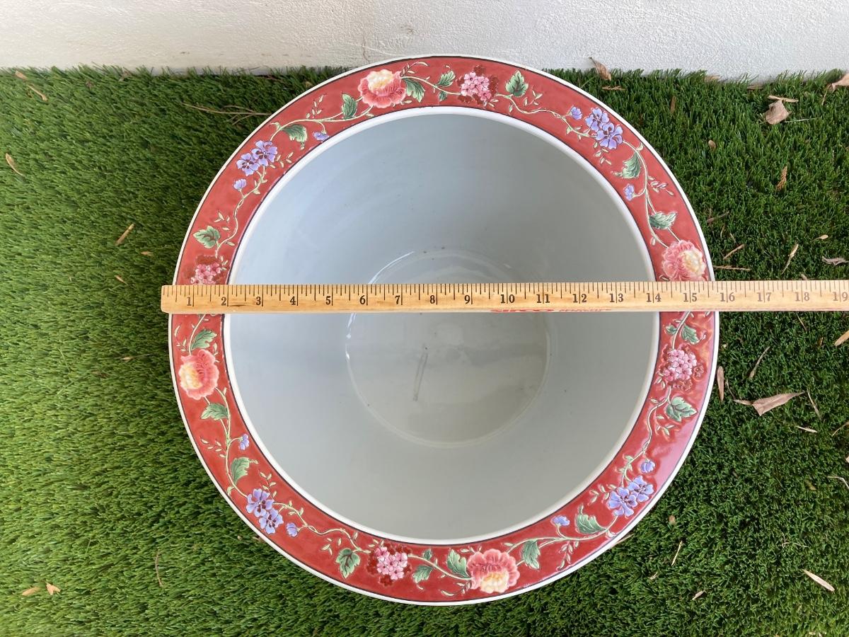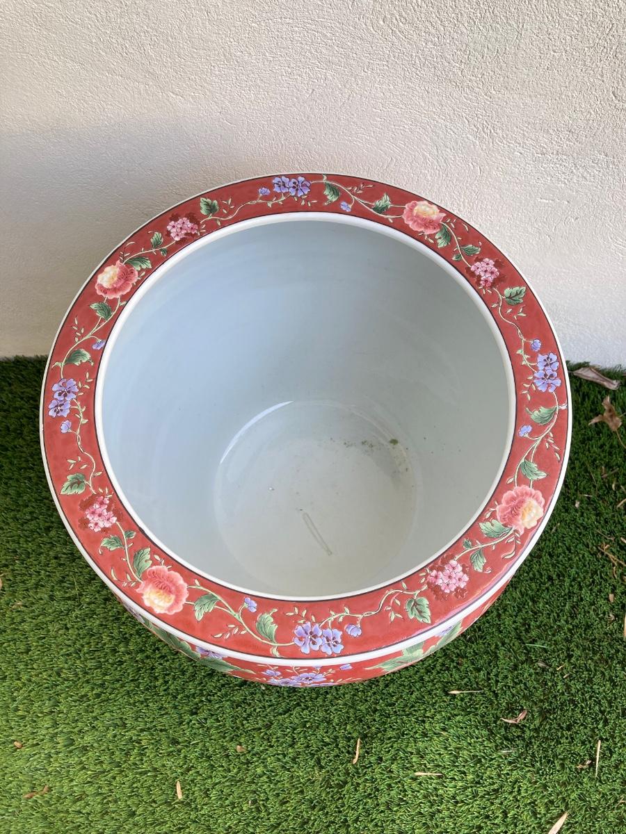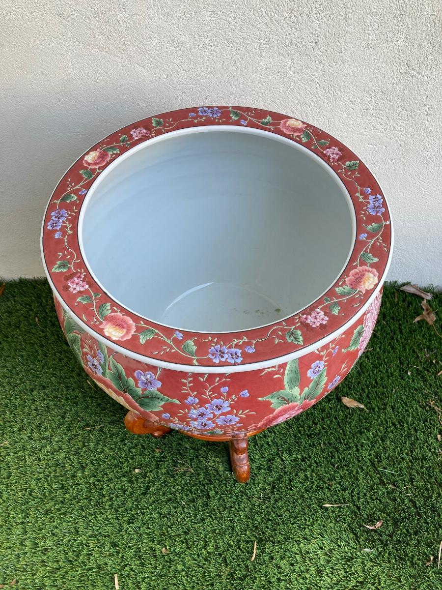 LOT 65: Asian Floral Planters with One Wooden Stand - Made in China