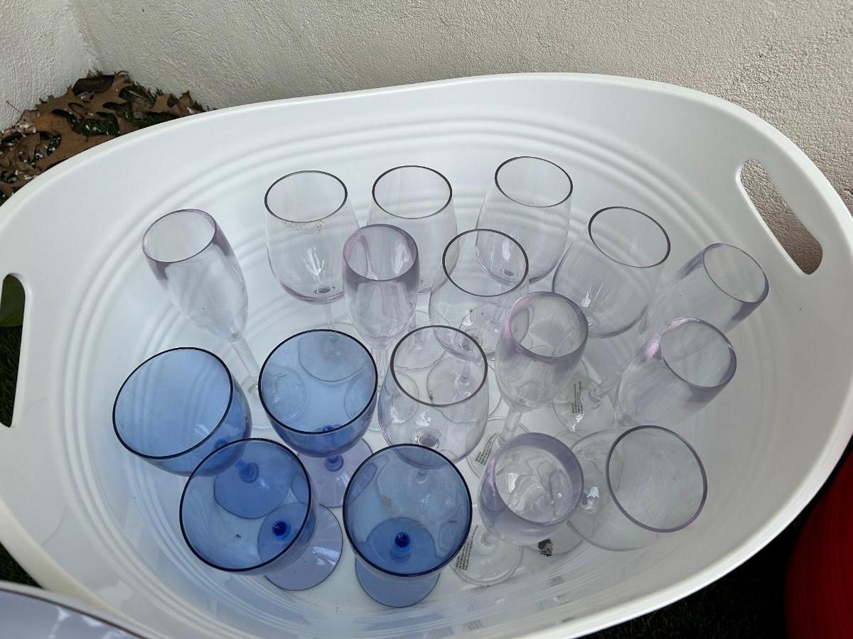 Storage buckets, ice buckets, plate covers, plastic wine glasses, trays and more.