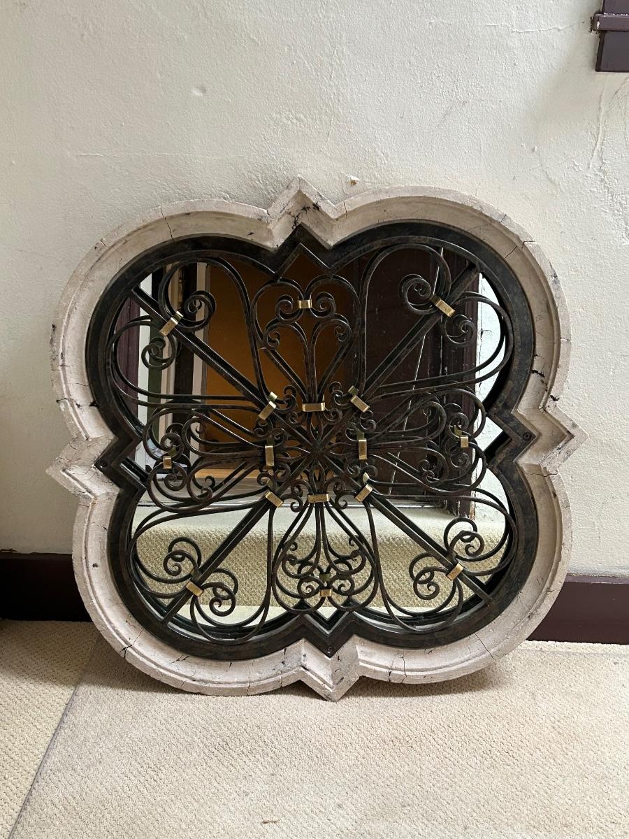 LOT 104H: John Richard Quatrefoil Stone/Iron/Mirror Wall Medallion - Very Heavy