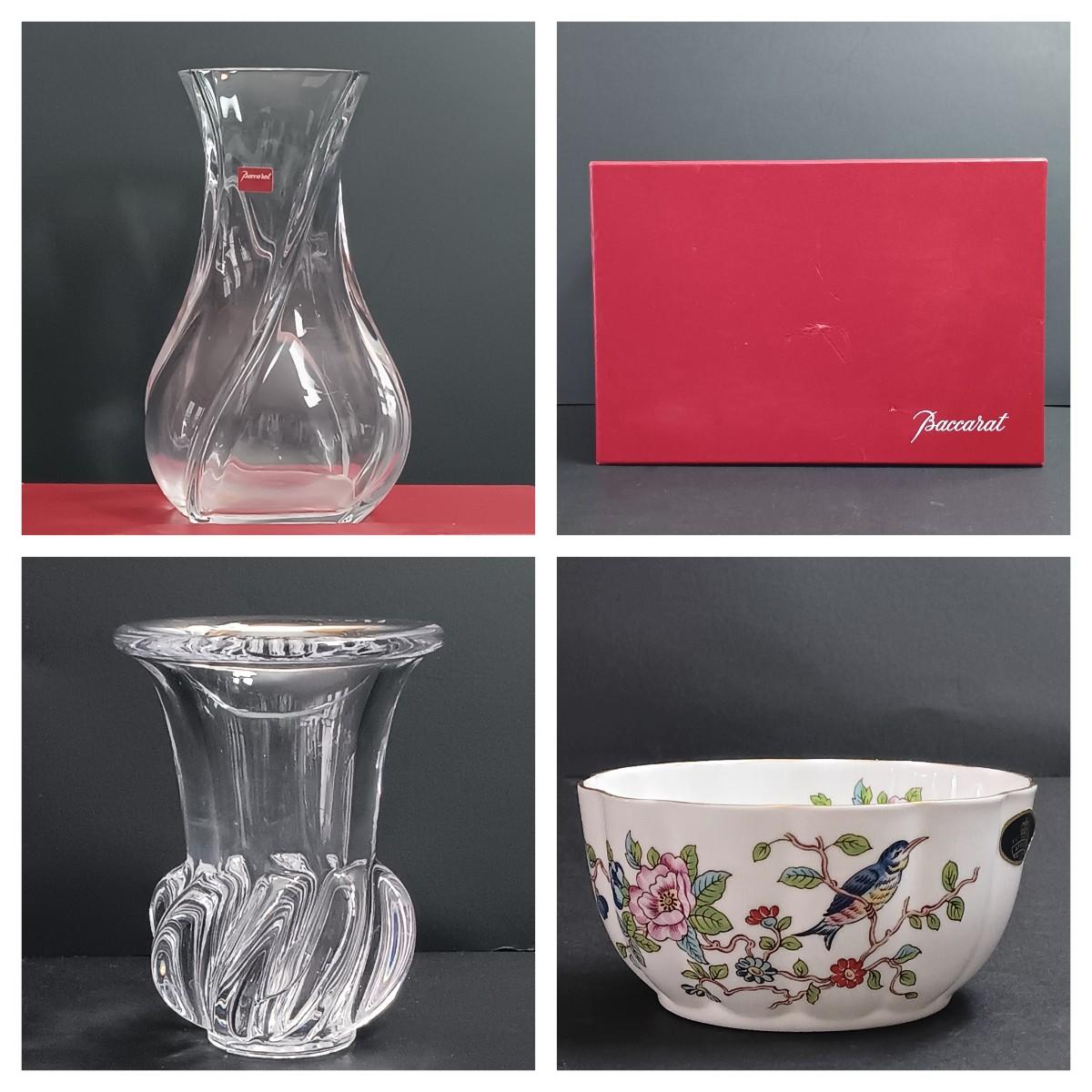 LOT:111-O: Baccarat Crystal Vase with Box, Aynsley Bone China Pembroke Bowl and French Crystal Vase