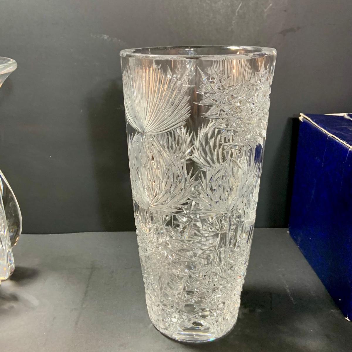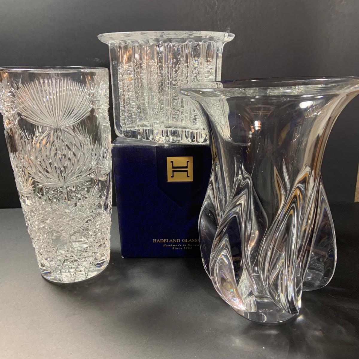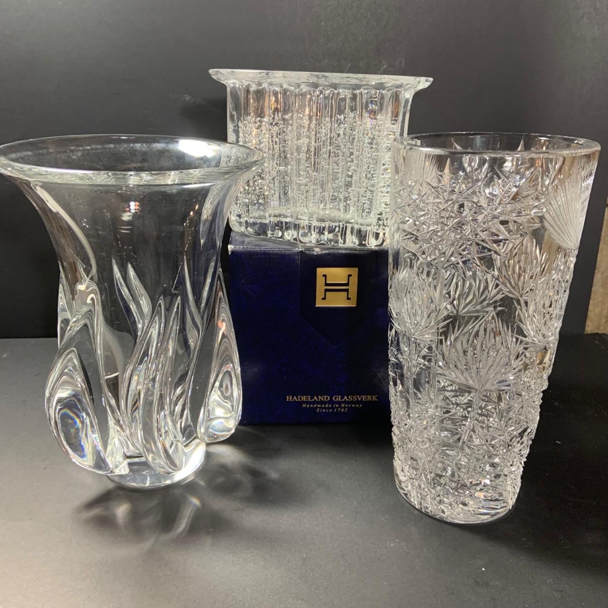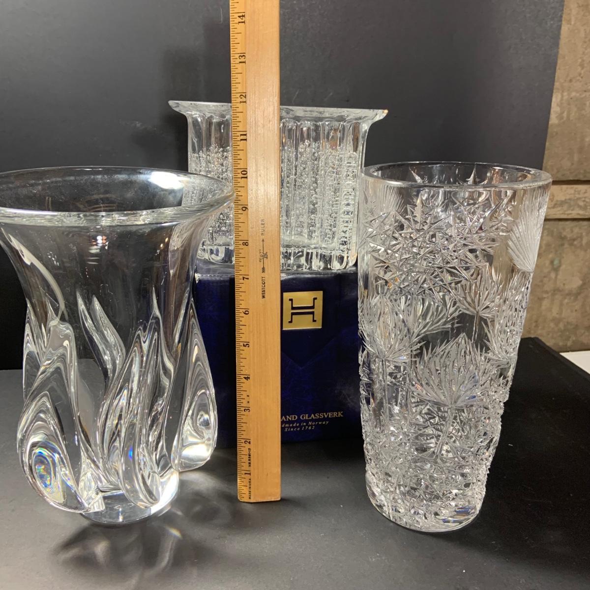 LOT:119B: Beatiful Glass/ Crysal Vases and Hadeland Glassverk Candle Holder in Original Box