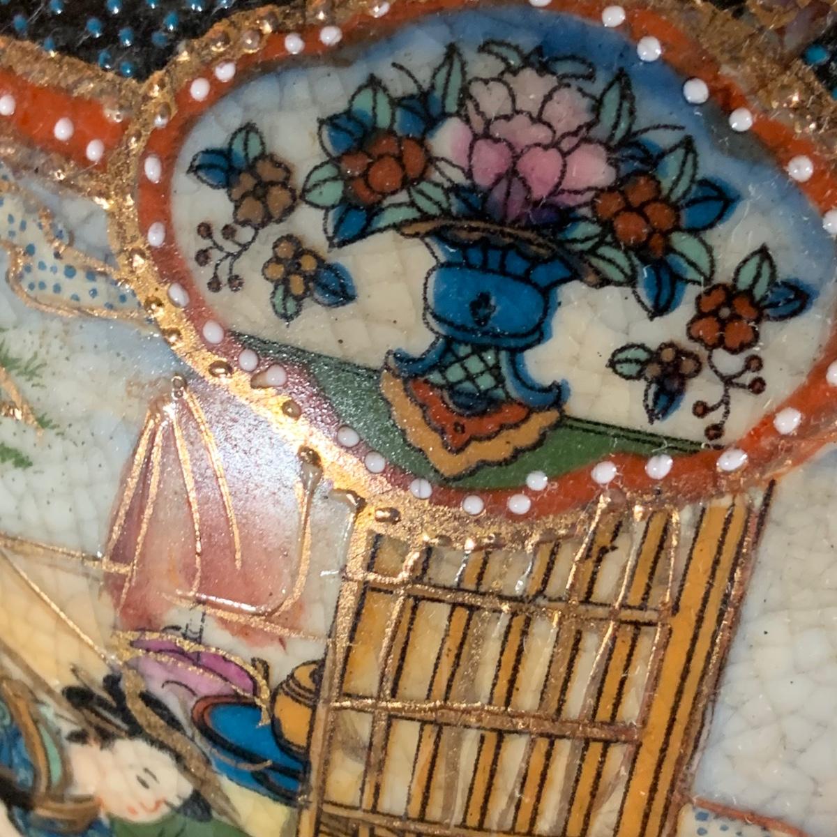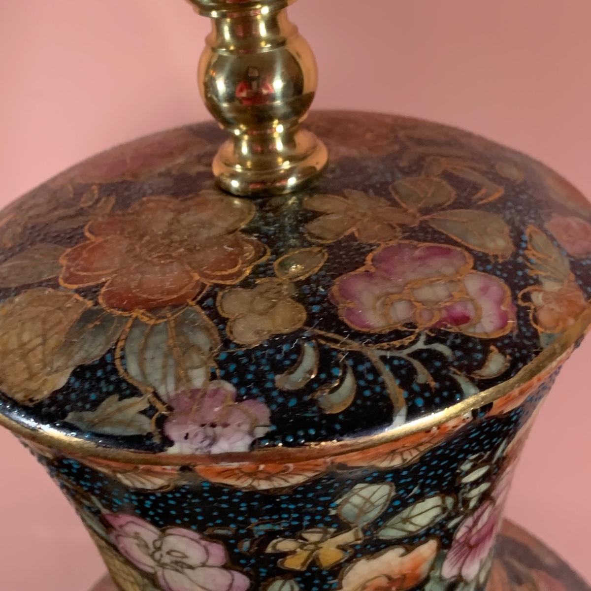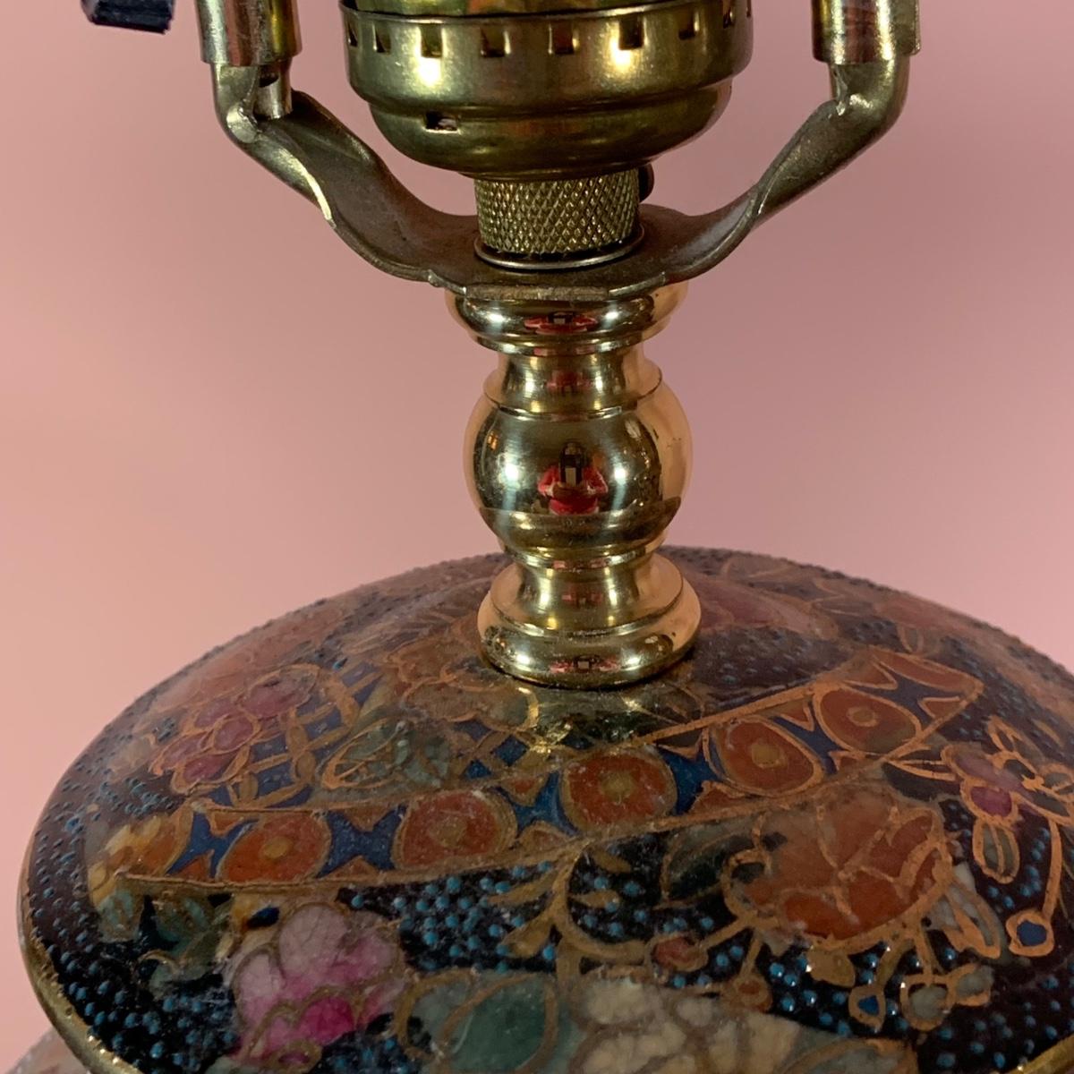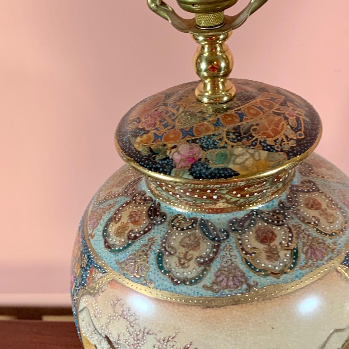LOT:126: Set of 2 Japanses Satsuma Style Porcelain Table Lamps on Wood Bases