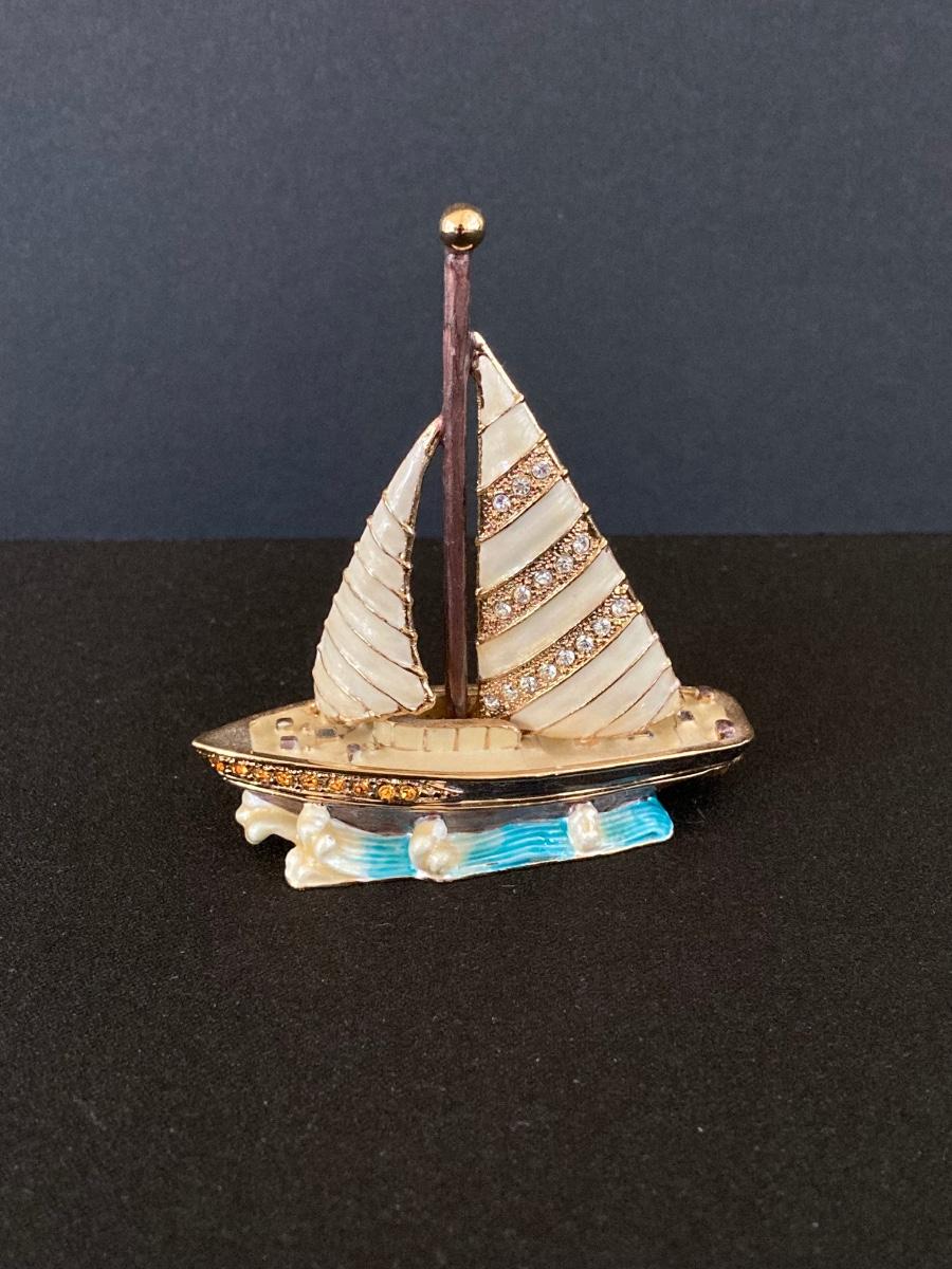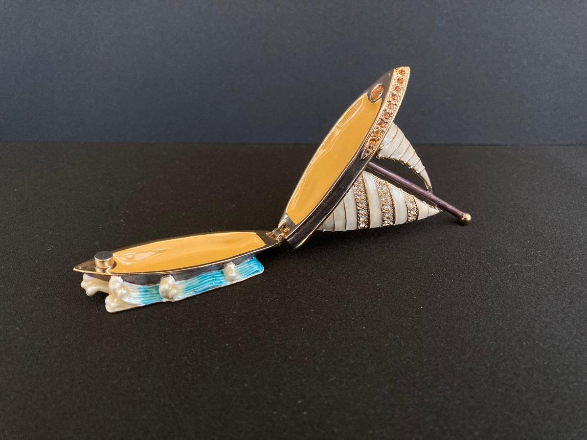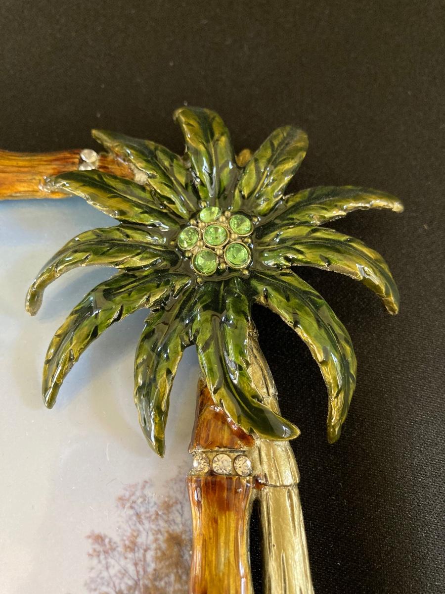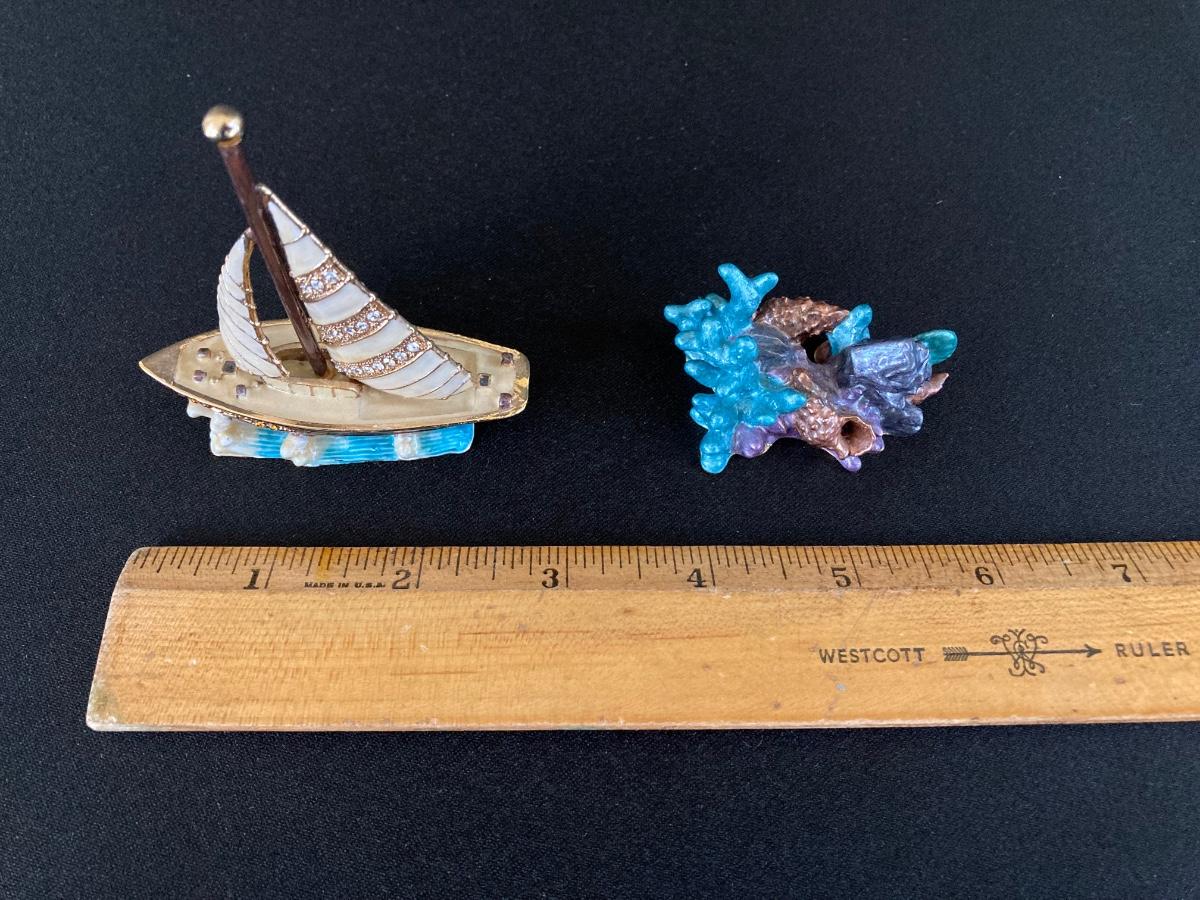 LOT 138: Jeweled Palm Tree Bamboo Picture Frame with Bejeweled Sailboat Trinket Box and Coral Reef