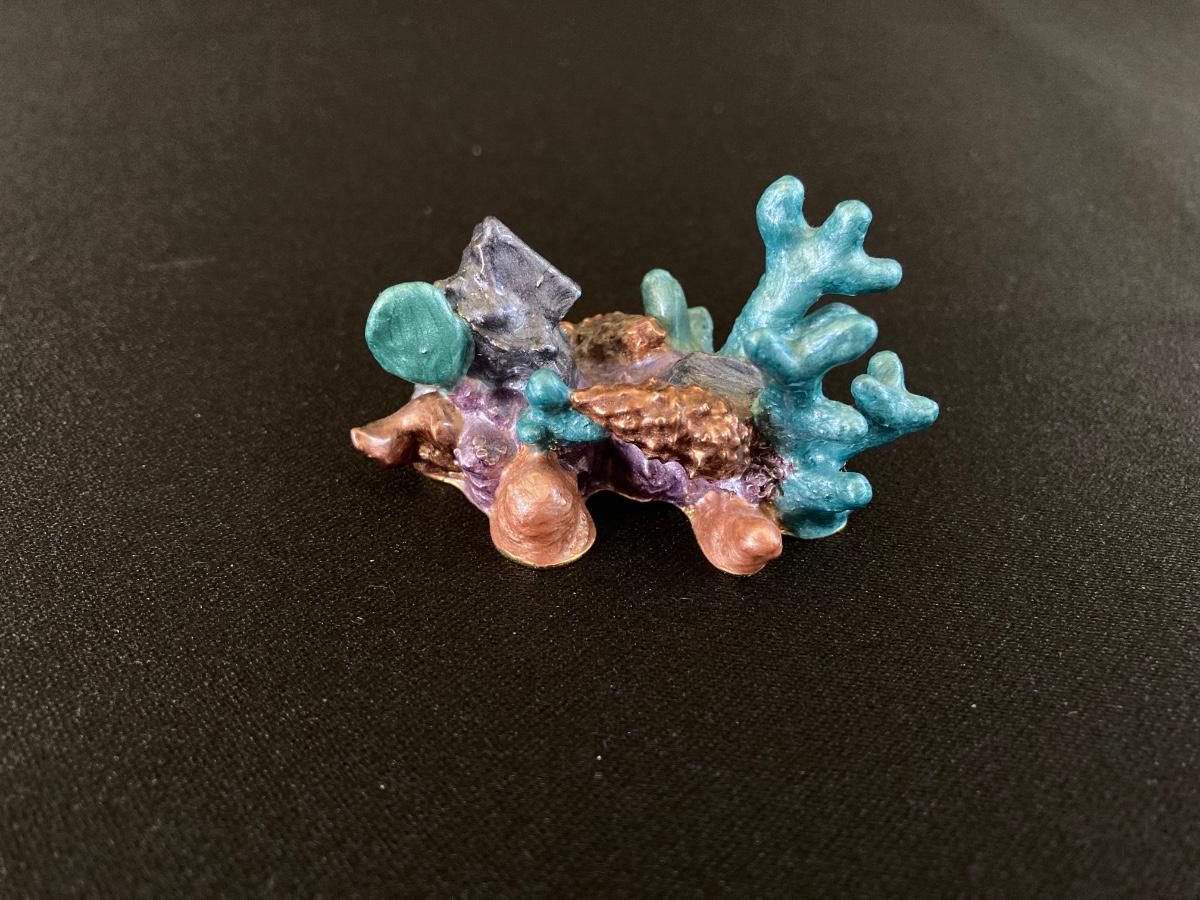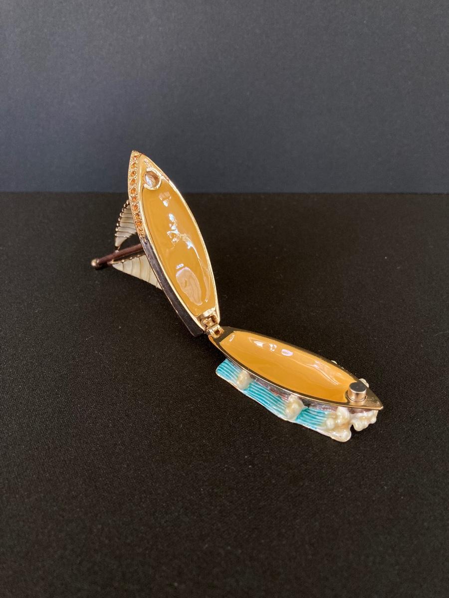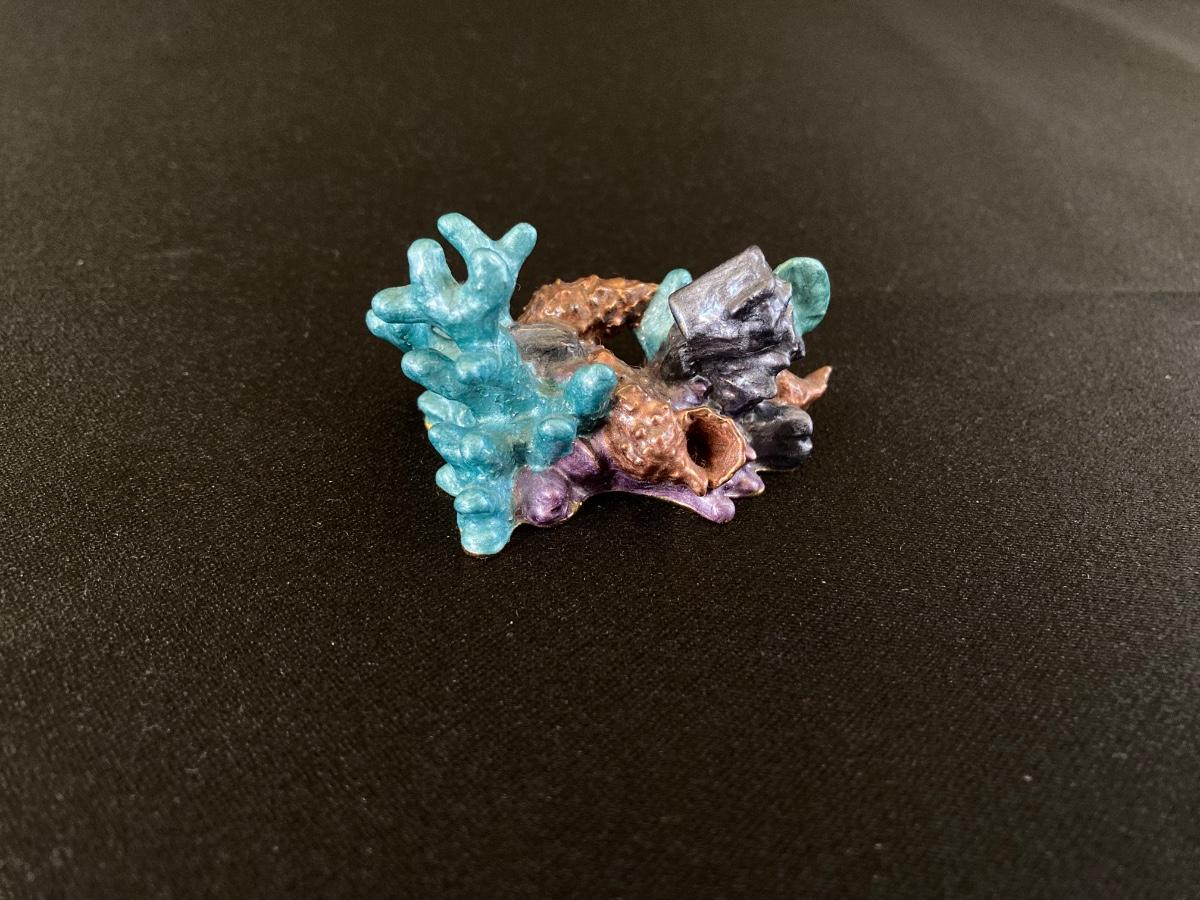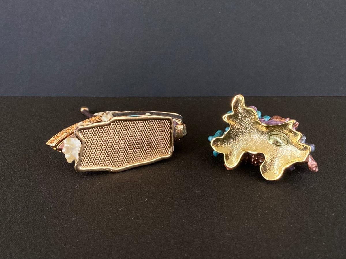 LOT 138: Jeweled Palm Tree Bamboo Picture Frame with Bejeweled Sailboat Trinket Box and Coral Reef