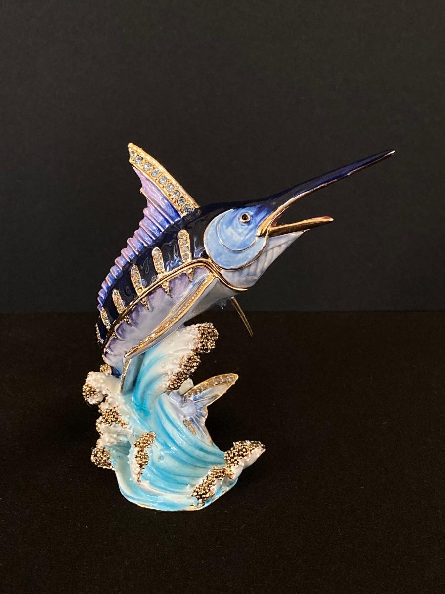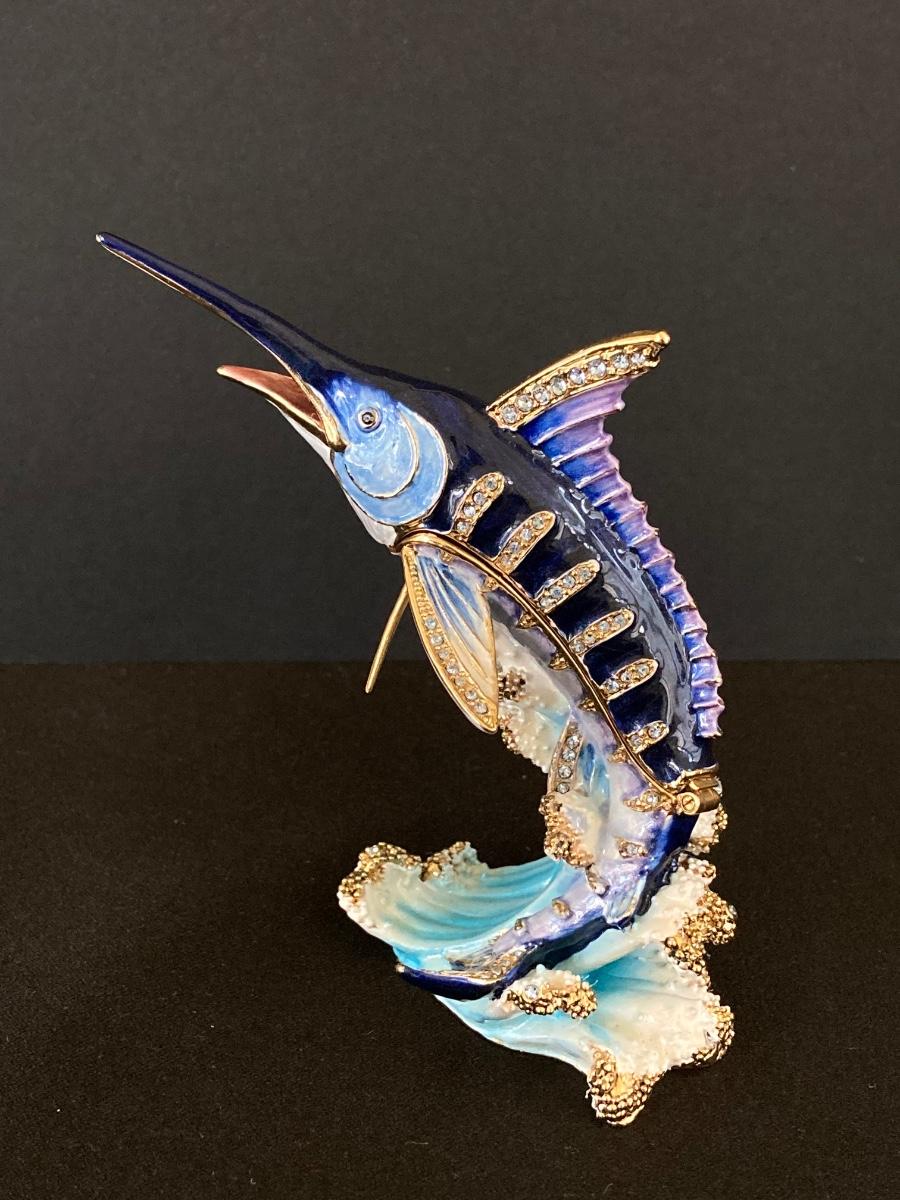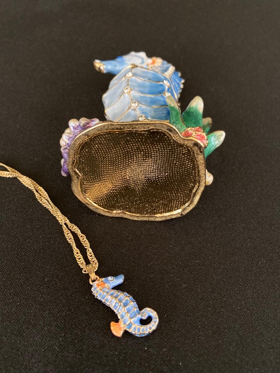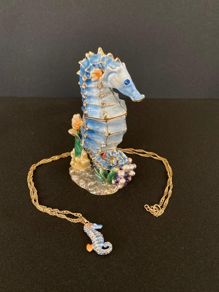 LOT 139: Bejeweled Sea Life Trinket Boxes - Marlin, Tropical Fish and Seahorse with Matching Necklace