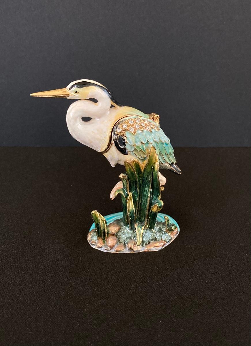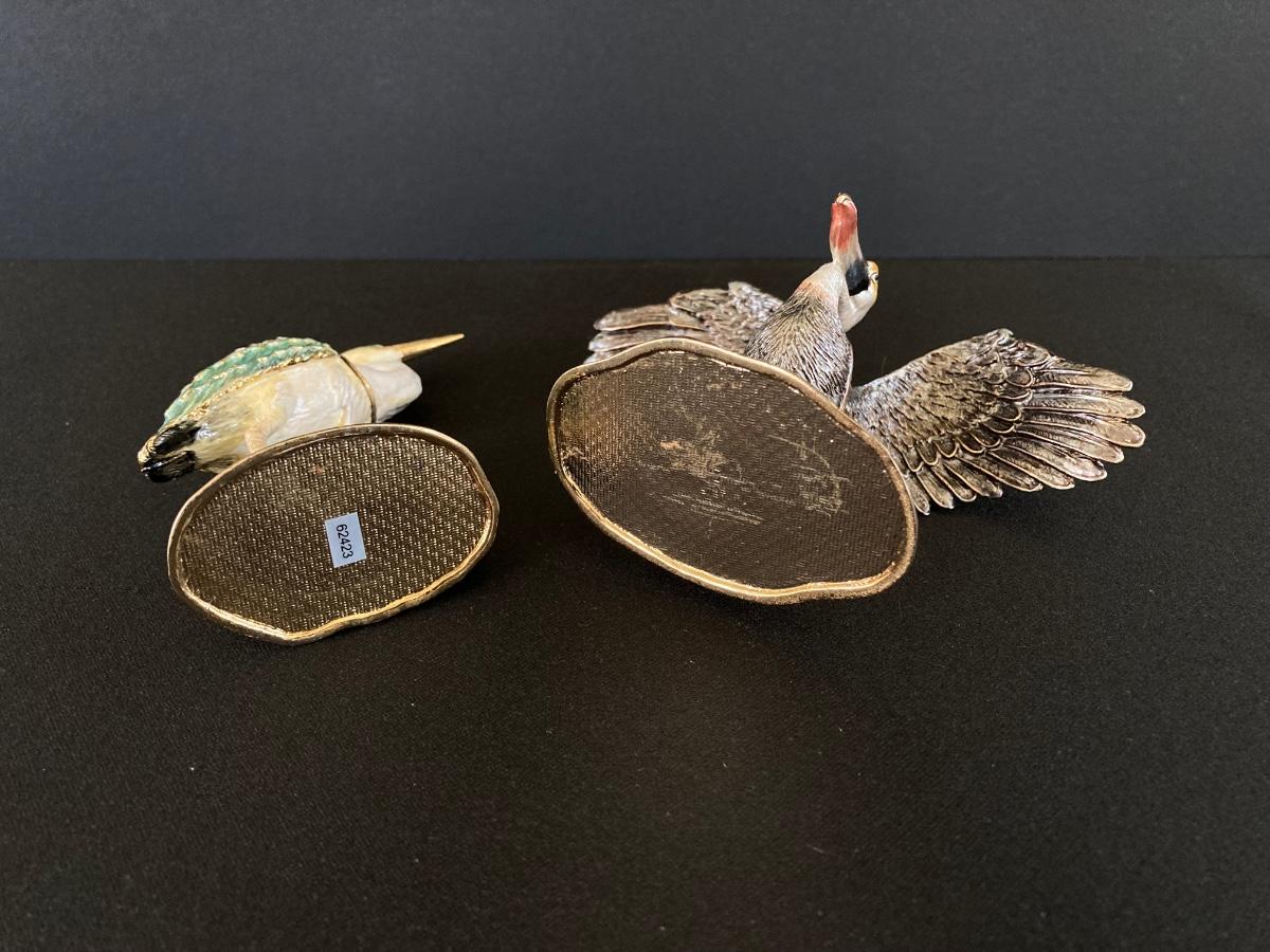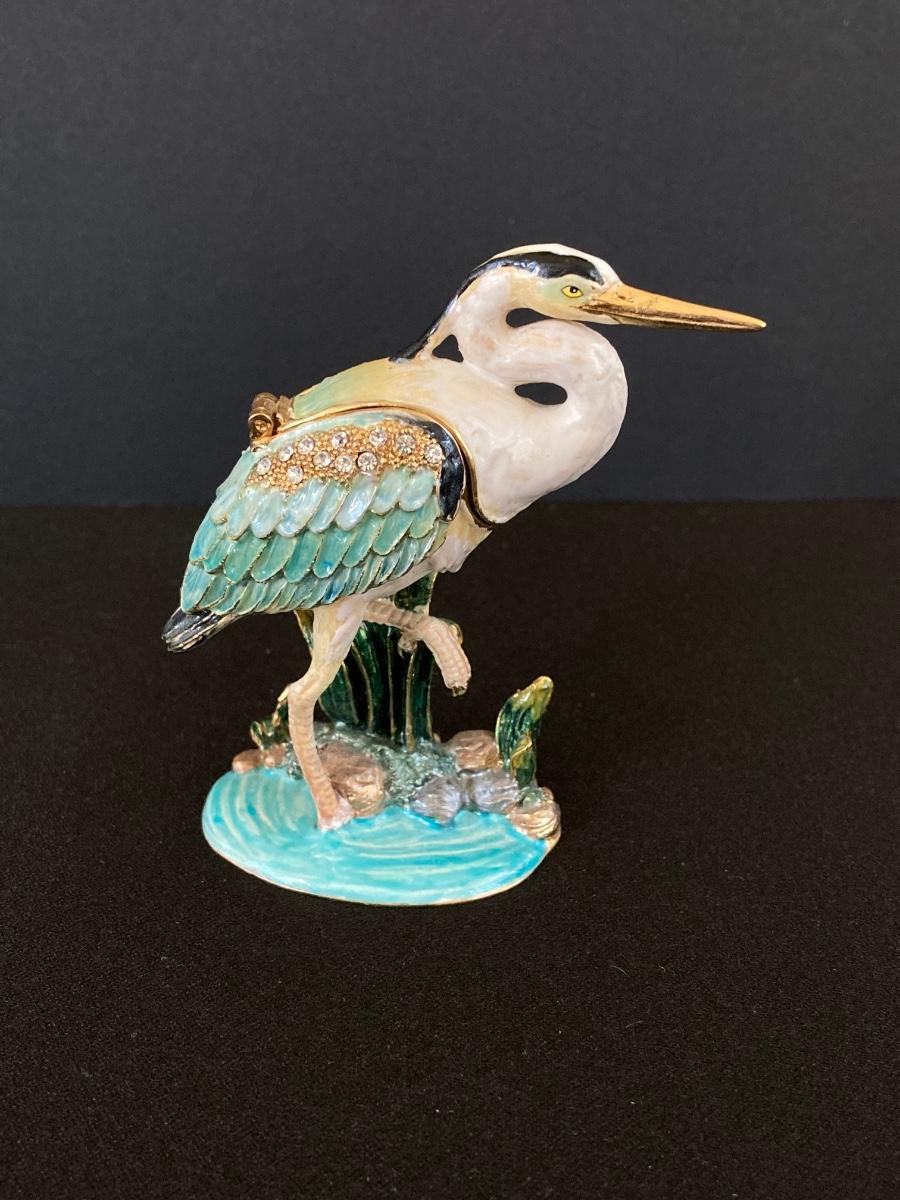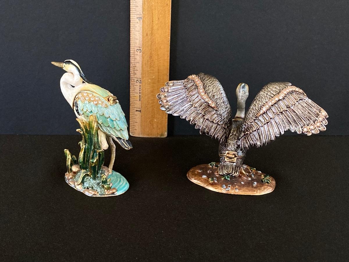 LOT 140: Tropical Bird Bejeweled Trinket Boxes - Pelican and White Heron with Matching Necklace