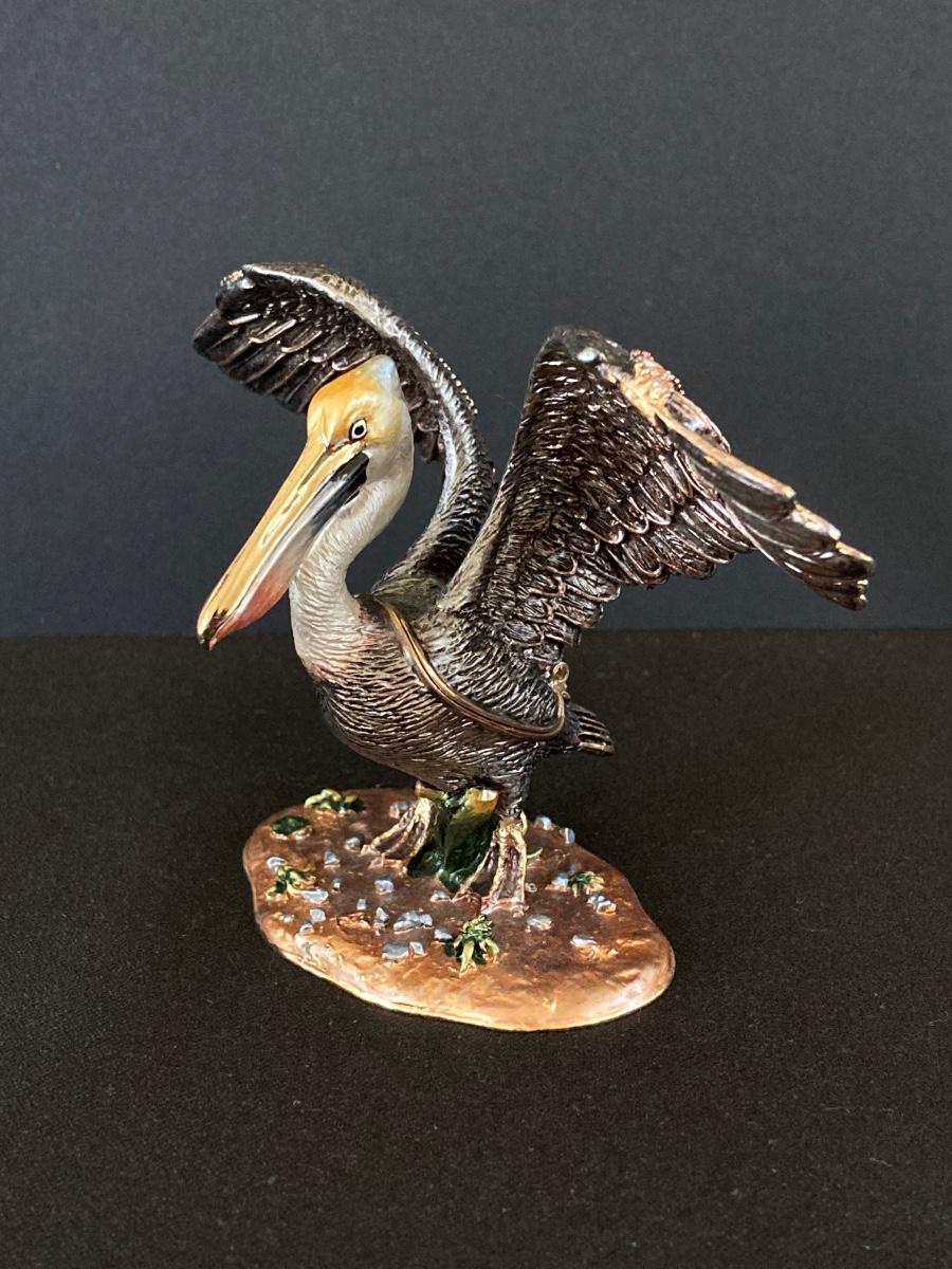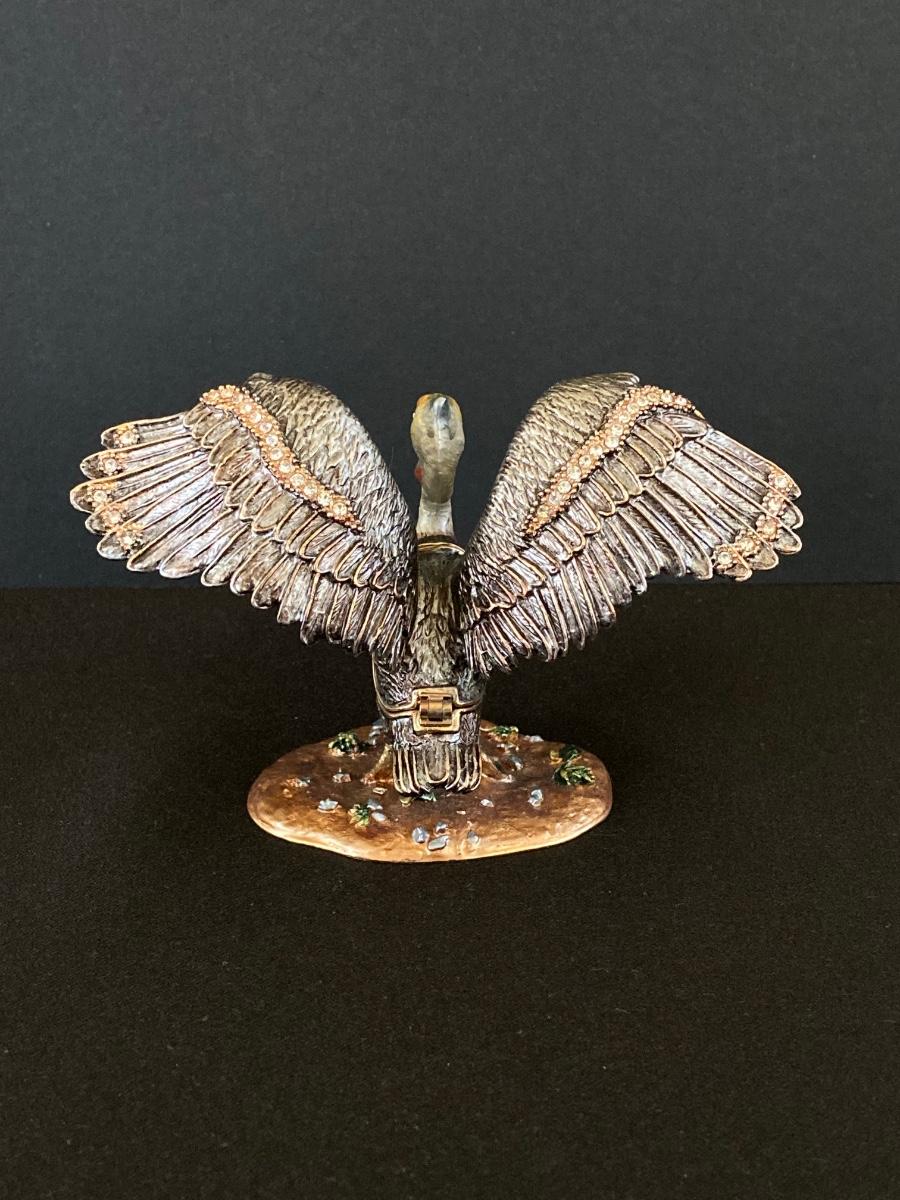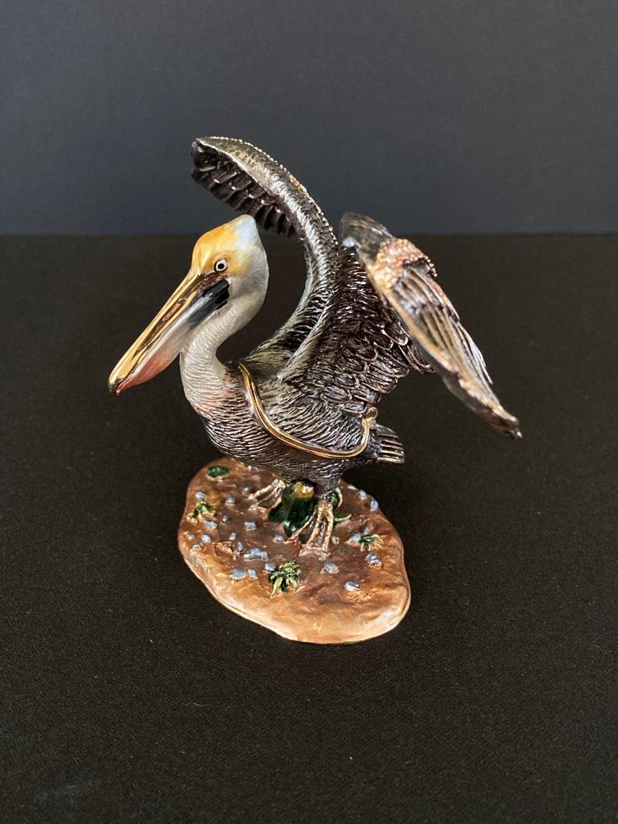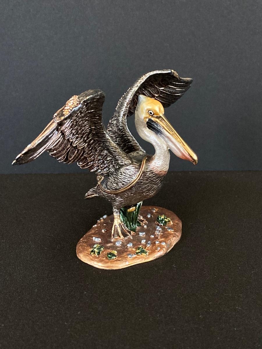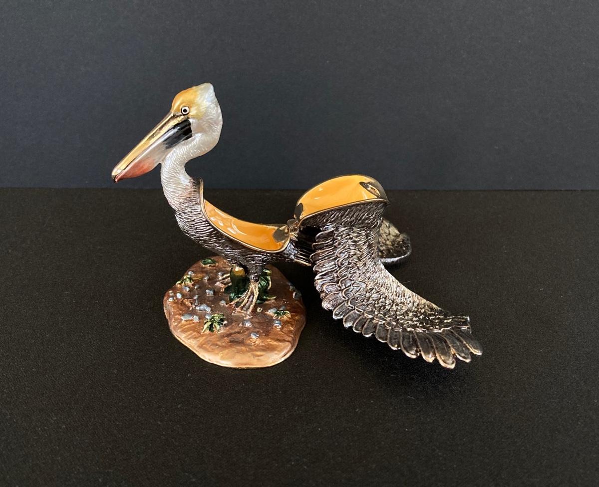 LOT 140: Tropical Bird Bejeweled Trinket Boxes - Pelican and White Heron with Matching Necklace