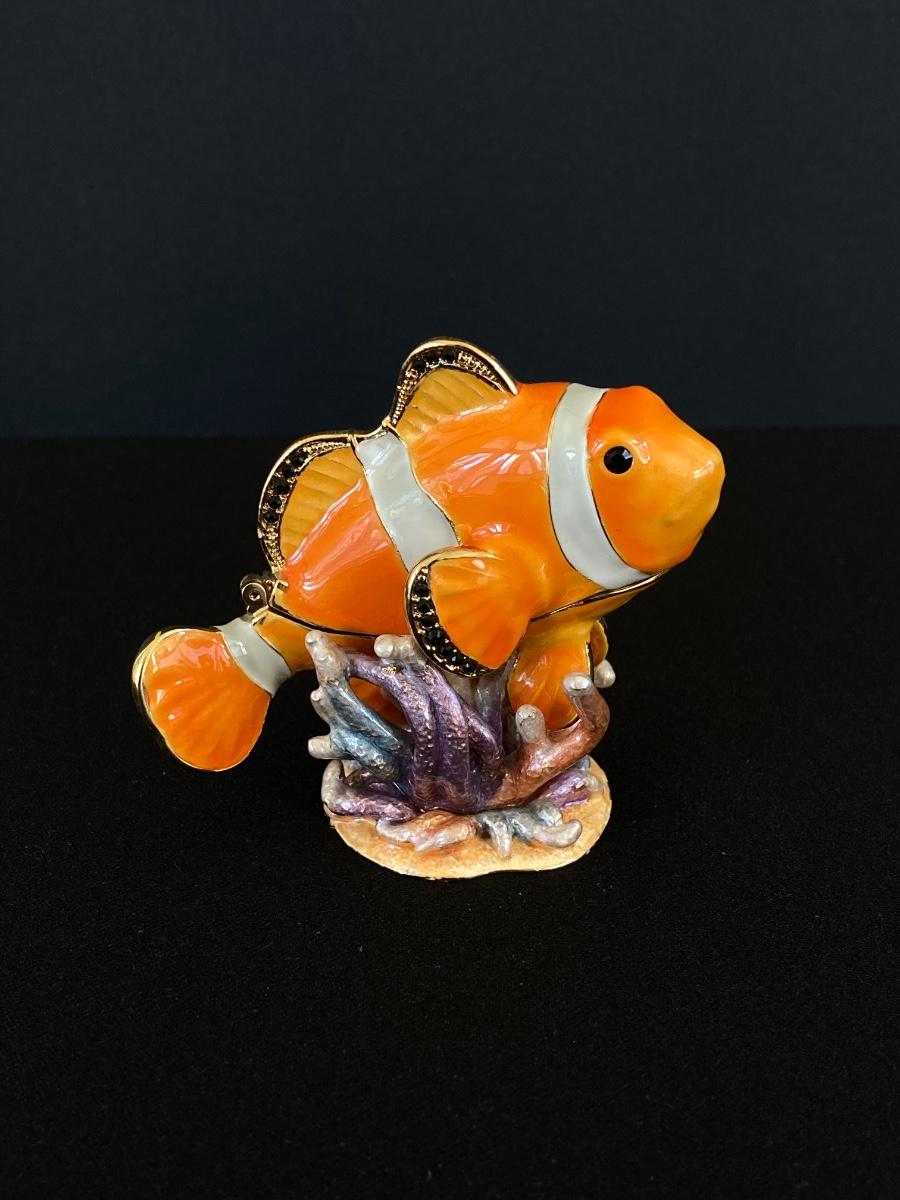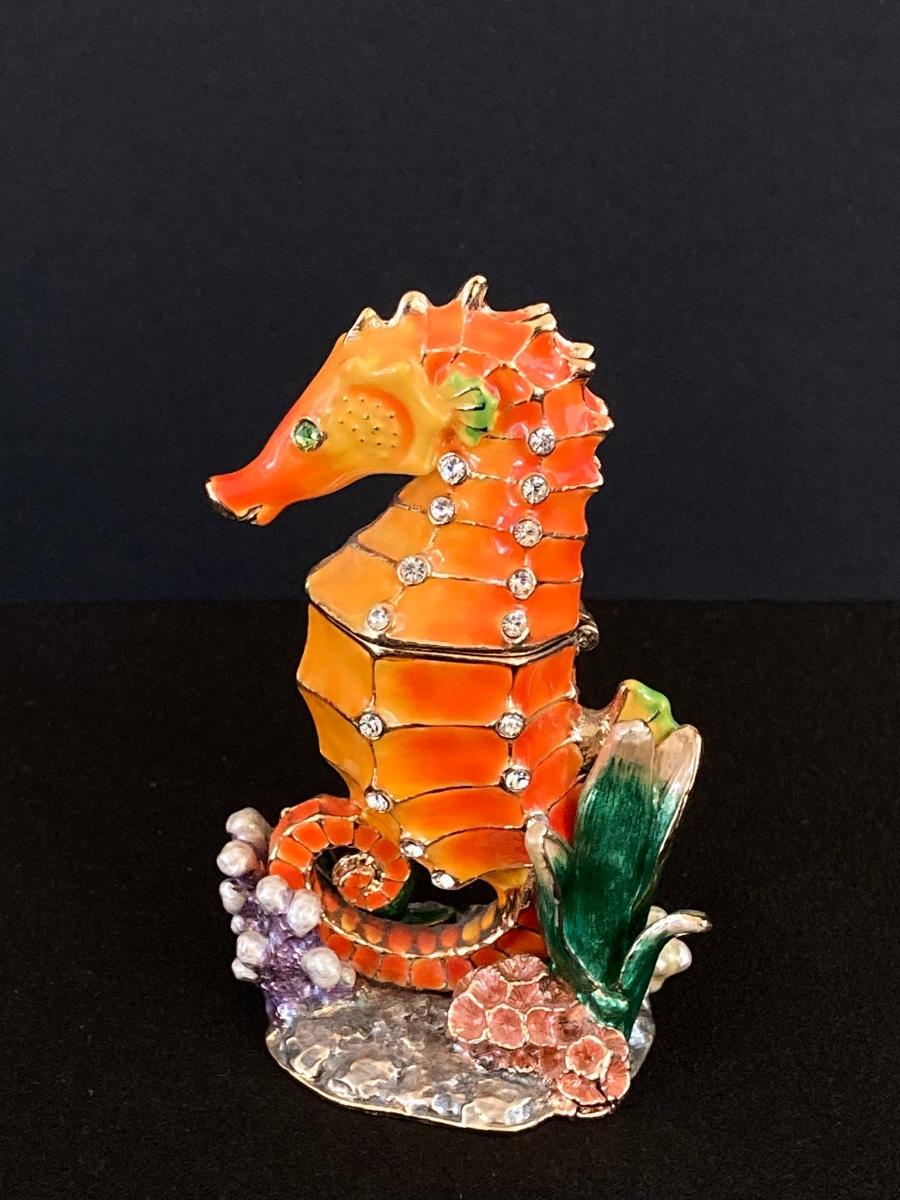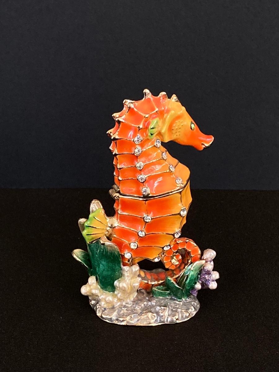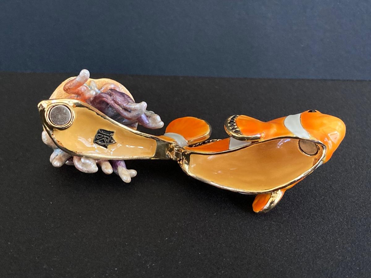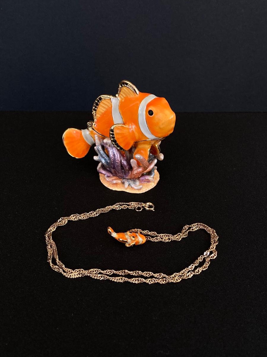 LOT 141: Bejeweled Hinged Trinket Boxes - Seahorse and Clownfish with Matching Necklace