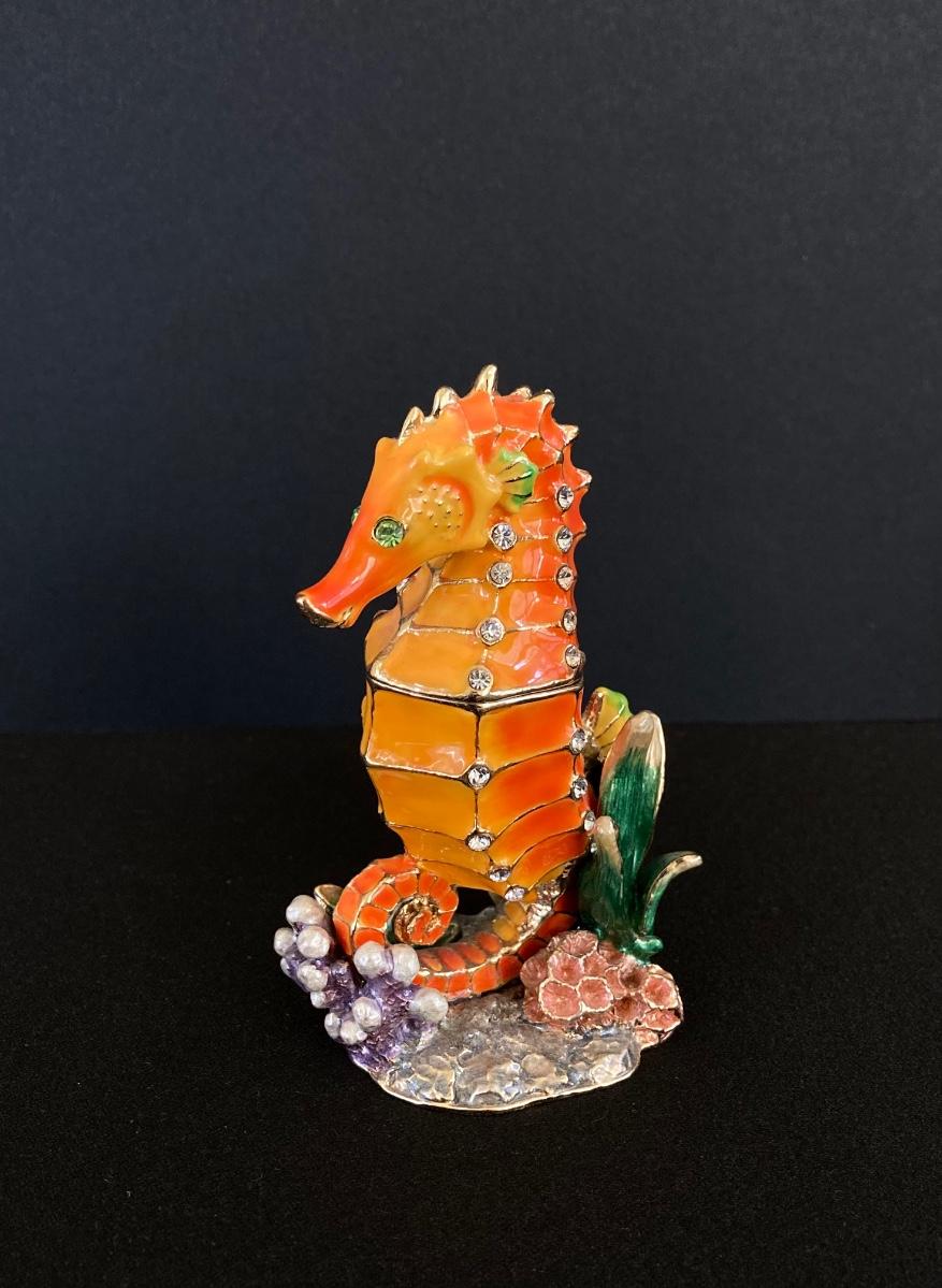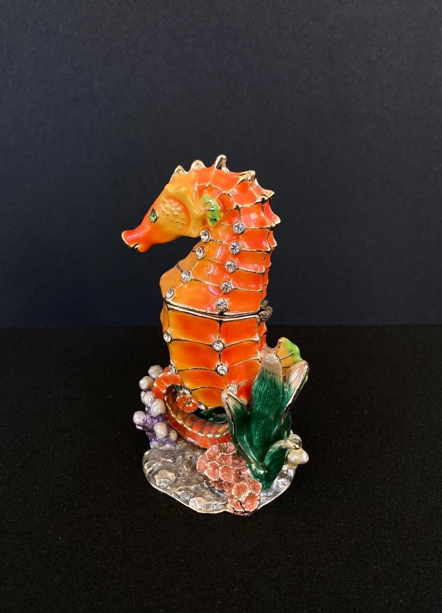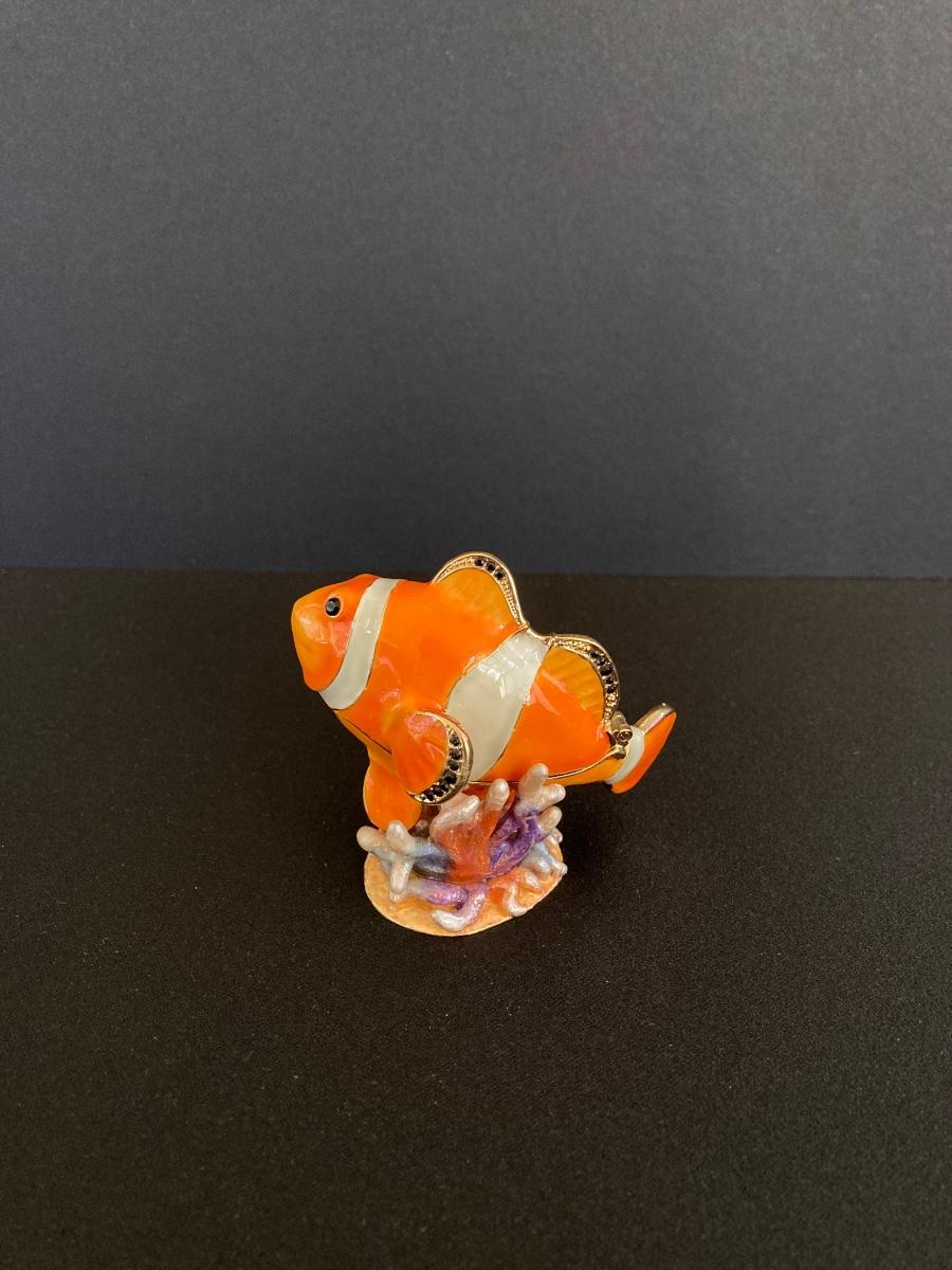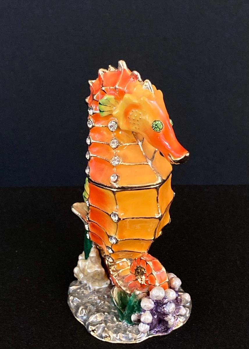 LOT 141: Bejeweled Hinged Trinket Boxes - Seahorse and Clownfish with Matching Necklace