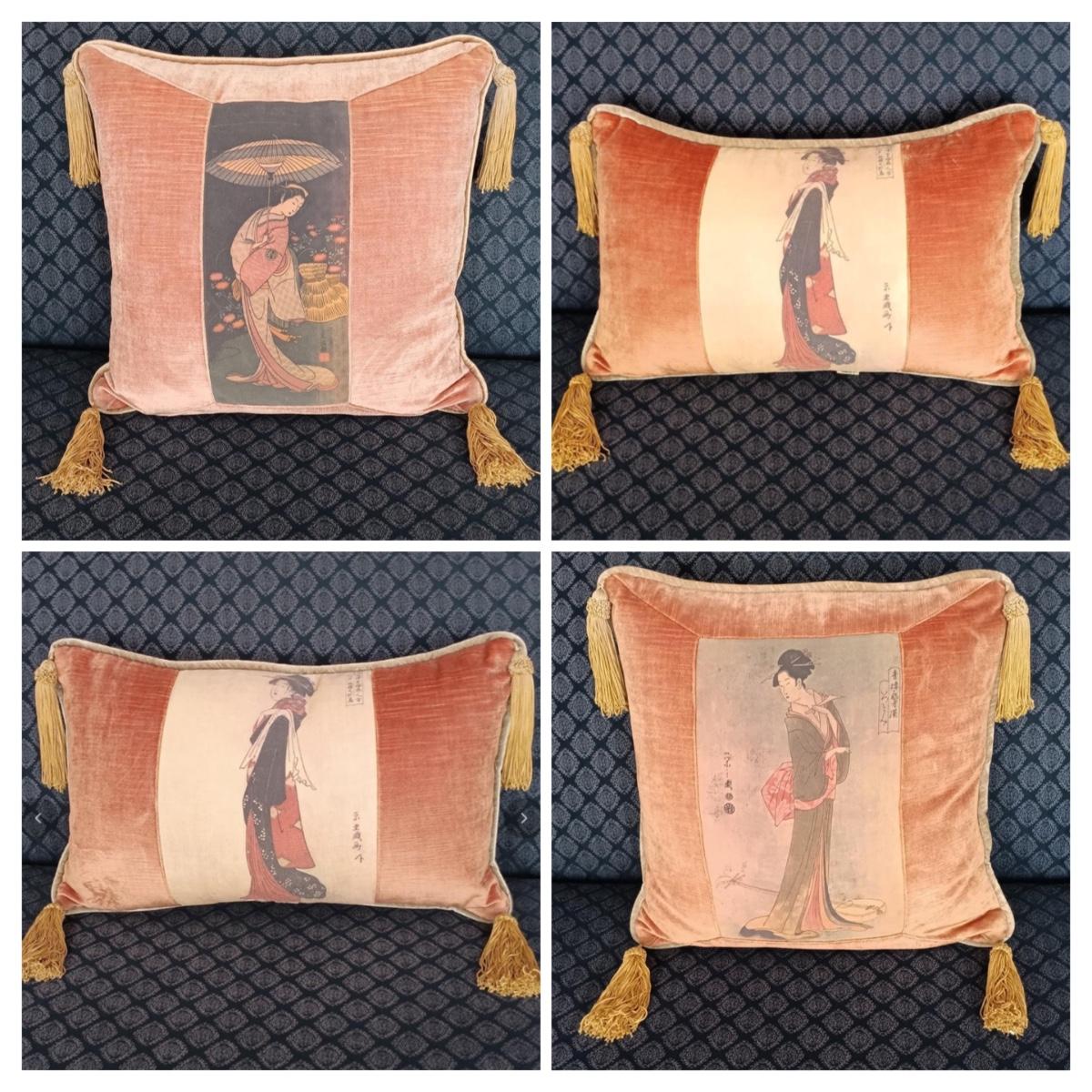 LOT 163: Set of 4 Rags Custom Furnishings Geisha Throw Pillows