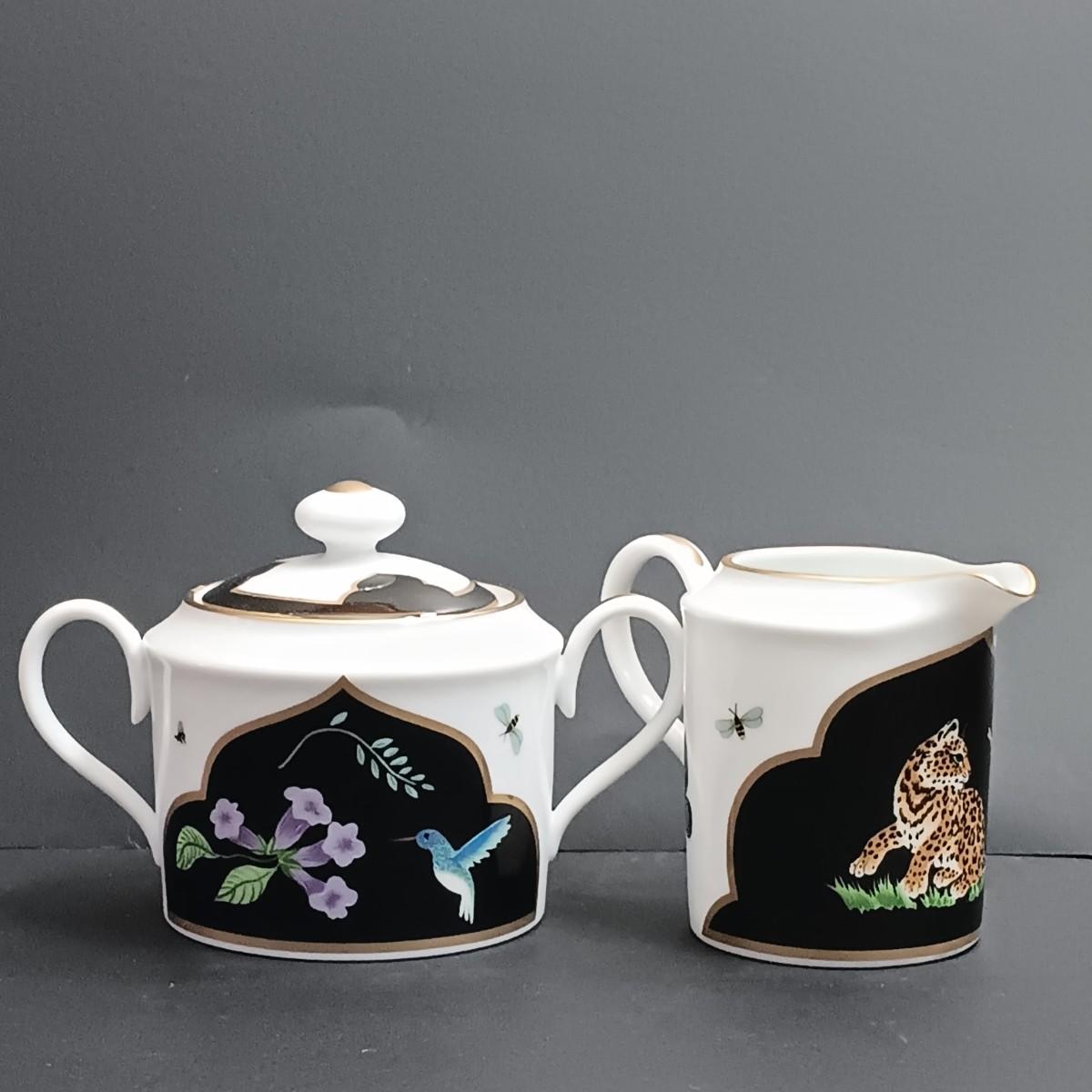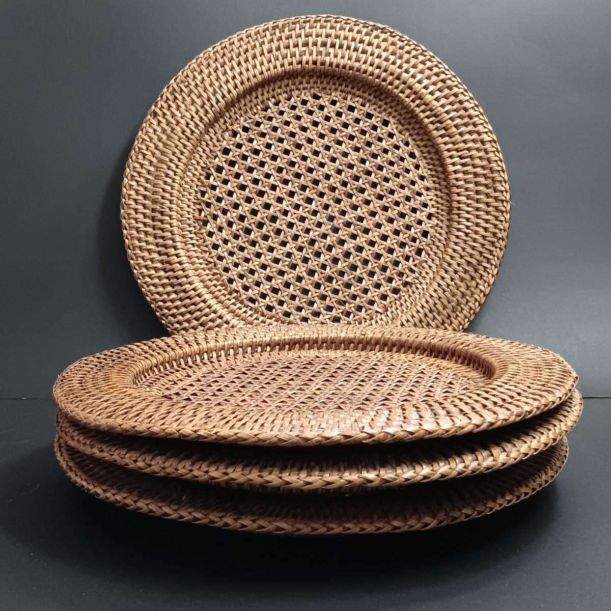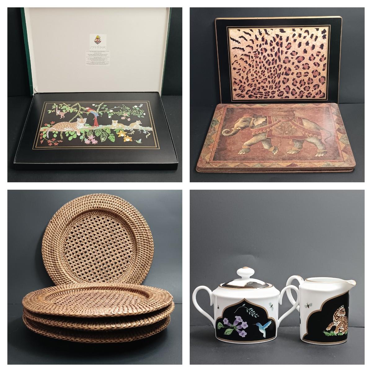 LOT 173K: Lynn Chase Sugar Bowl, Creamer & Placemats w/ Rattan Chargers & More