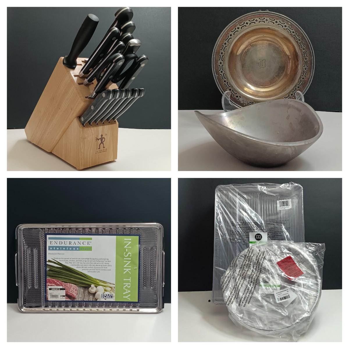 LOT 187: J.A. Henckels Knife Block Set, Nambe Butterfly Bowl, M Design Spice Rack and More