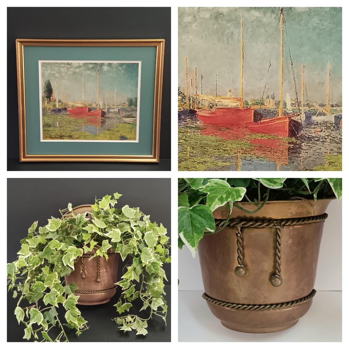 LOT 188: Framework LTD Monet Print with Brass Plant Holder