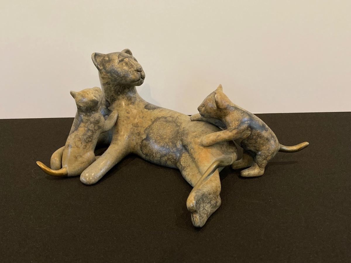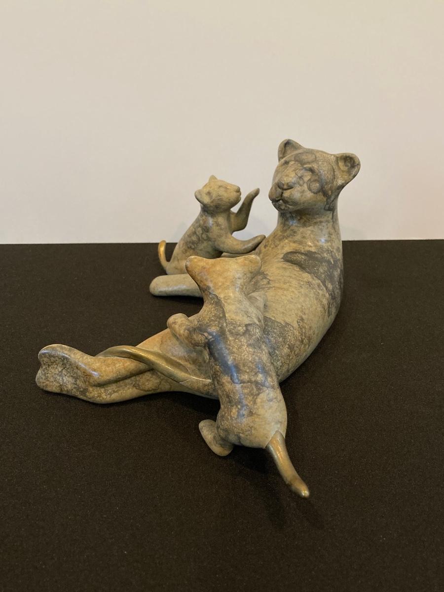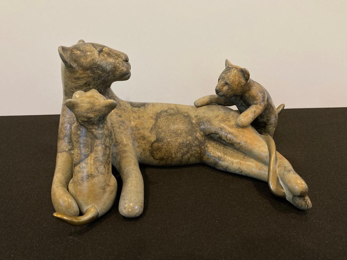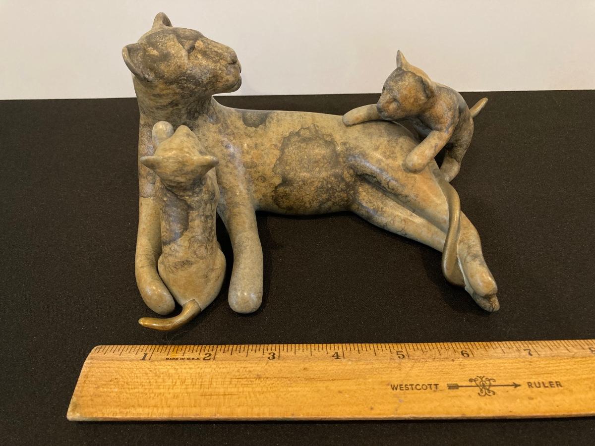 LOT 219: "Lioness and Babies Pride" Bronze / Brass Sculpture by Artist Loet Vanderveen Signed Limited Edition 86/1750