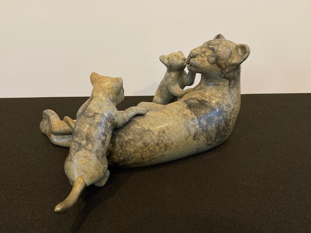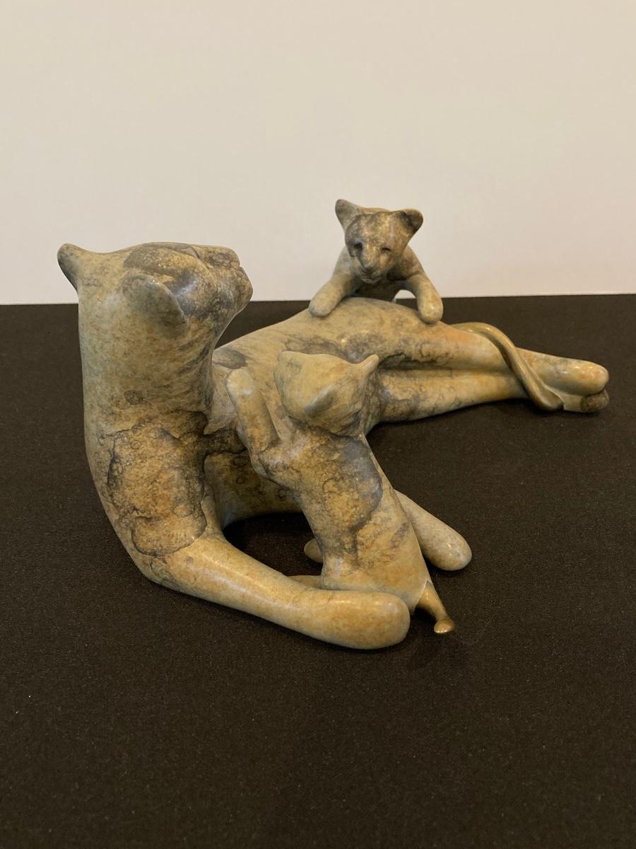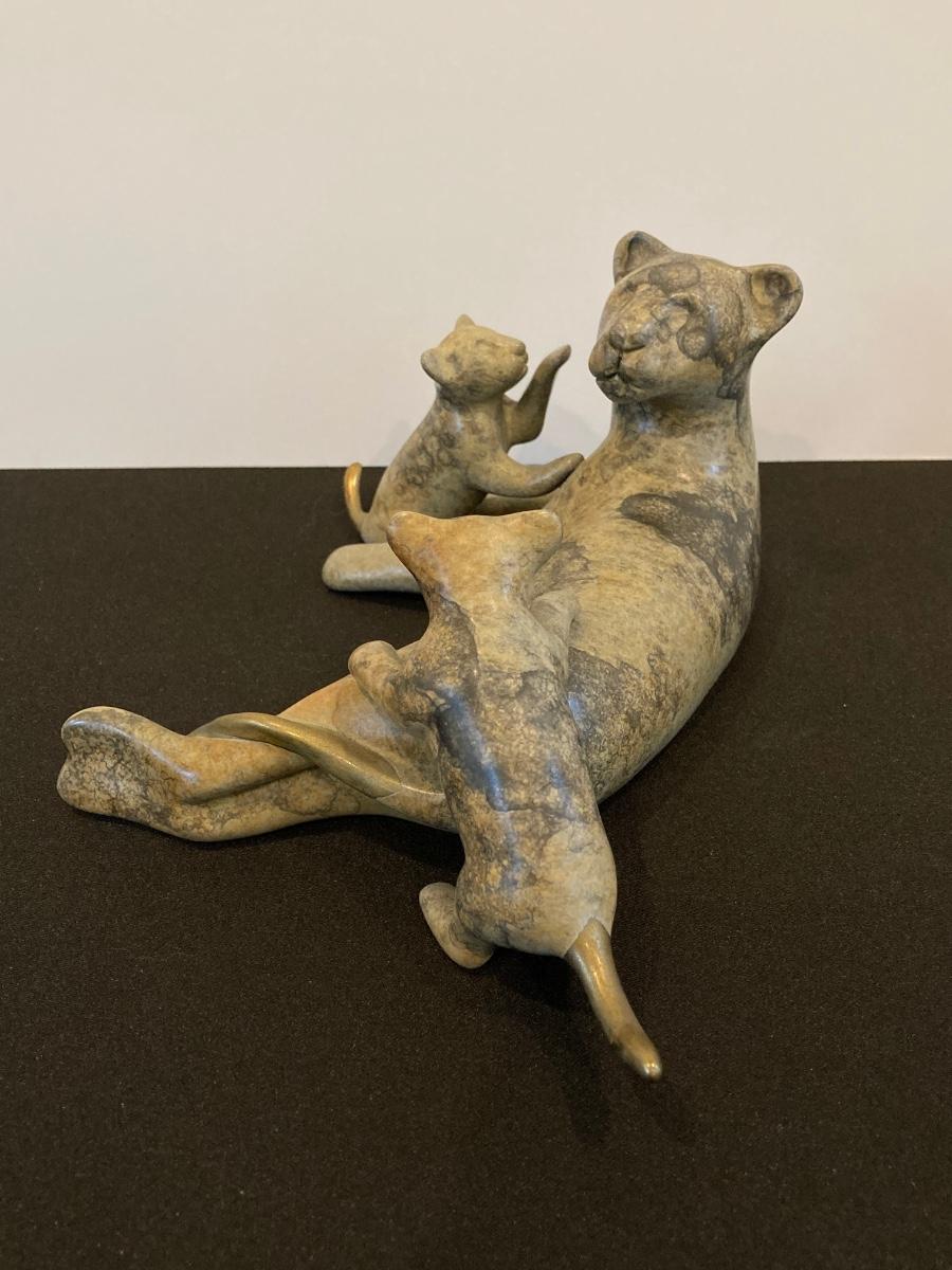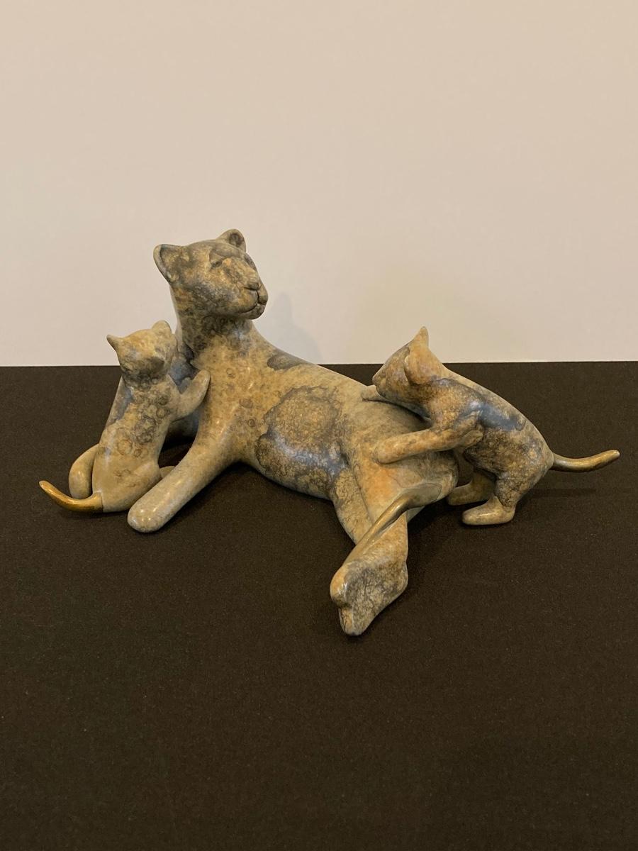 LOT 219: "Lioness and Babies Pride" Bronze / Brass Sculpture by Artist Loet Vanderveen Signed Limited Edition 86/1750