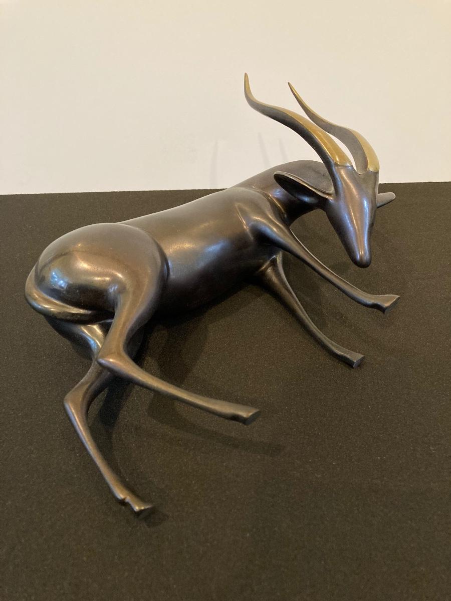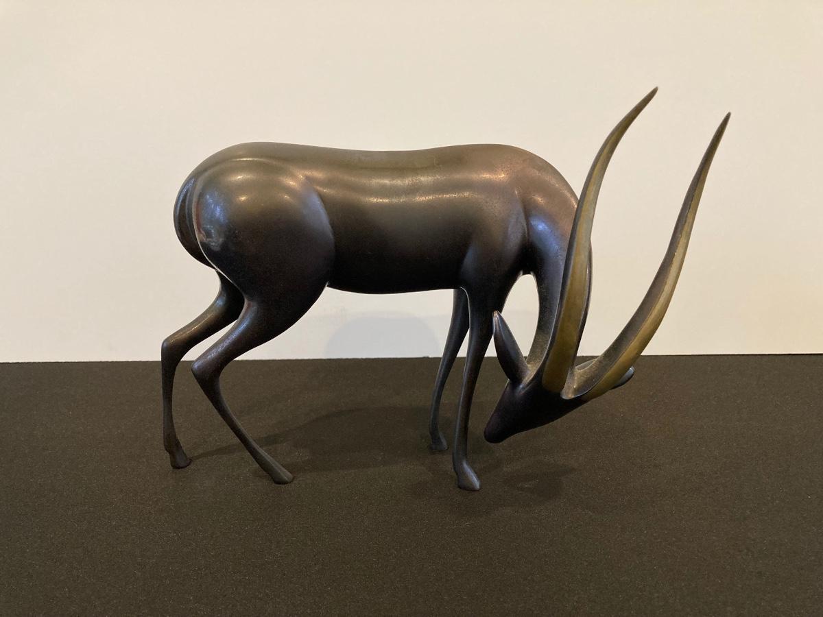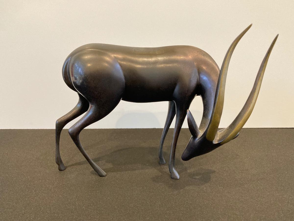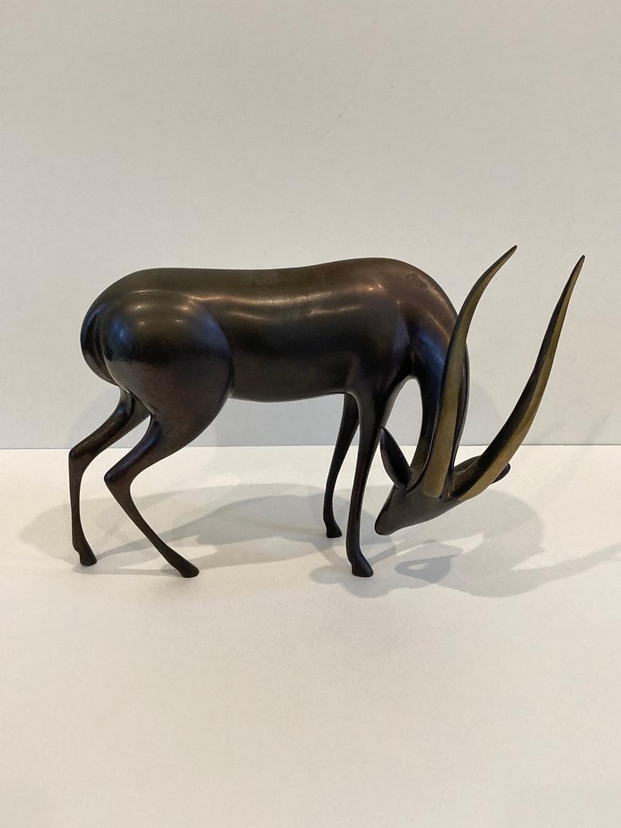 LOT 220: Antelope Bronze / Brass Sculpture by Artist Loet Vanderveen, Signed Limited Edition 258/750