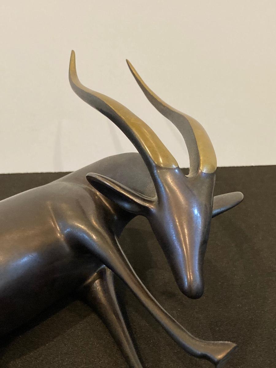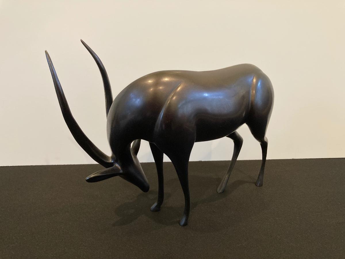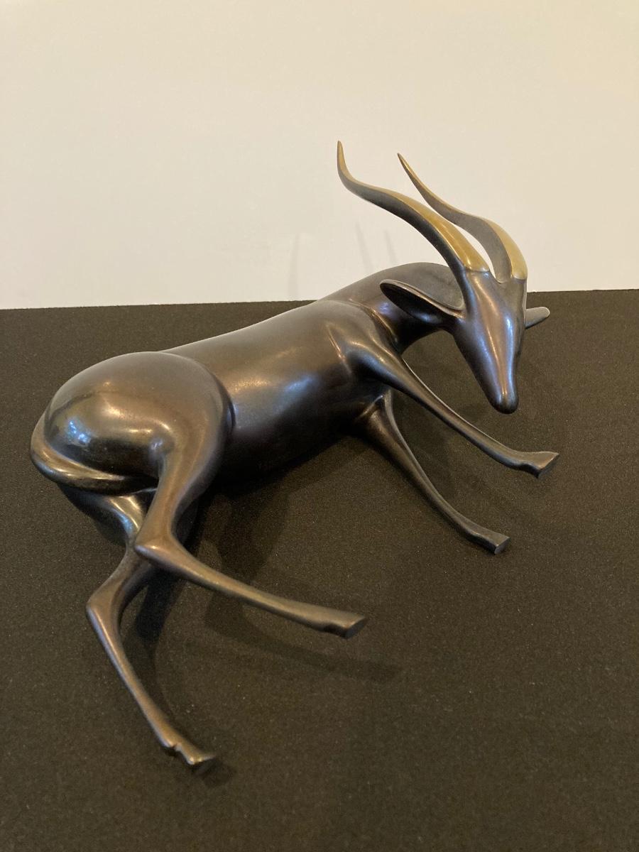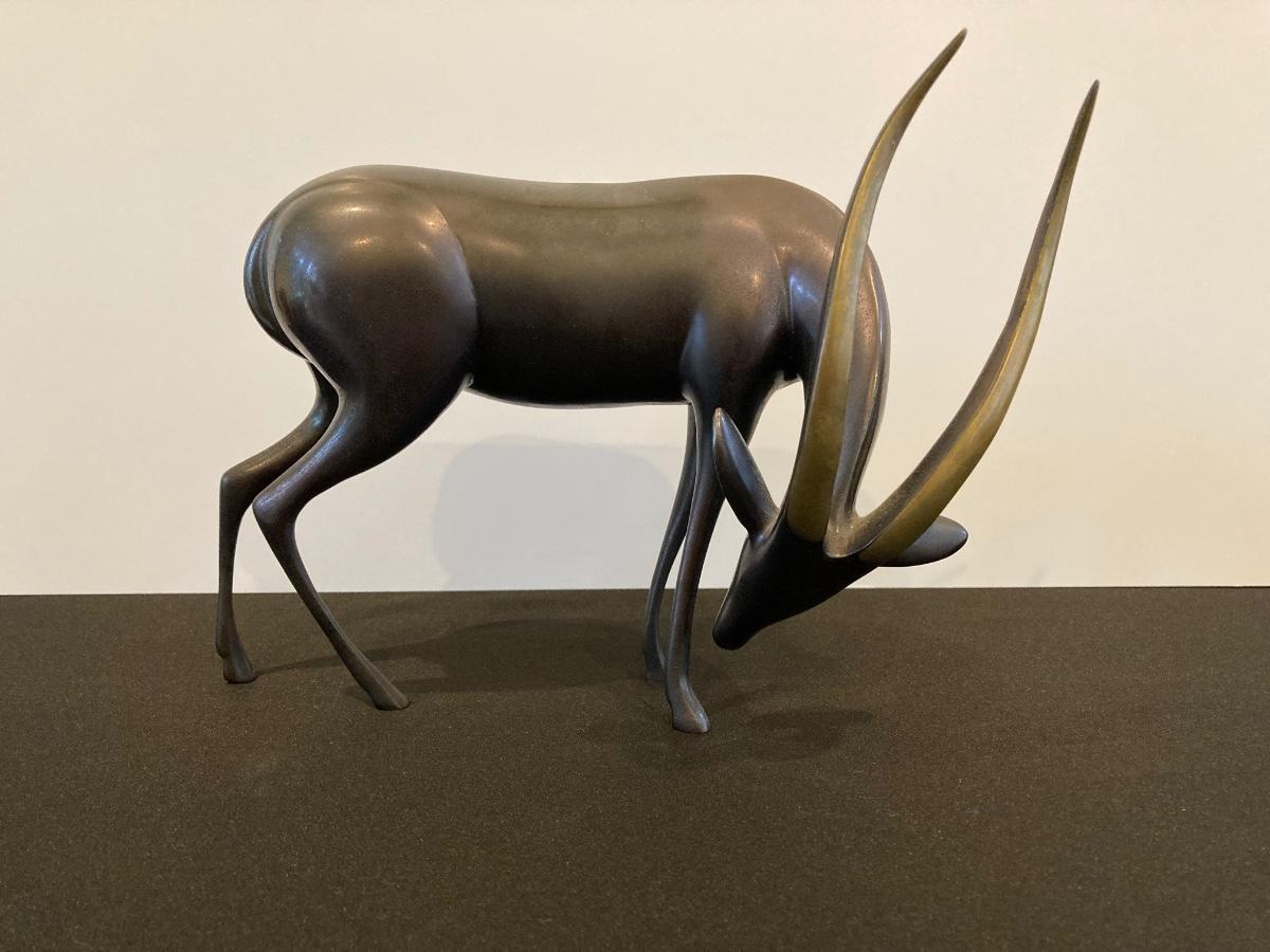 LOT 220: Antelope Bronze / Brass Sculpture by Artist Loet Vanderveen, Signed Limited Edition 258/750