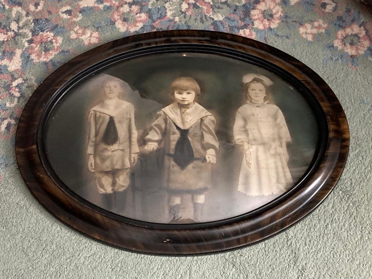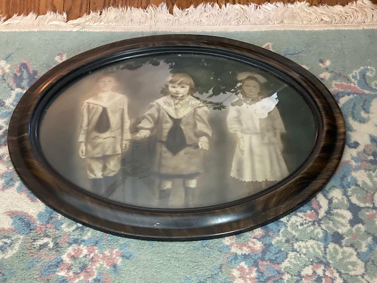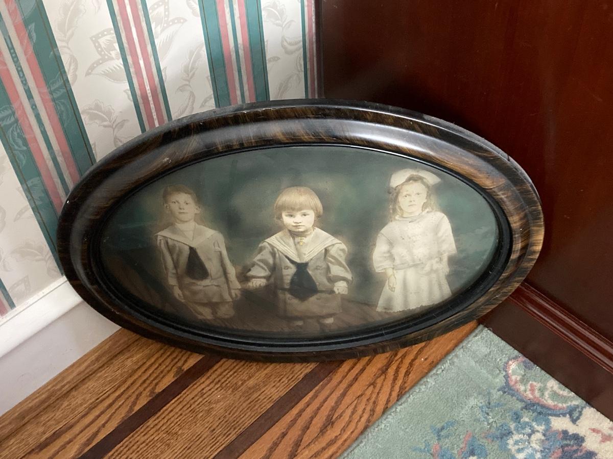 LOT 235: Antique / Vintage Tinted Family Portrait with Ornate Oval Frame