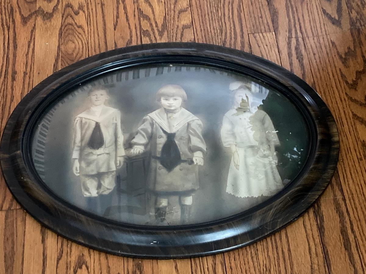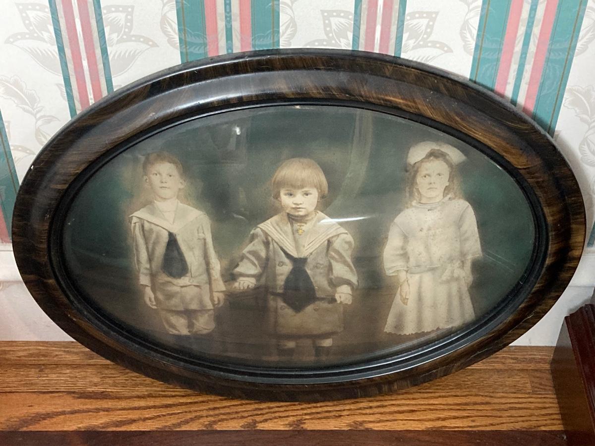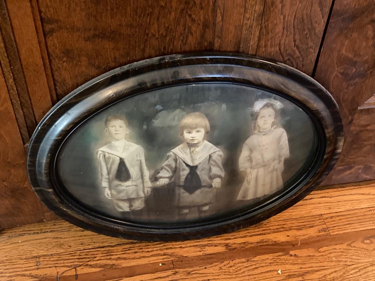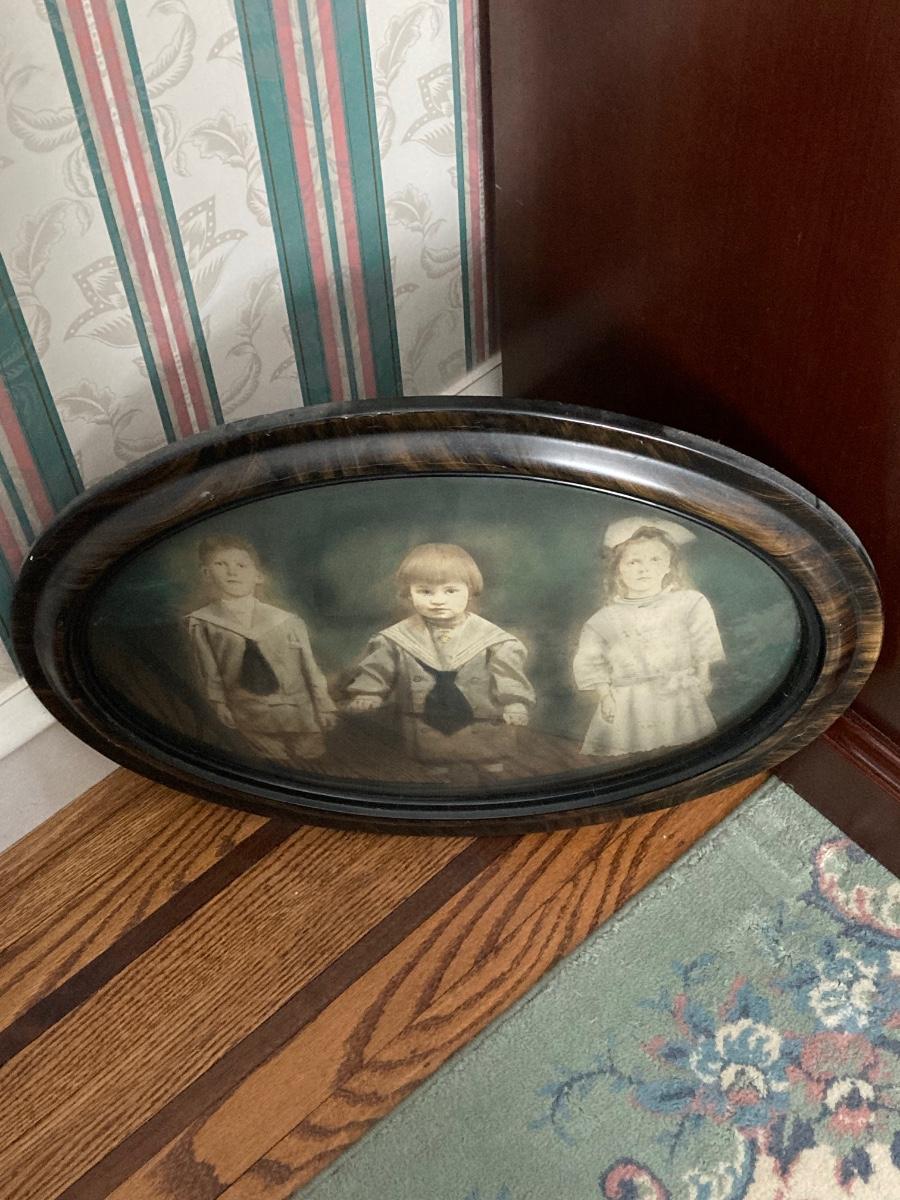 LOT 235: Antique / Vintage Tinted Family Portrait with Ornate Oval Frame