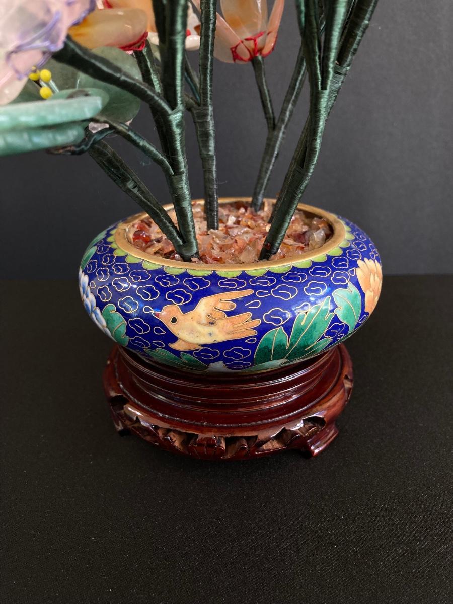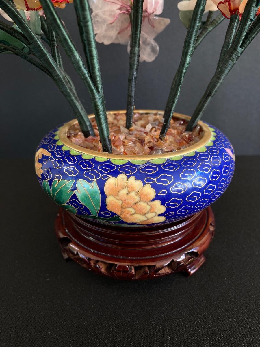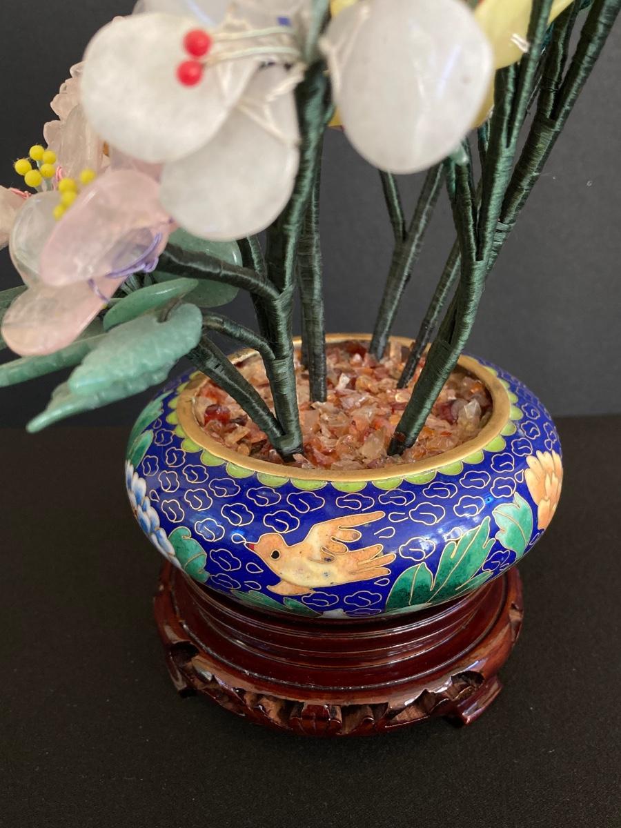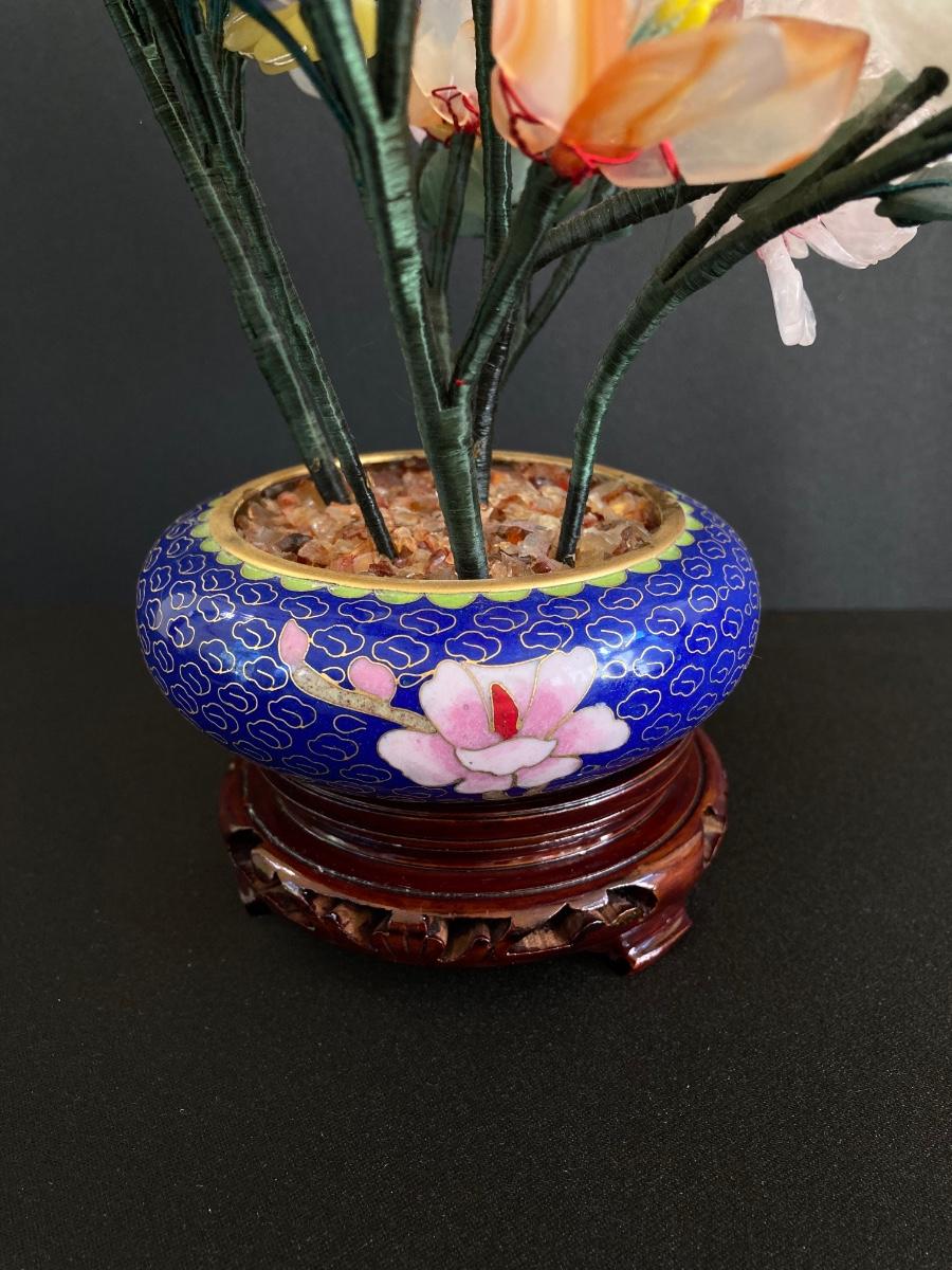 LOT 237: Vintage Quartz Stone Flowers in a Cloisonne Flower Pot