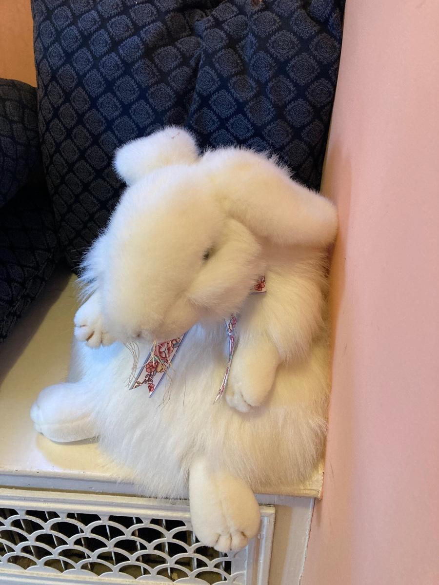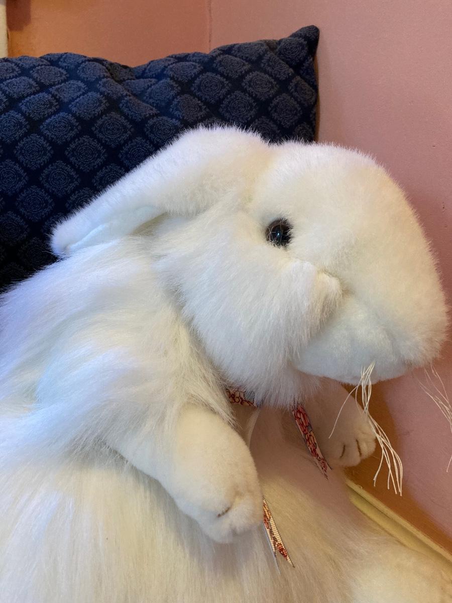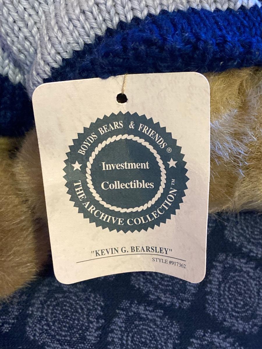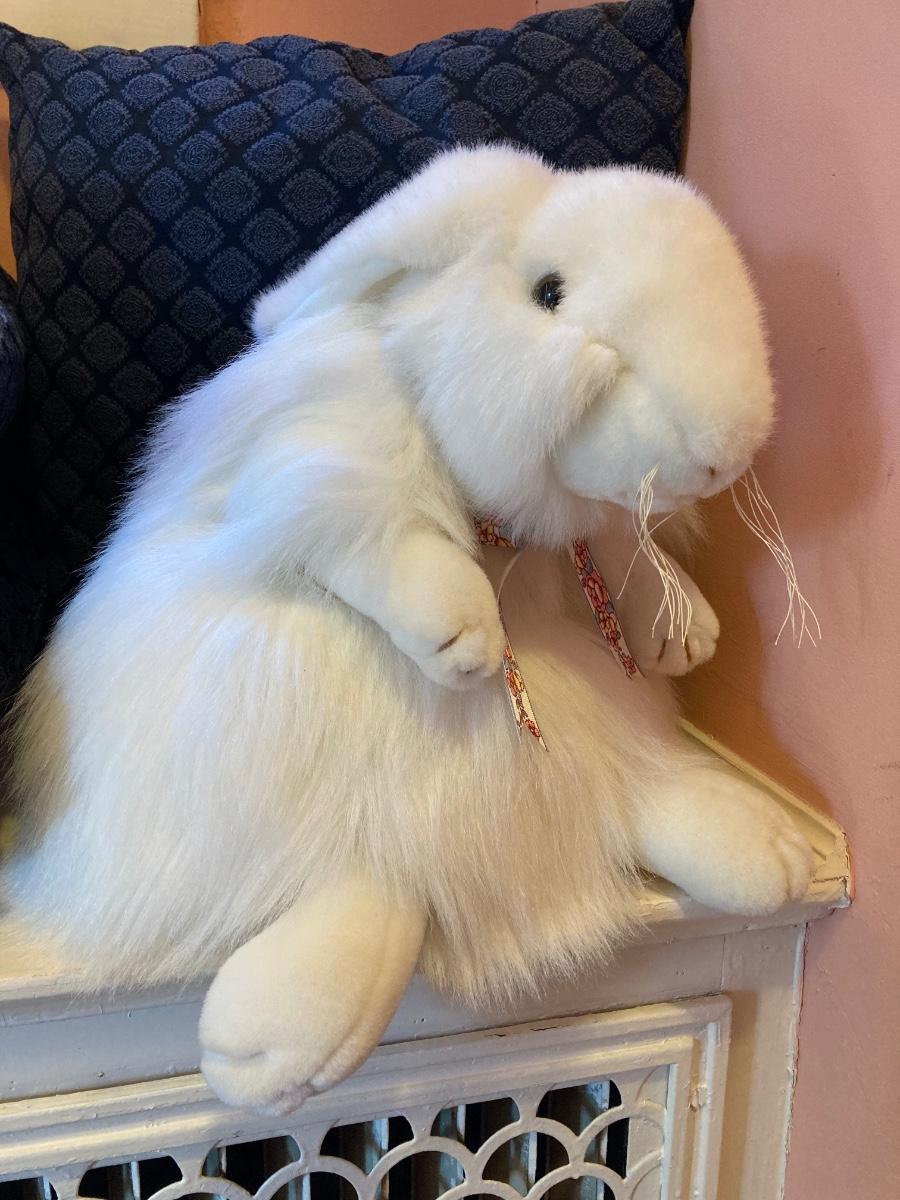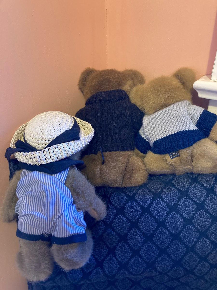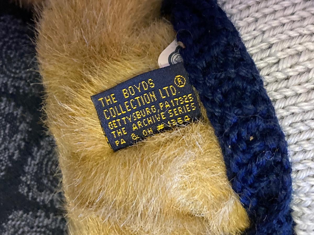 LOT 238: Boyd's Teddy Bears, Mary Meyer Bunny Rabbit, Cozy Sleeping Cat Figurine with Collection of Blue Accent Pillows