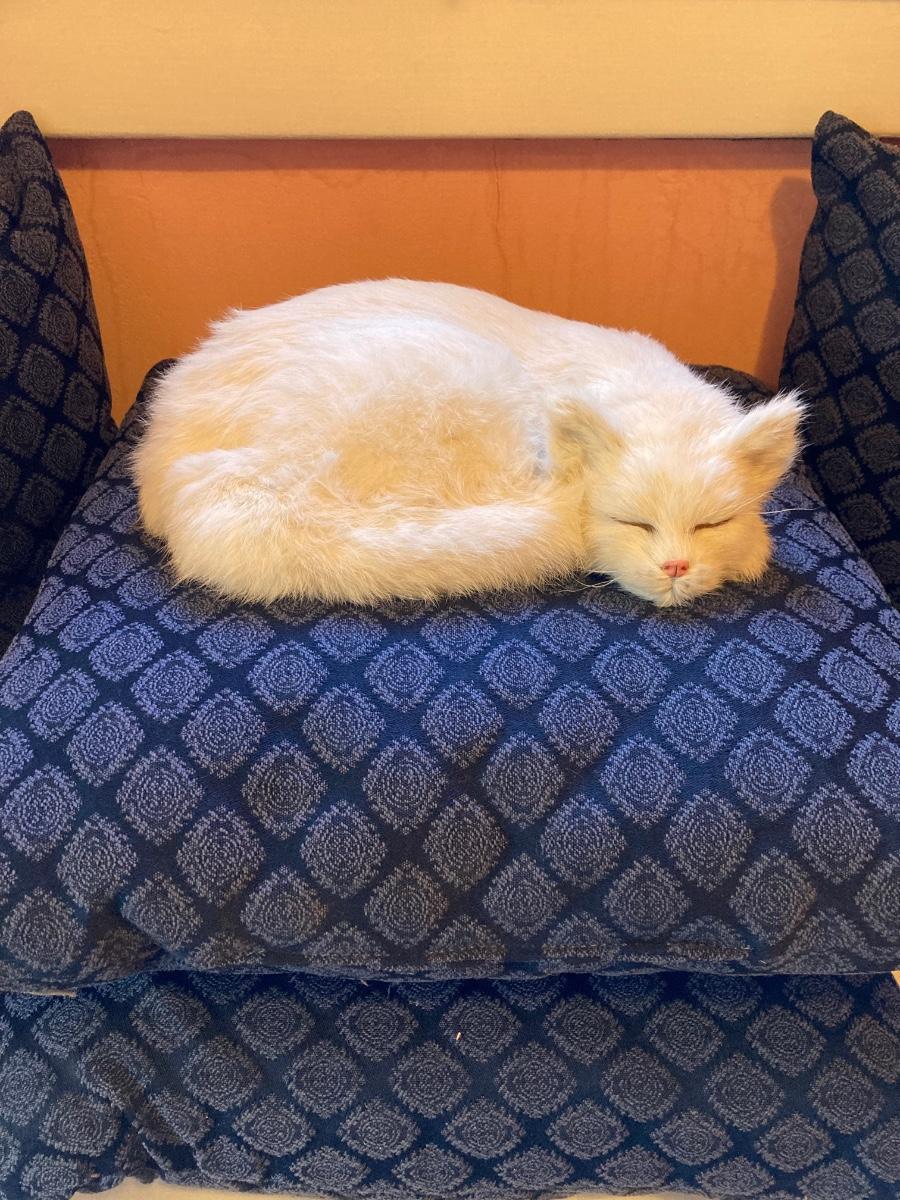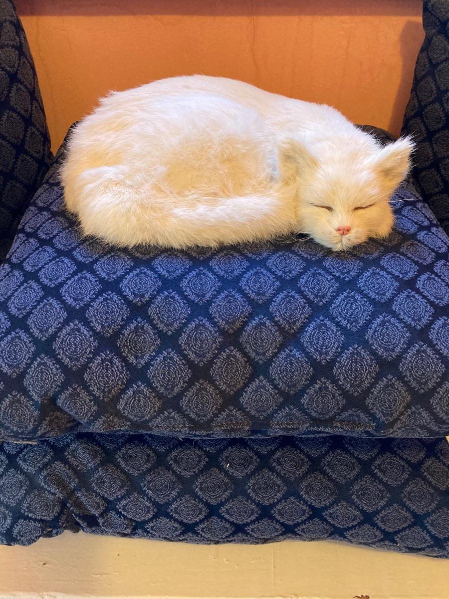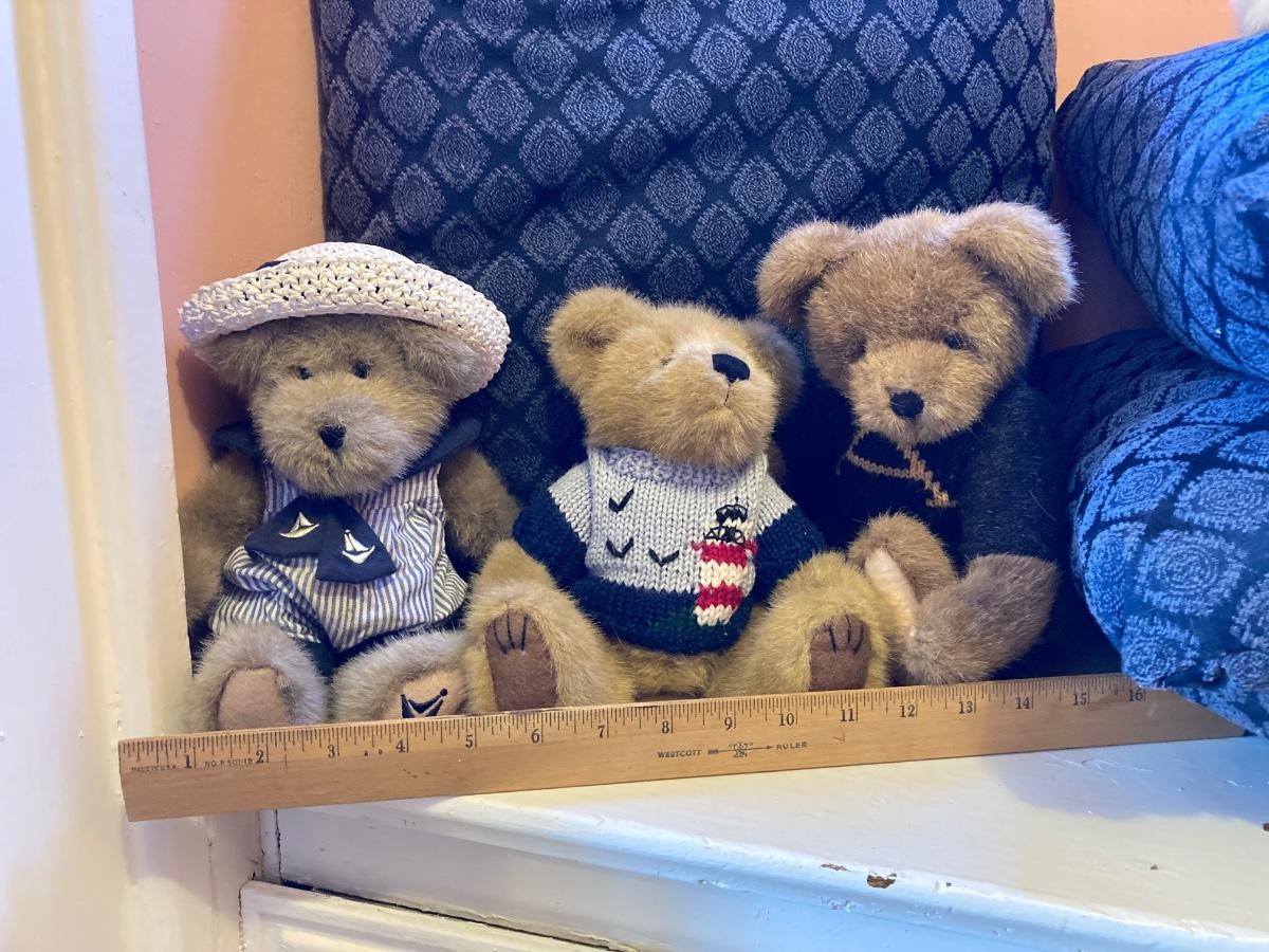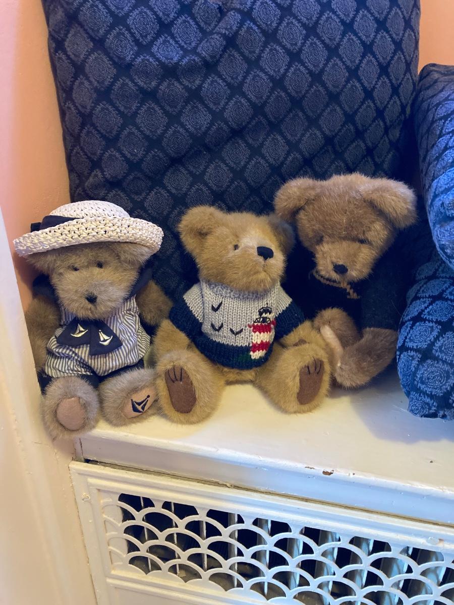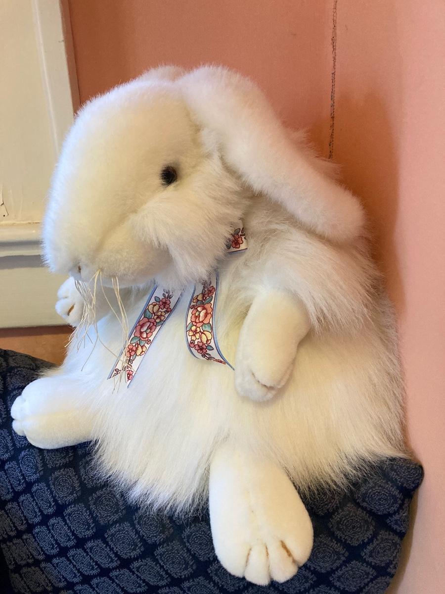 LOT 238: Boyd's Teddy Bears, Mary Meyer Bunny Rabbit, Cozy Sleeping Cat Figurine with Collection of Blue Accent Pillows