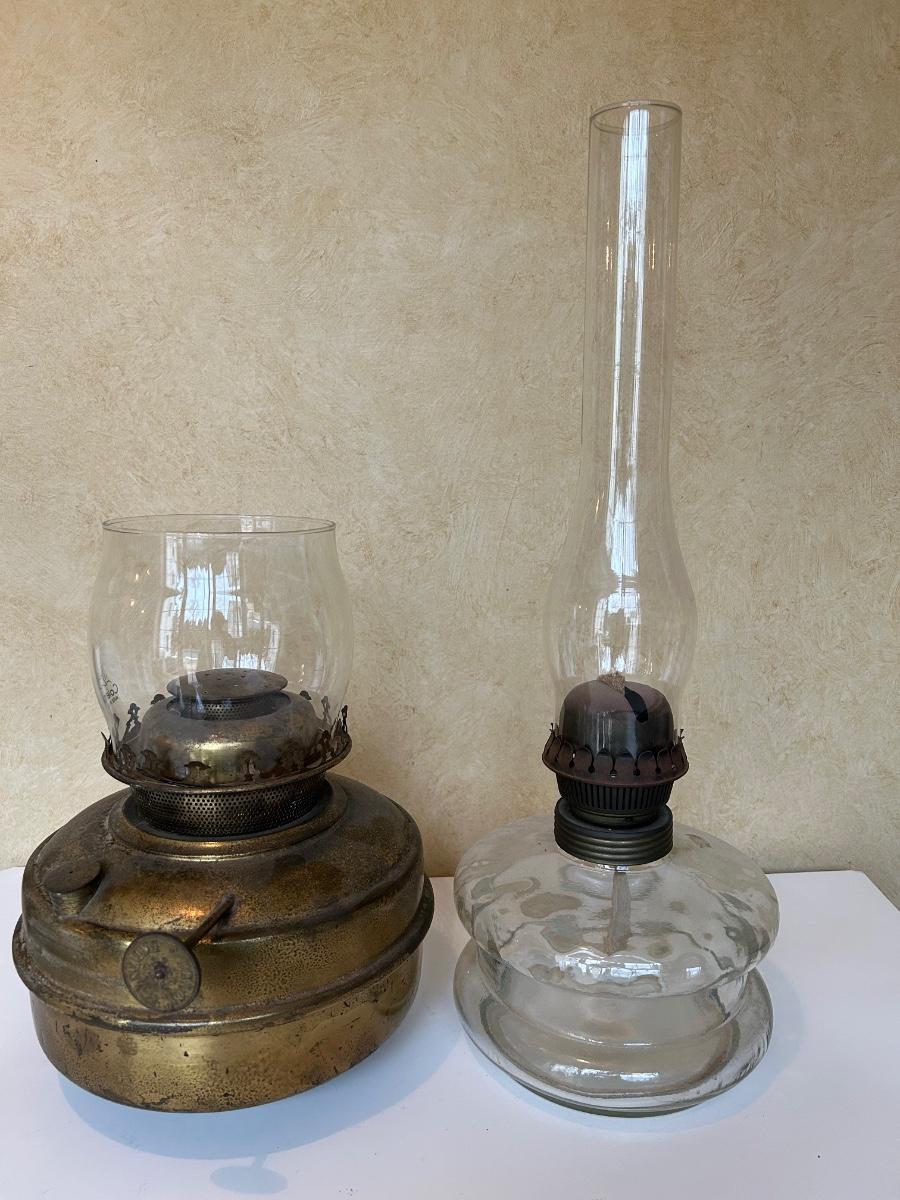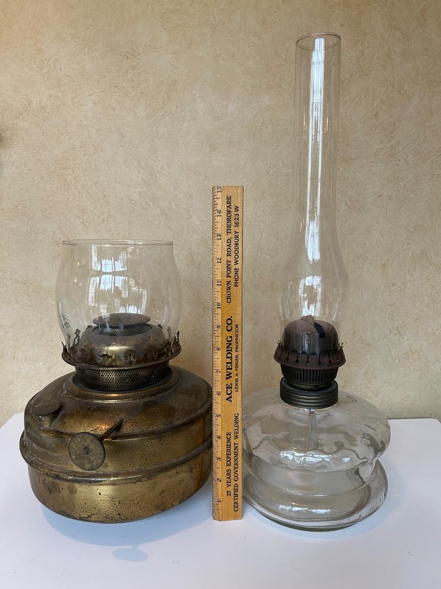 LOT 246B: Hurricane Lamps - One Glass Lamp - One Brass Lamp
