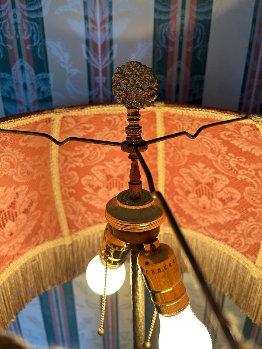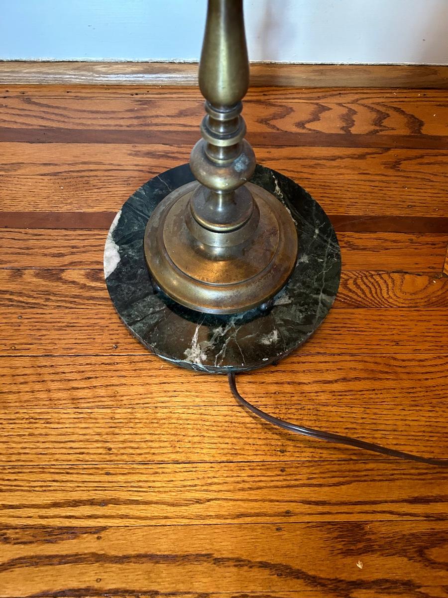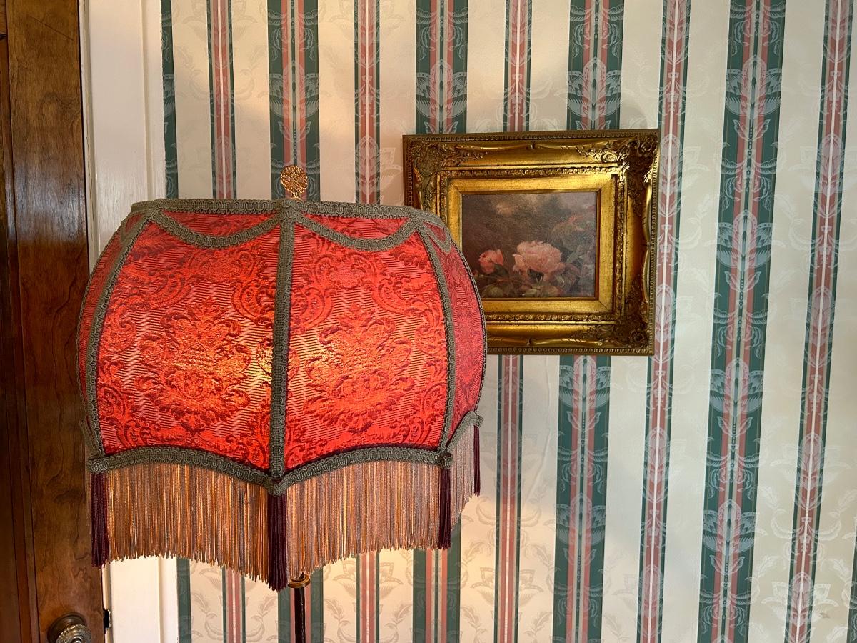 LOT 263: Marble Base Floor Lamp w/Fringed Lamp Shade, Floral Prints