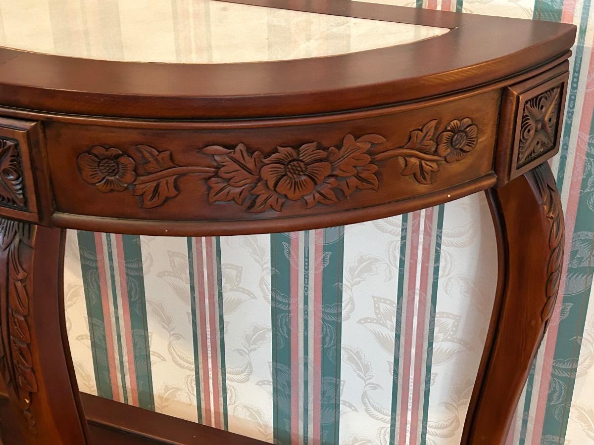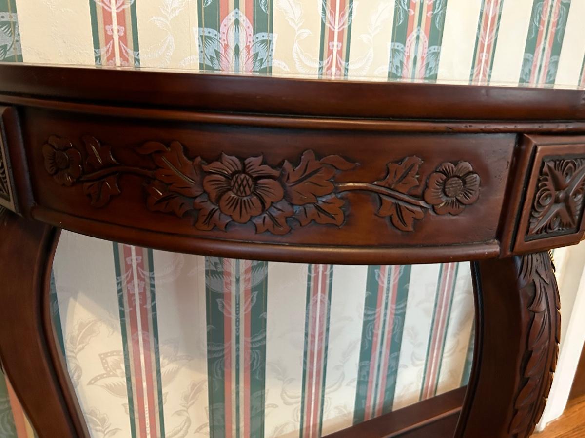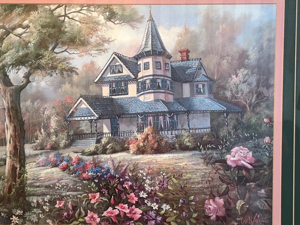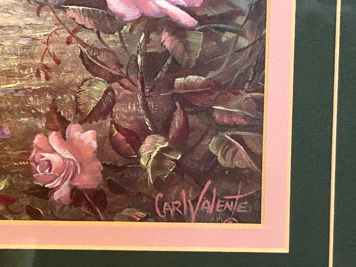LOT 266BR: Wood Table With Marble Top And Framed Print Entitled “The Misty Rose”