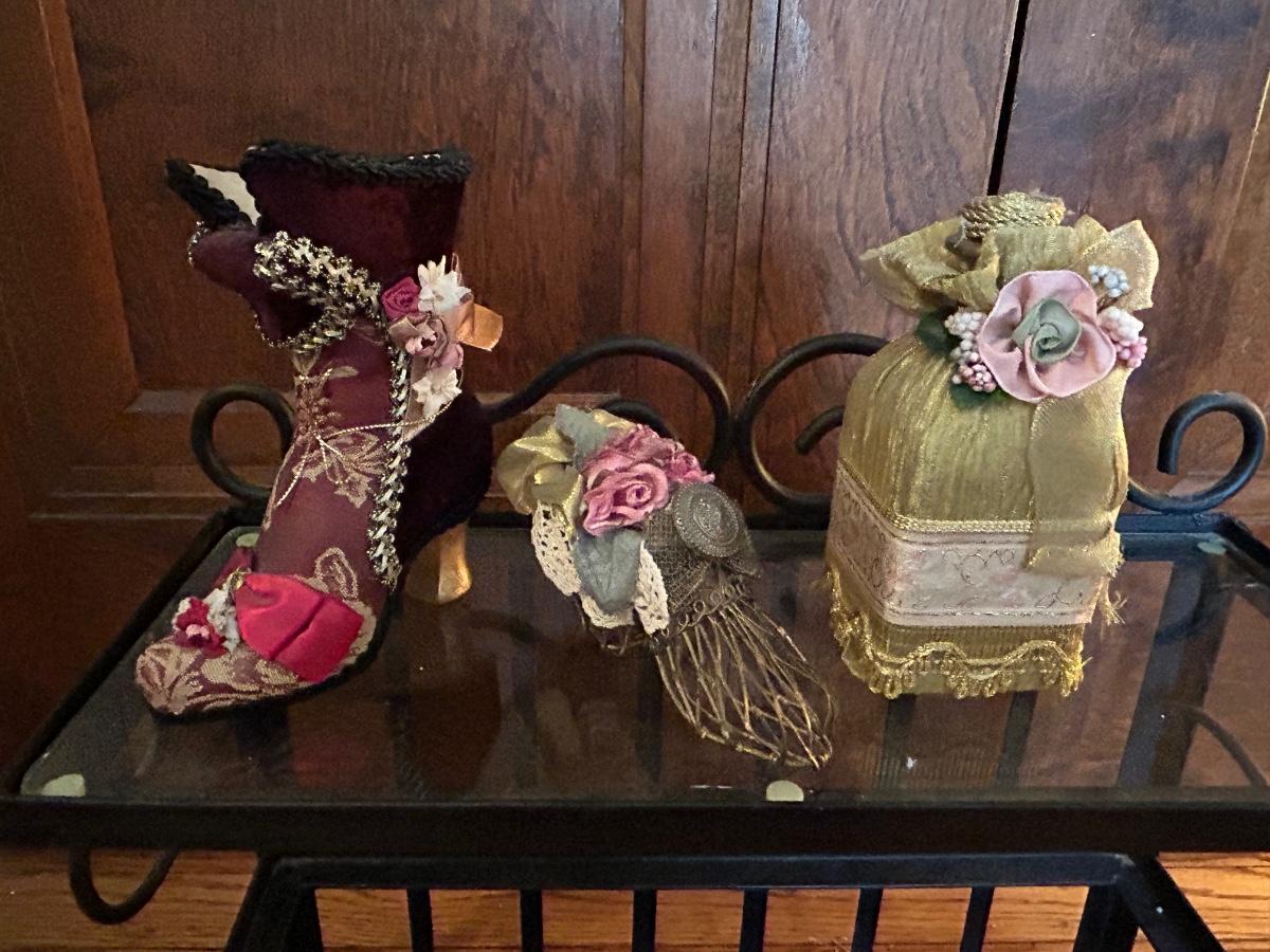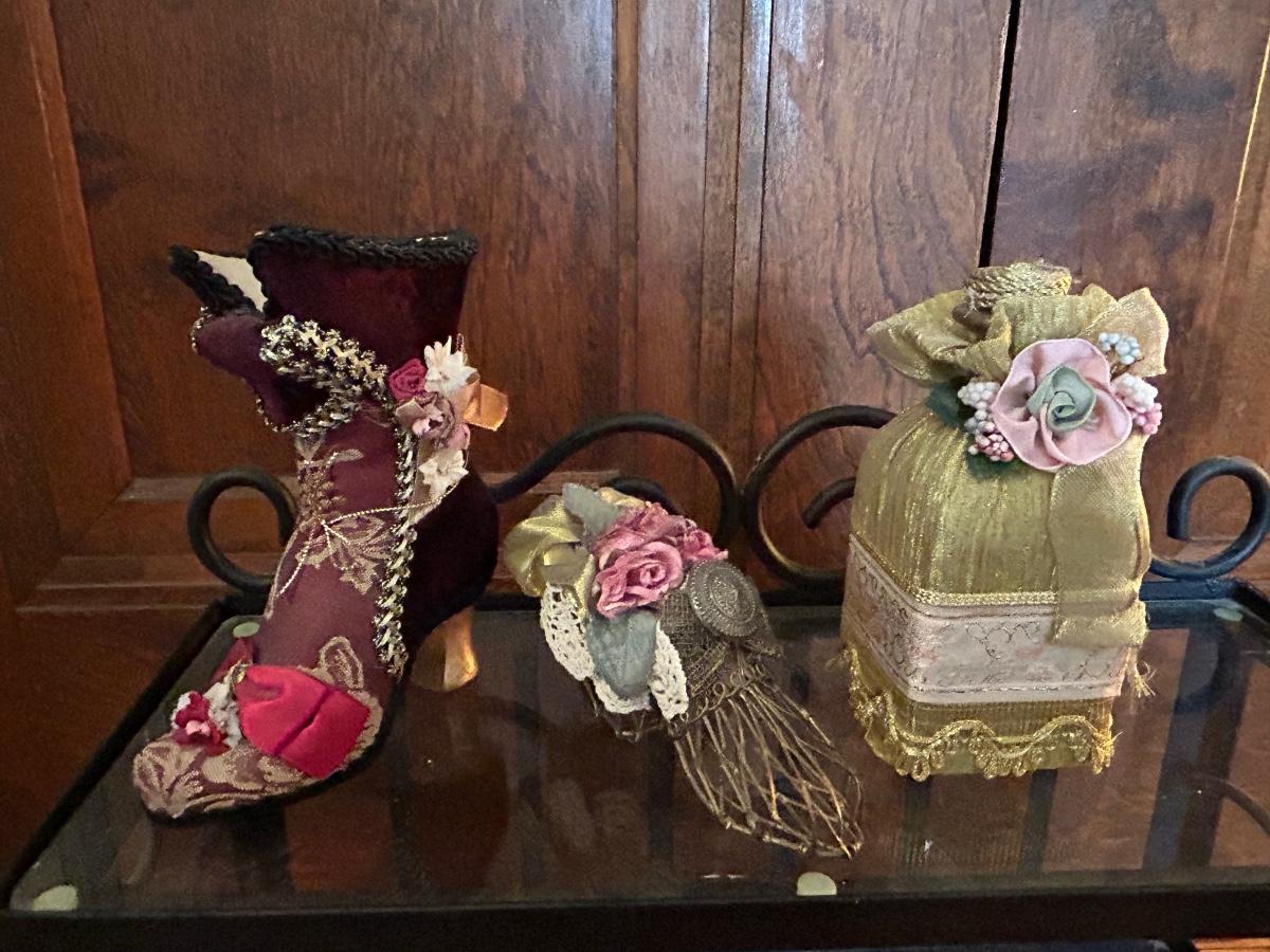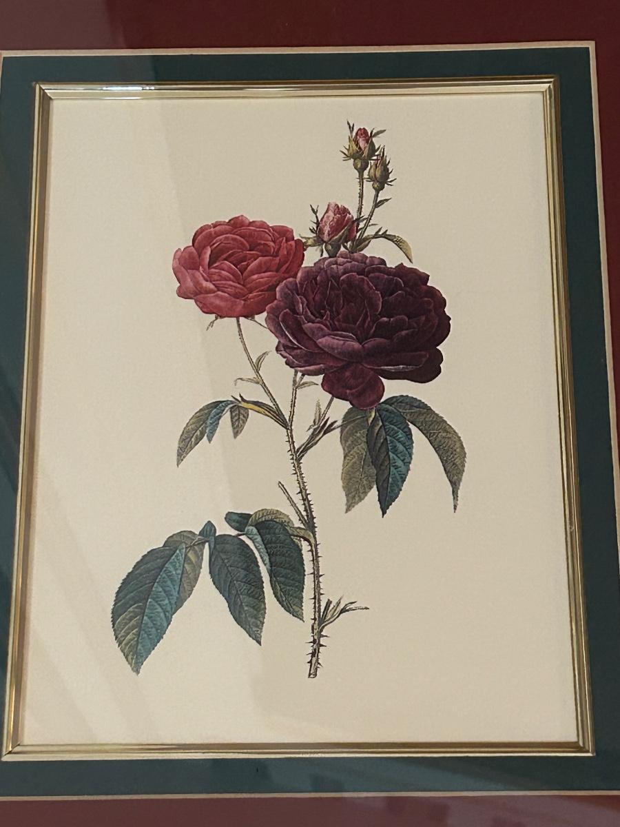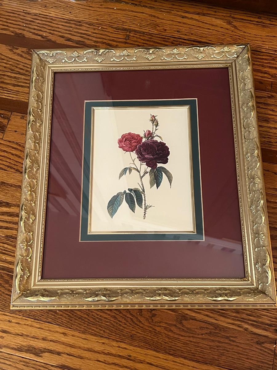 LOT 267BR: Home Accent Collection- Metal And Glass Shelf, Framed Rose Print And Victorian accents